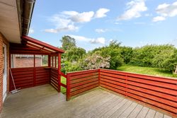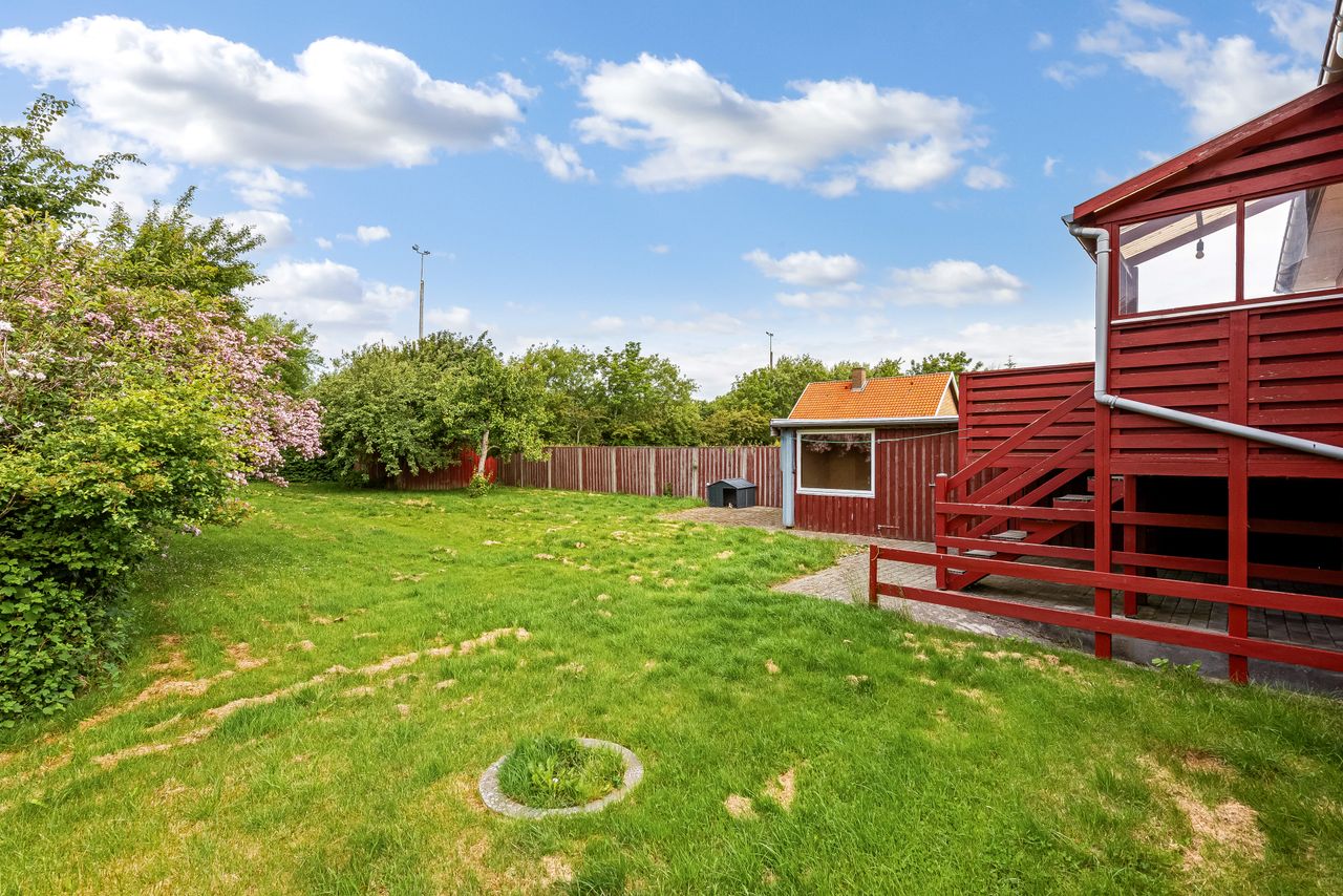 En af de store fordele ved villaen er den hævede terrasse, der giver en flot udsigt over den ugenerede og rolige have. Her kan man nyde stille morgener eller afslappende eftermiddage omgivet af natur og fred. Haven er velplejet og indbyder til udendørs aktiviteter, mens dens lukkede omkreds sikrer en følelse af privatliv.