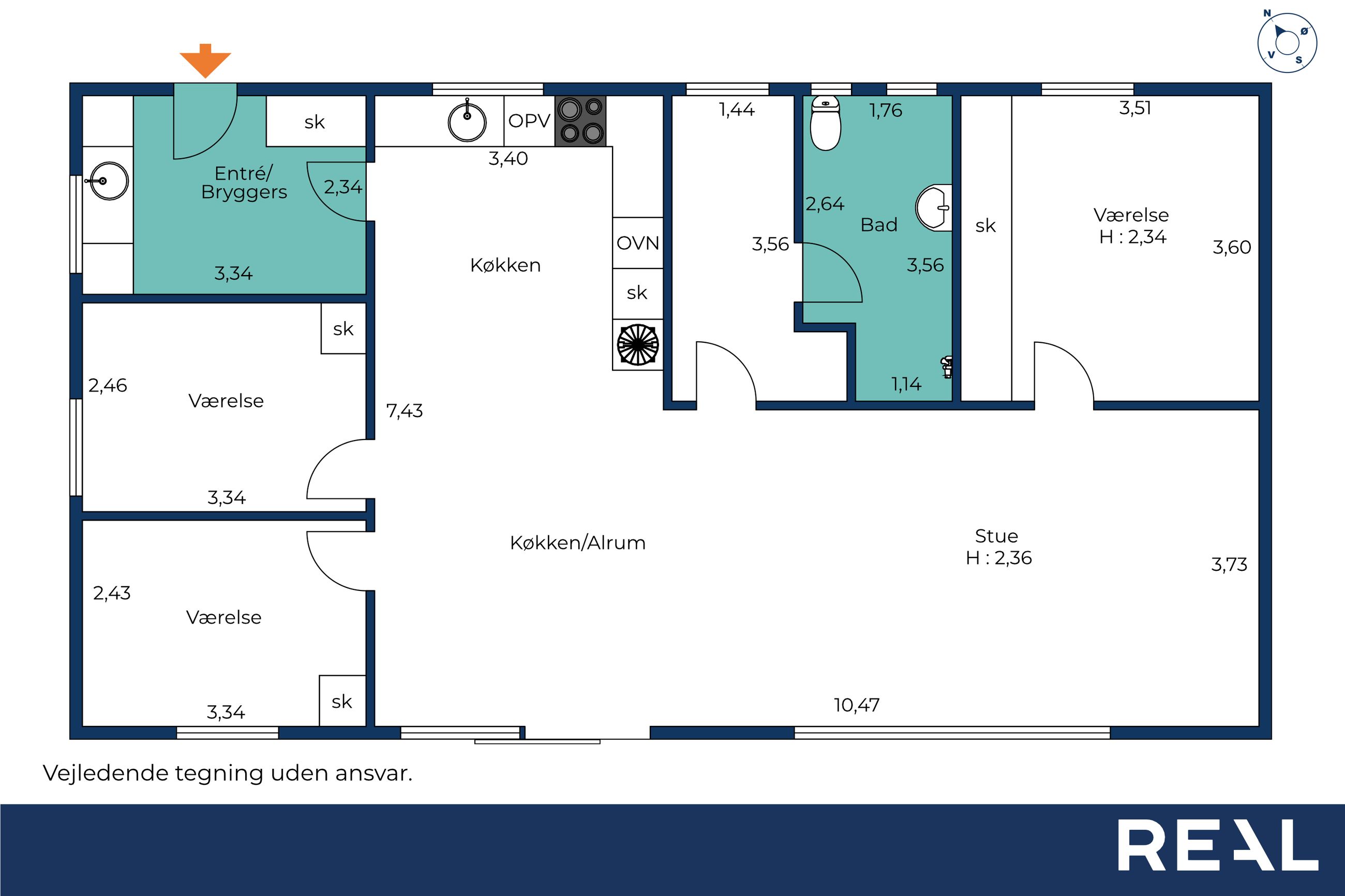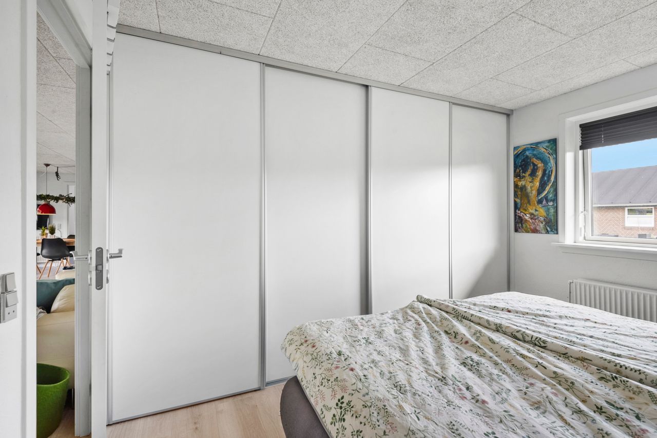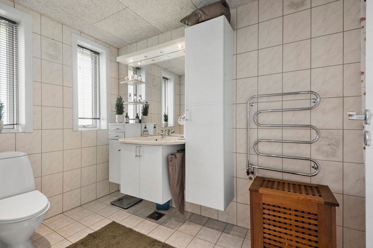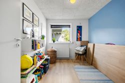 Ejendommen byder på 116 veldisponerede kvadratmeter, der passer perfekt til den moderne børnefamilie. Planløsningen rummer to store børneværelser og et rummeligt soveværelse – alle med gode indretningsmuligheder og et behageligt lysindfald. Badeværelset er praktisk indrettet og suppleres af et stort og funktionelt bryggers med god plads til hverdagens gøremål.