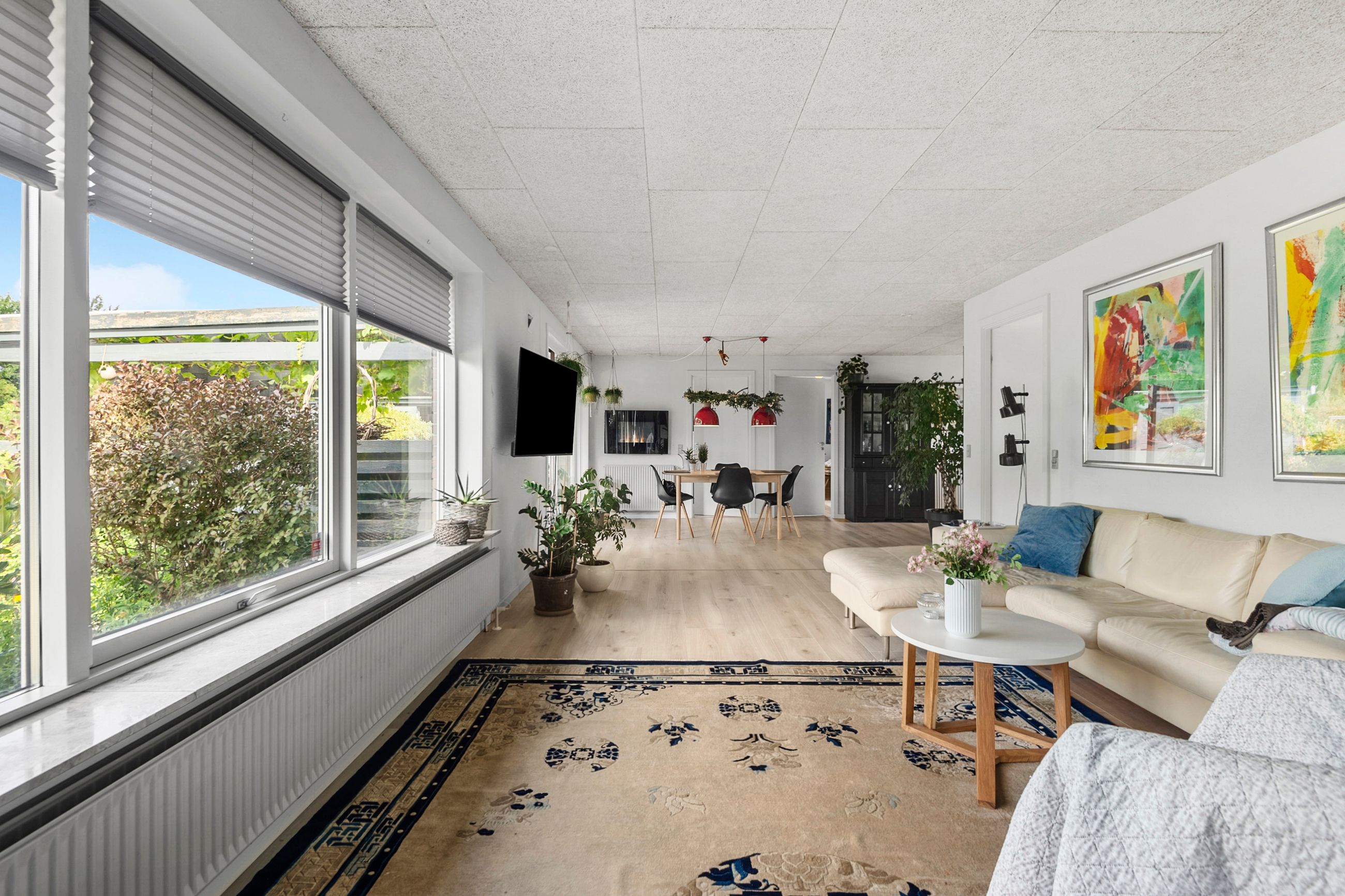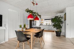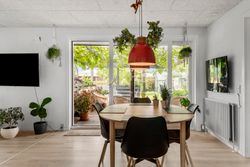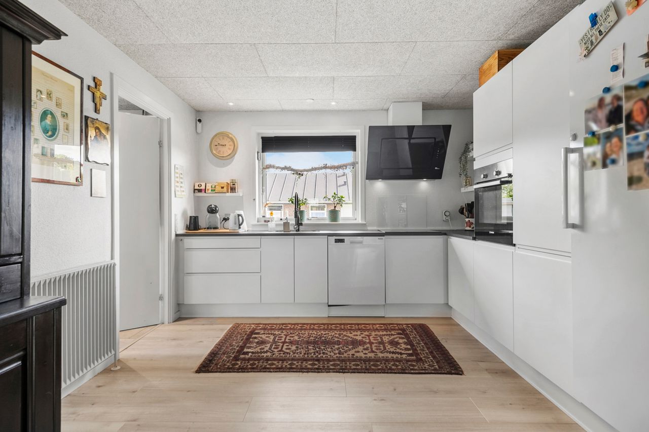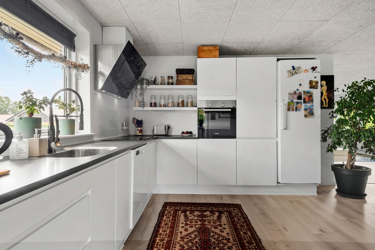 Boligens hjerte er uden tvivl det åbne køkken/alrum og stue-miljø, som samler familien i én stor og indbydende helhed. Her er plads til både madlavning, samvær og hygge, og fra spiseområdet er der direkte adgang til den sydvestvendte have, som indbyder til solrige eftermiddage og hyggelige aftener på terrassen.