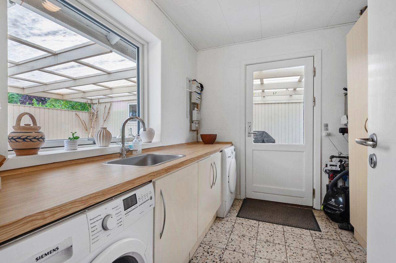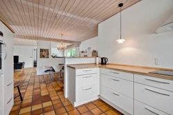 Boligens naturlige samlingspunkt er det lyse og åbne køkken/alrum, hvor store vinduespartier sikrer et flot lysindfald, og hvor der er masser af plads til både hverdagens måltider og hyggelige stunder med familie og venner. Opholdsstuen ligger i direkte forbindelse hertil og giver adgang til den solvendte have – perfekt til både afslapning og udeliv.