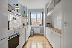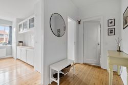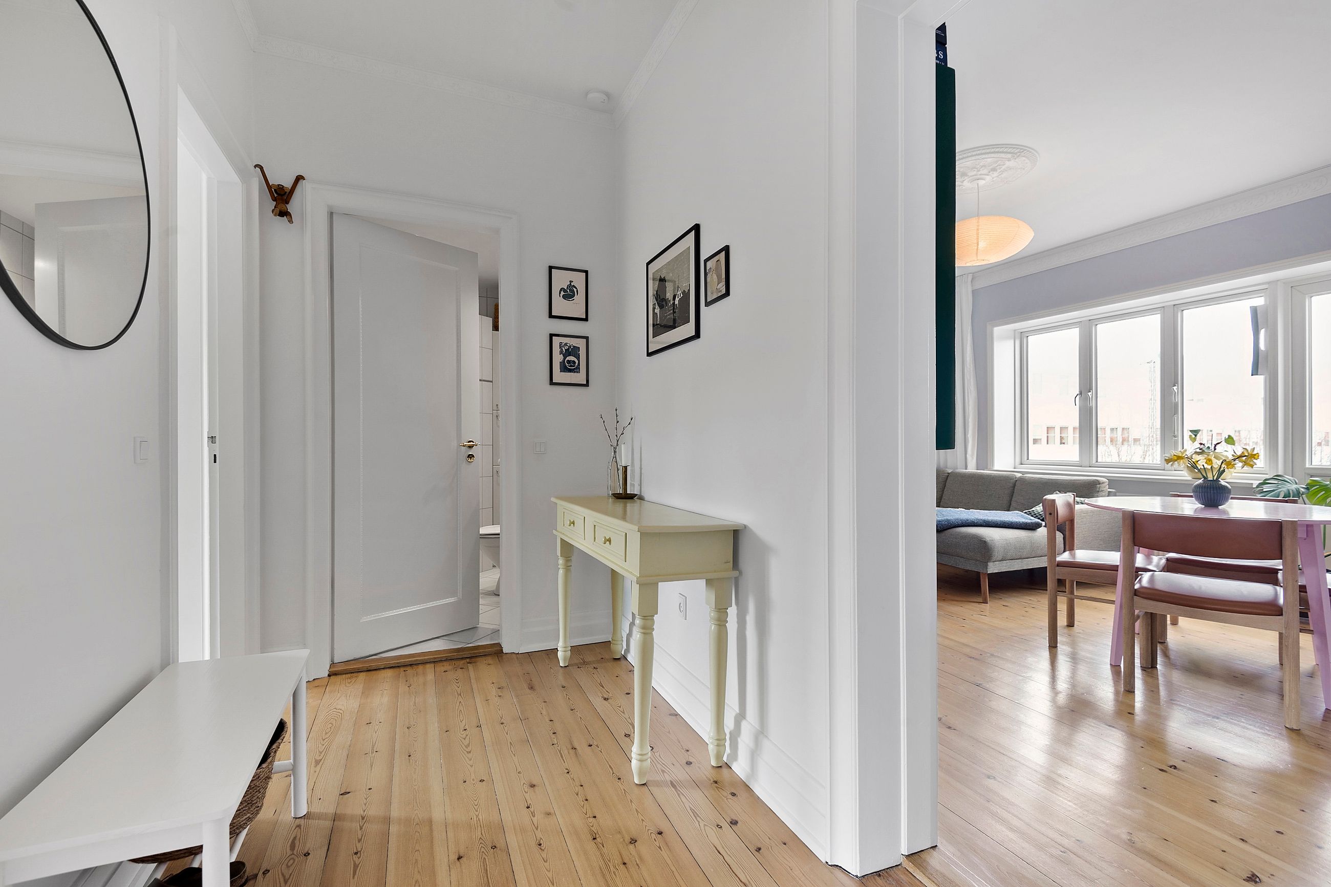 Lejligheden har flotte, gennemgående trægulve, der understreger den stilfulde og indbydende atmosfære. Som beboer får du desuden adgang til en cykelkælder og en hyggelig gårdhave, der skaber et dejligt fællesskab.