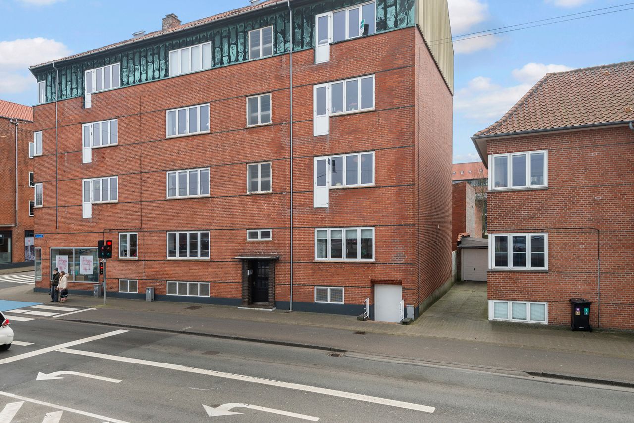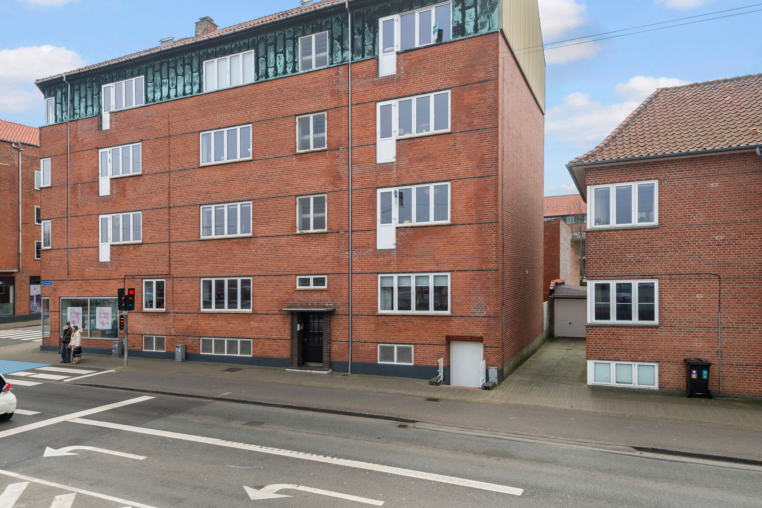 Beliggende tæt på byens handelsgade og indkøbsmuligheder får du her en bolig, hvor alt er inden for rækkevidde. Lejligheden byder på en rummelig entré med god plads til overtøjet, et elegant køkken med masser af skabsplads, opvaskemaskine og rigeligt med bordplads – perfekt til dig, der elsker at lave mad.