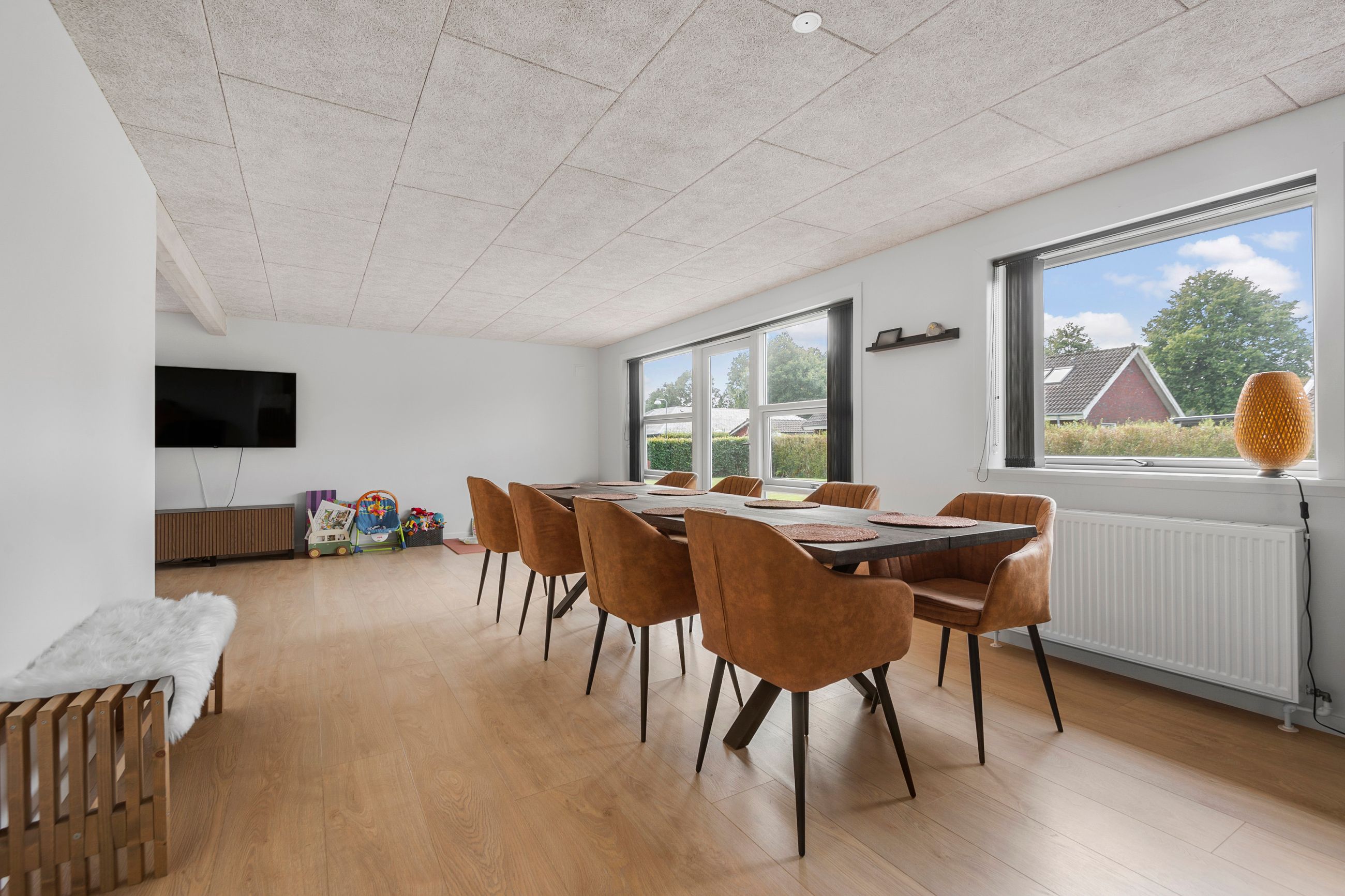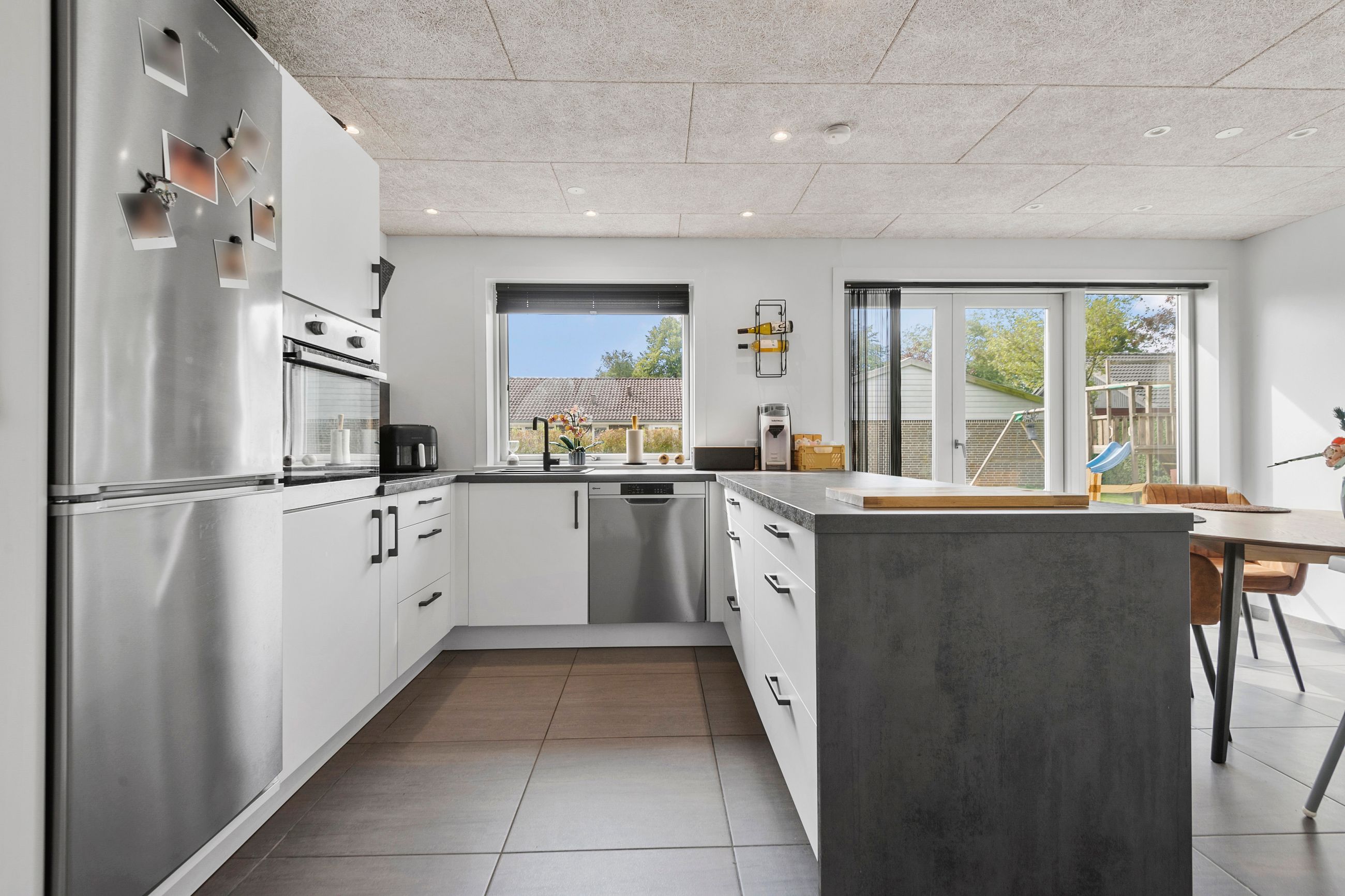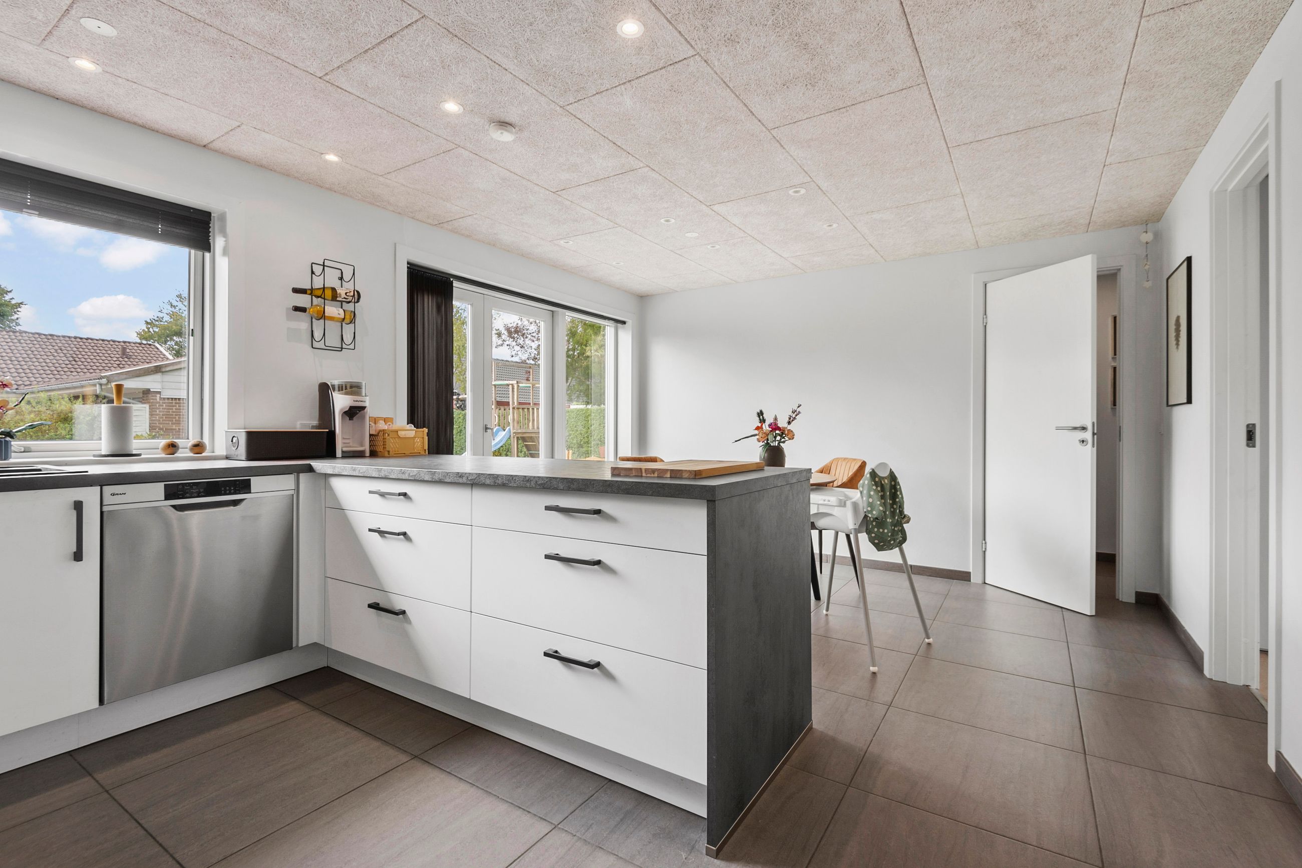 Det centrale hjerte i hjemmet er det lækre køkken/alrum, hvor lyset strømmer ind gennem store vinduer og skaber en indbydende atmosfære. Her er der rig mulighed for både madlavning og hyggelige stunder med familie og venner.