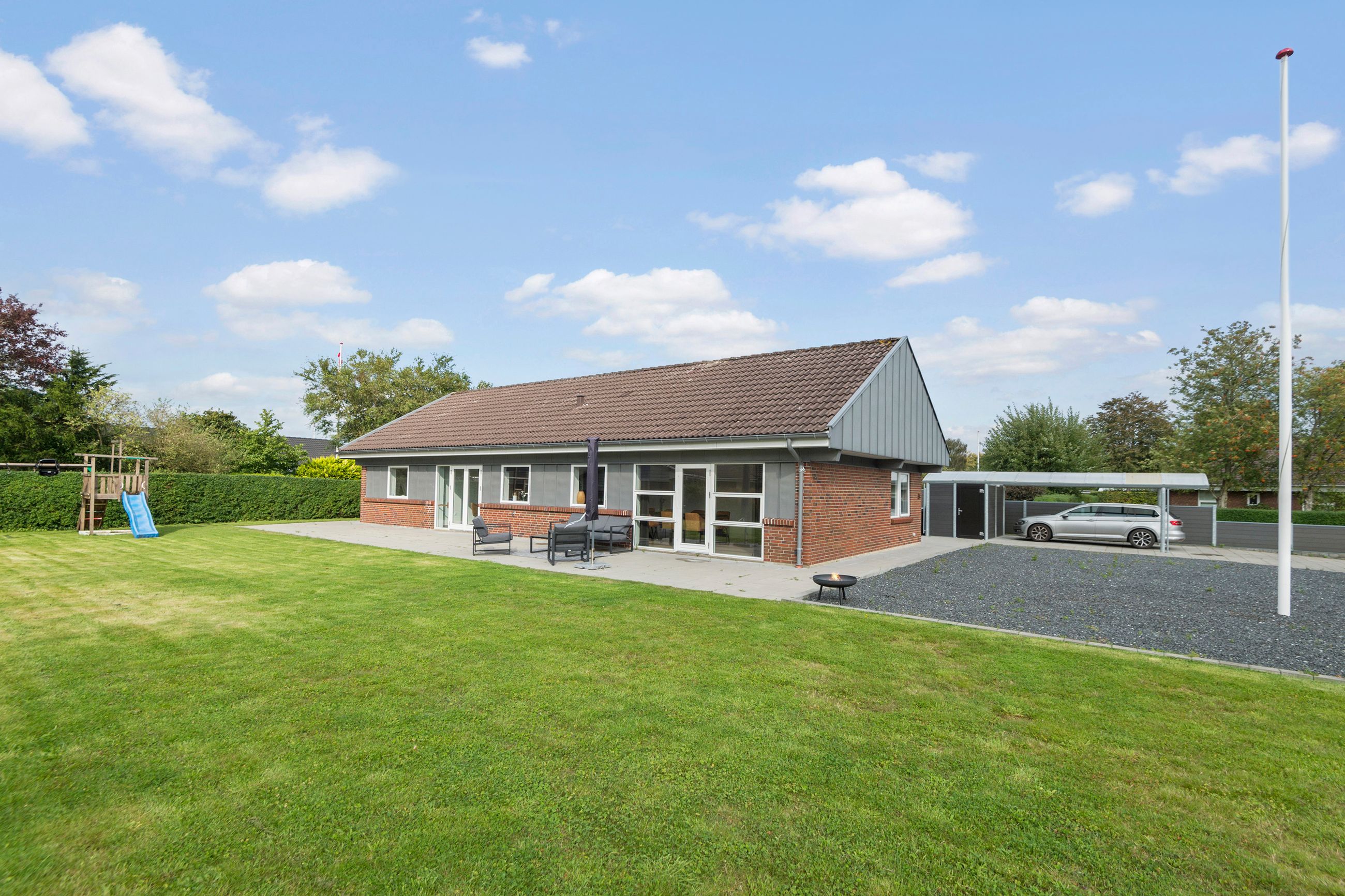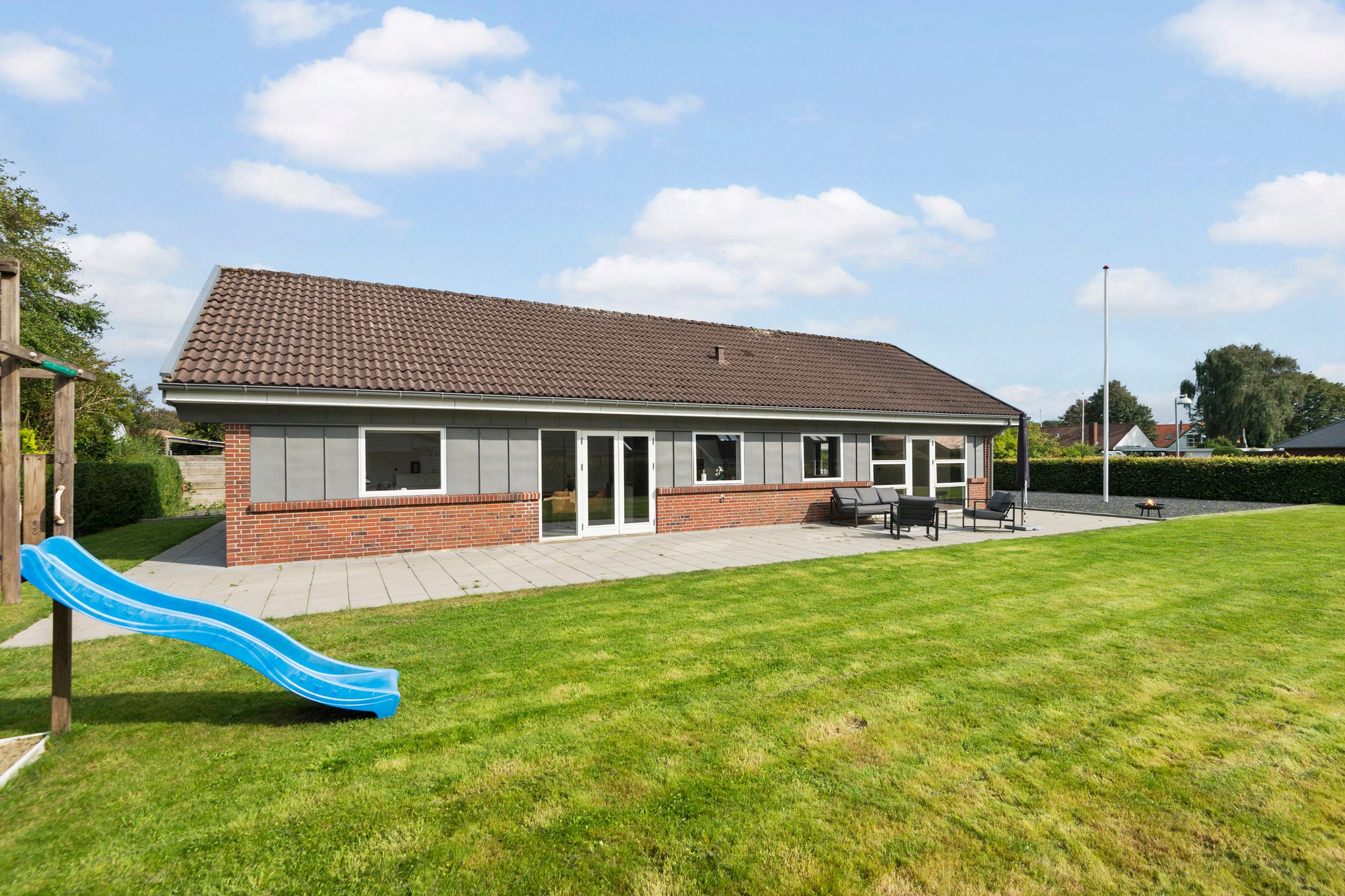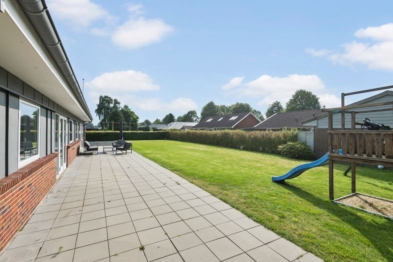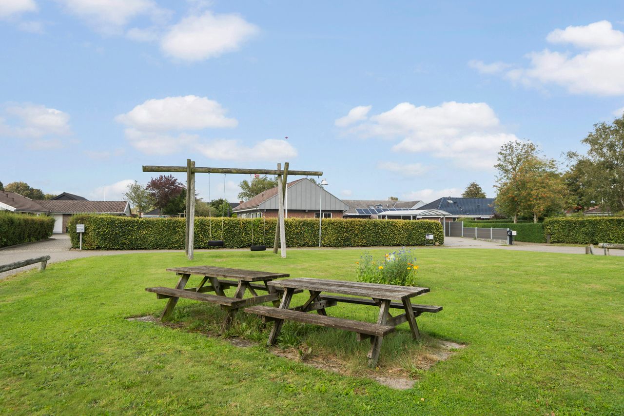 Udearealerne er lette at vedligeholde og kræver minimal indsats, så I kan bruge tiden på det, der virkelig betyder noget. Haven er perfekt til både leg og afslapning, mens stisystemerne omkring ejendommen gør det nemt at komme til skole, daginstitutioner, indkøb og fritidsaktiviteter.