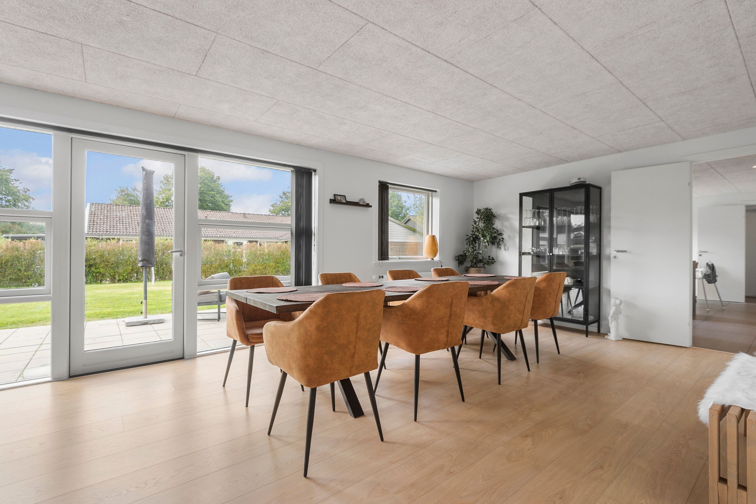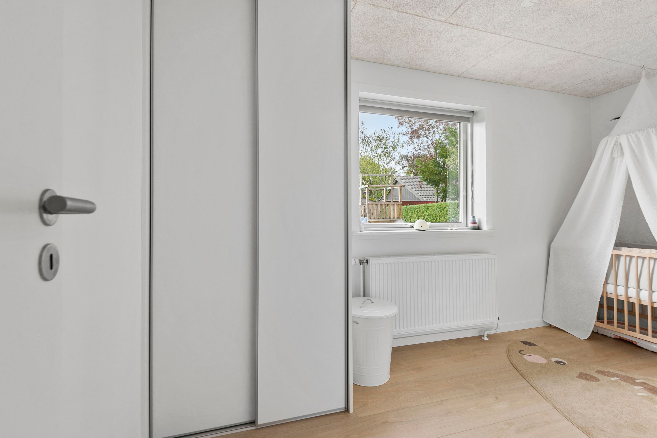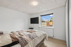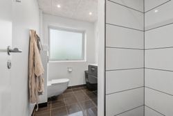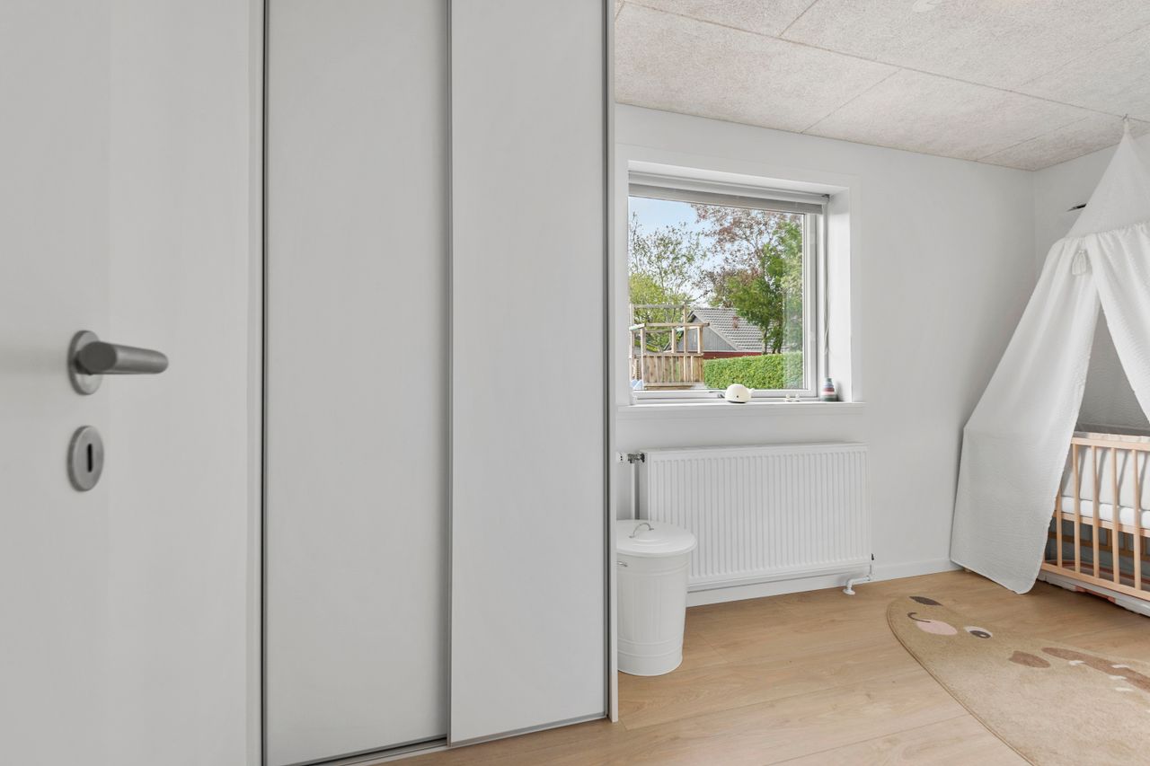 Villaen byder på i alt fire rummelige værelser, der giver plads til både forældre, børn og eventuelle gæster. De to stilrene badeværelser er praktisk indrettet og sikrer, at der altid er god plads til familiens daglige rutiner.