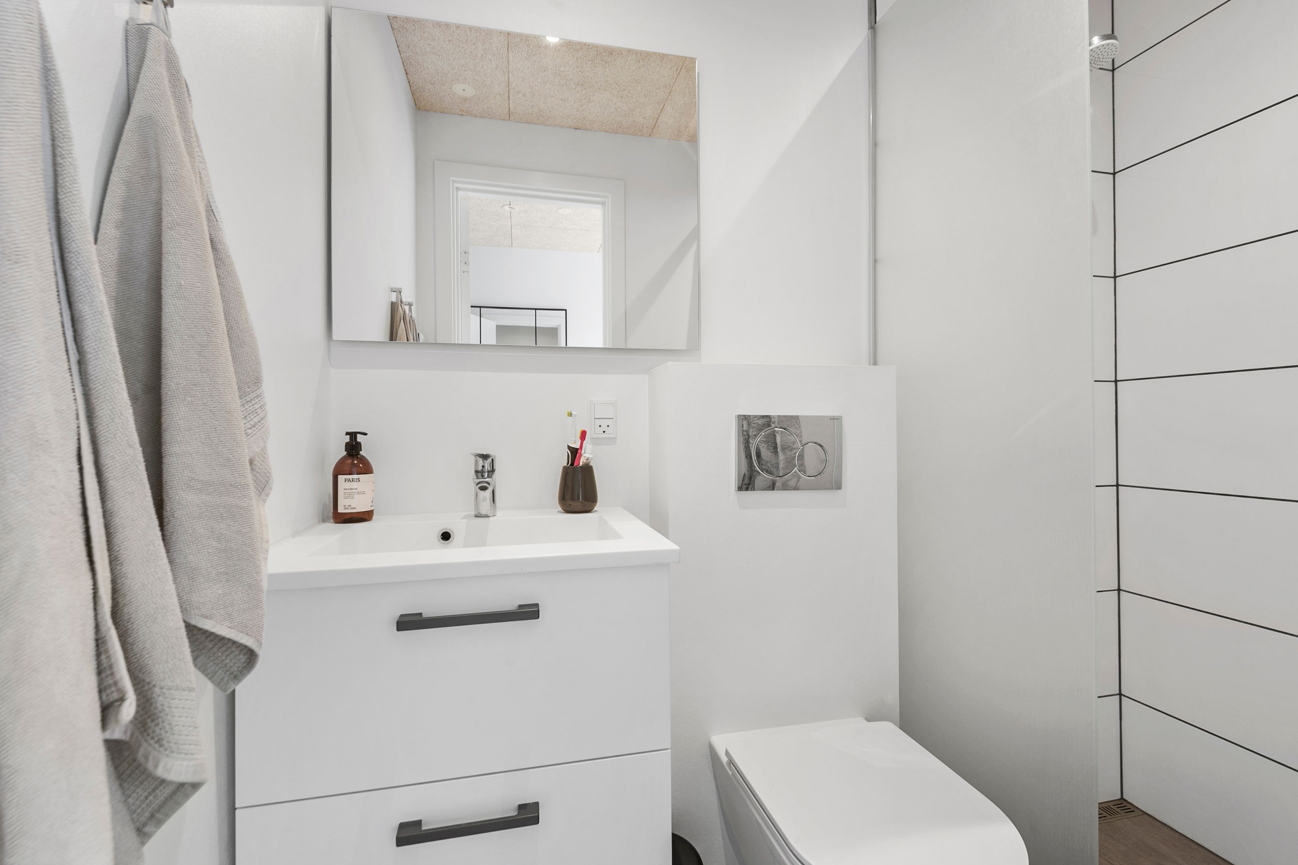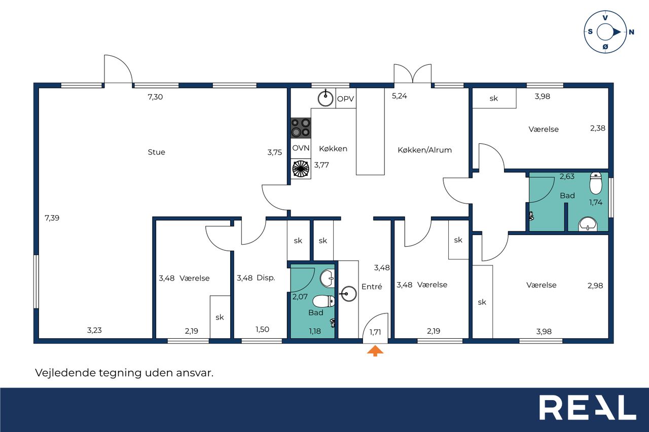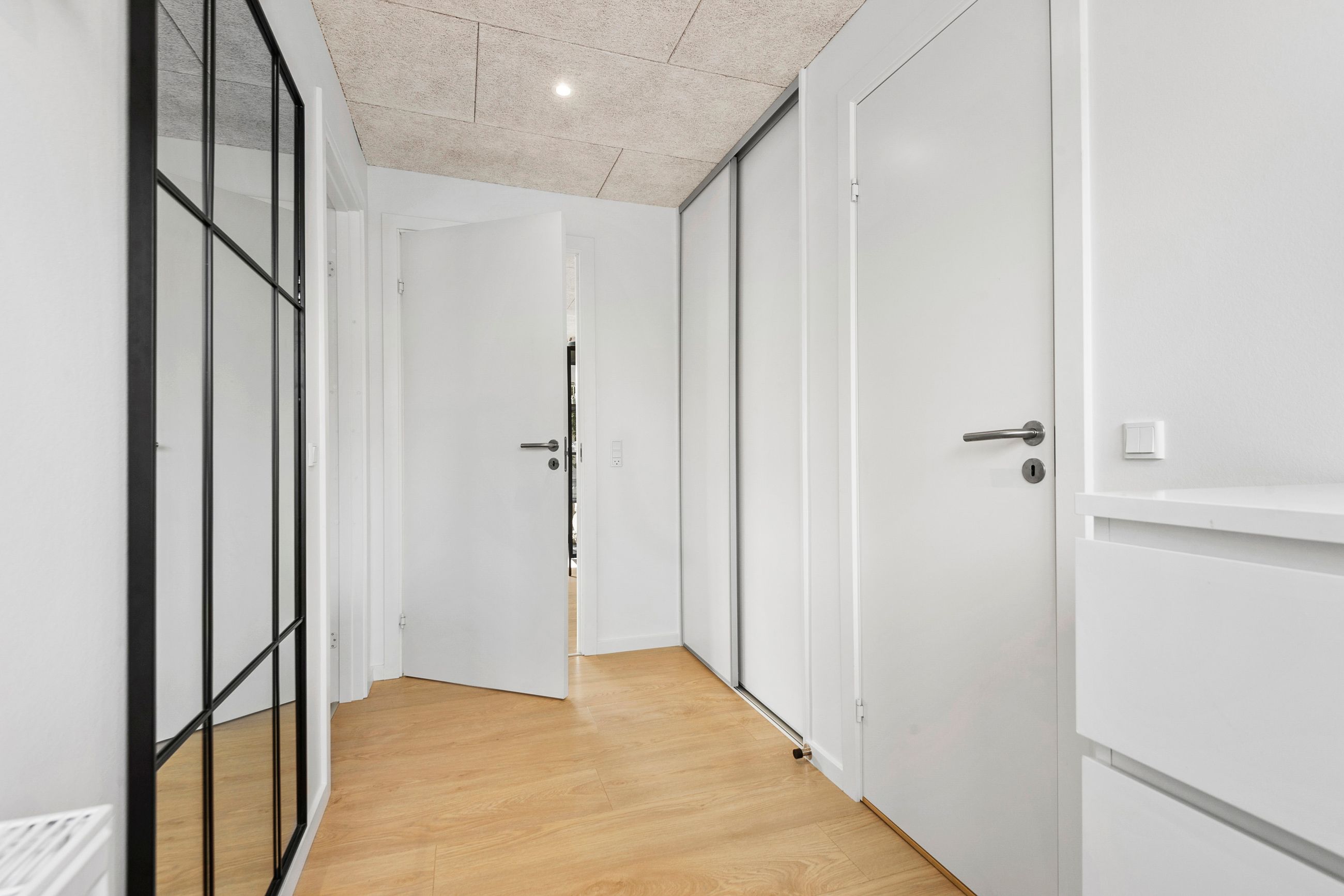 Villaen byder på i alt fire rummelige værelser, der giver plads til både forældre, børn og eventuelle gæster. De to stilrene badeværelser er praktisk indrettet og sikrer, at der altid er god plads til familiens daglige rutiner.