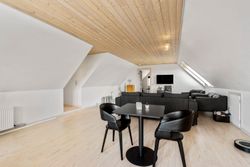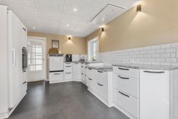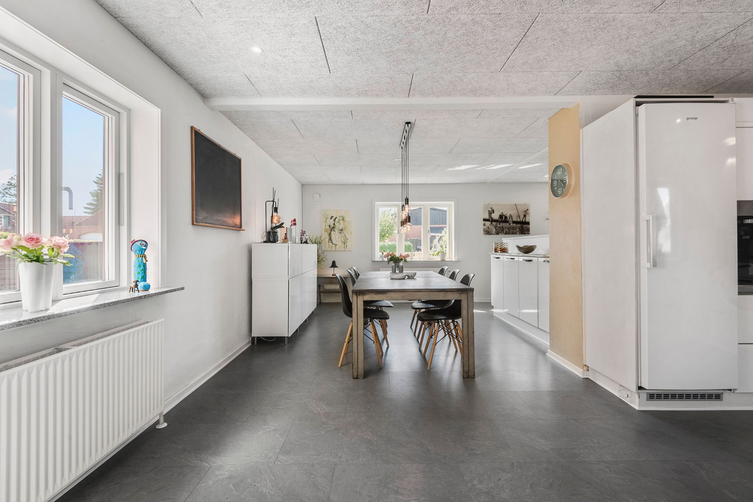 Det lyse og moderne køkken/alrum ligger i åben forbindelse med en hyggelig stue, hvor der er god plads til hverdagens samvær og gæstebesøg.