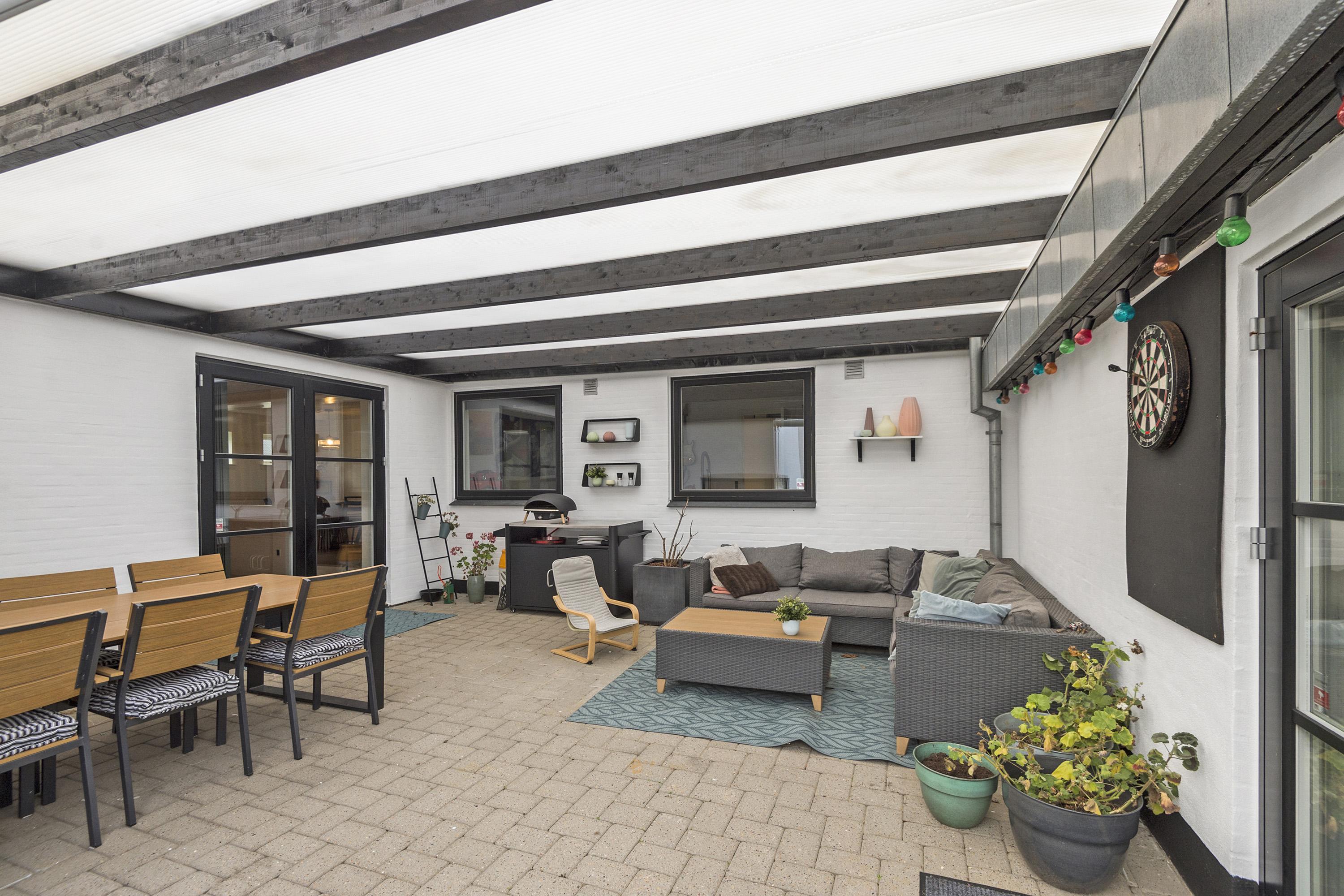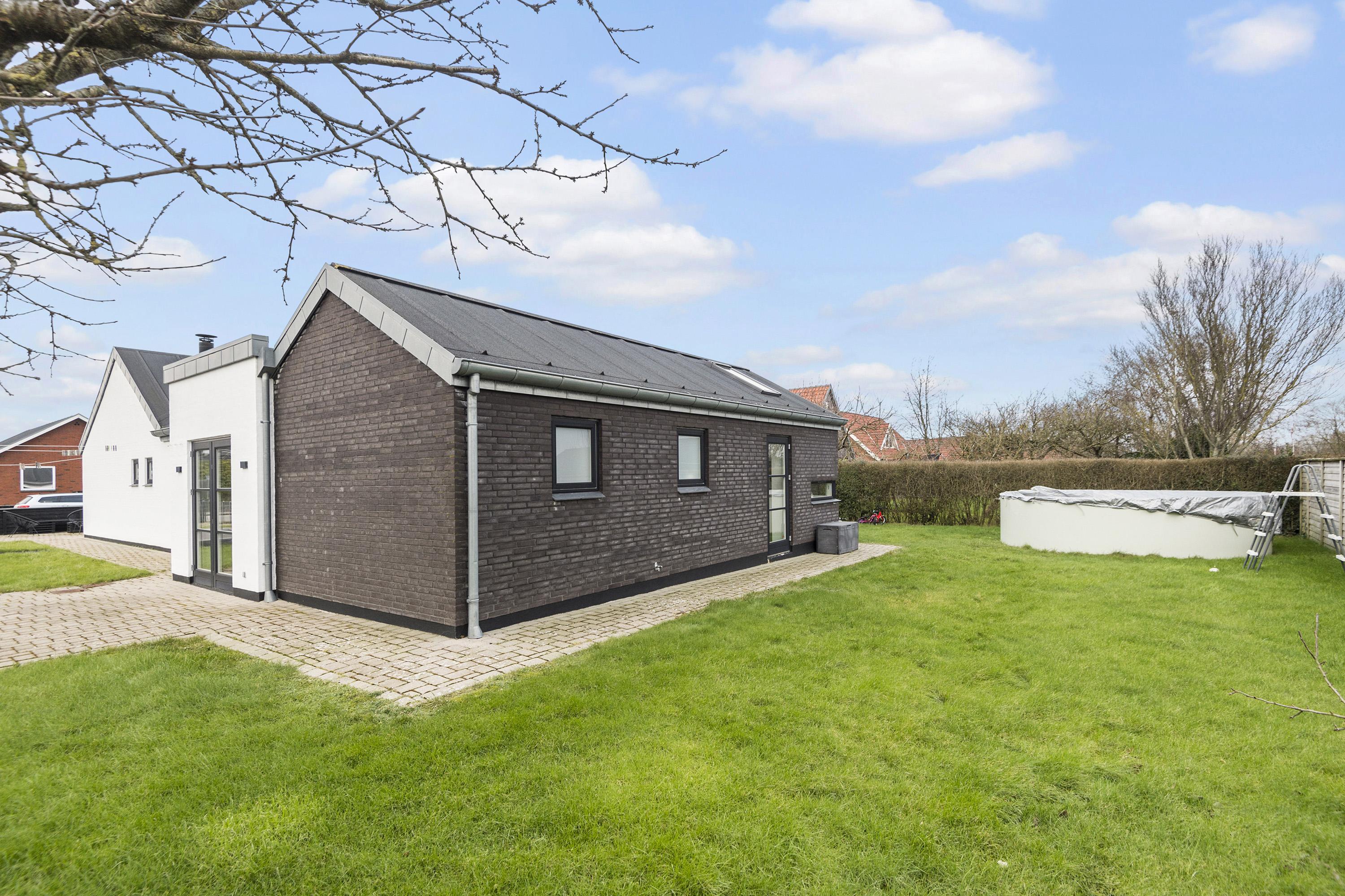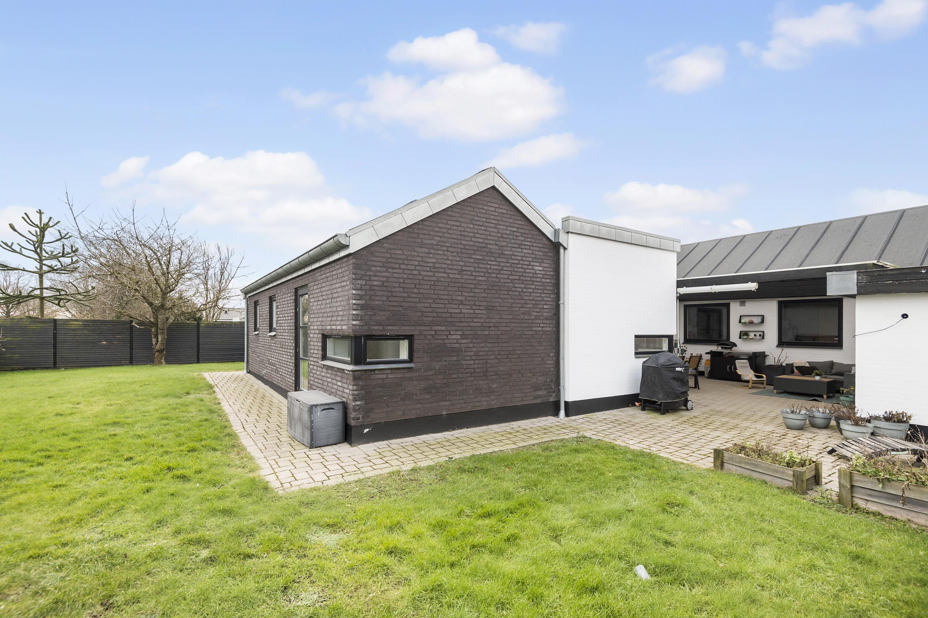 Villaen præsenterer sig flot med listetag, vandskuret
