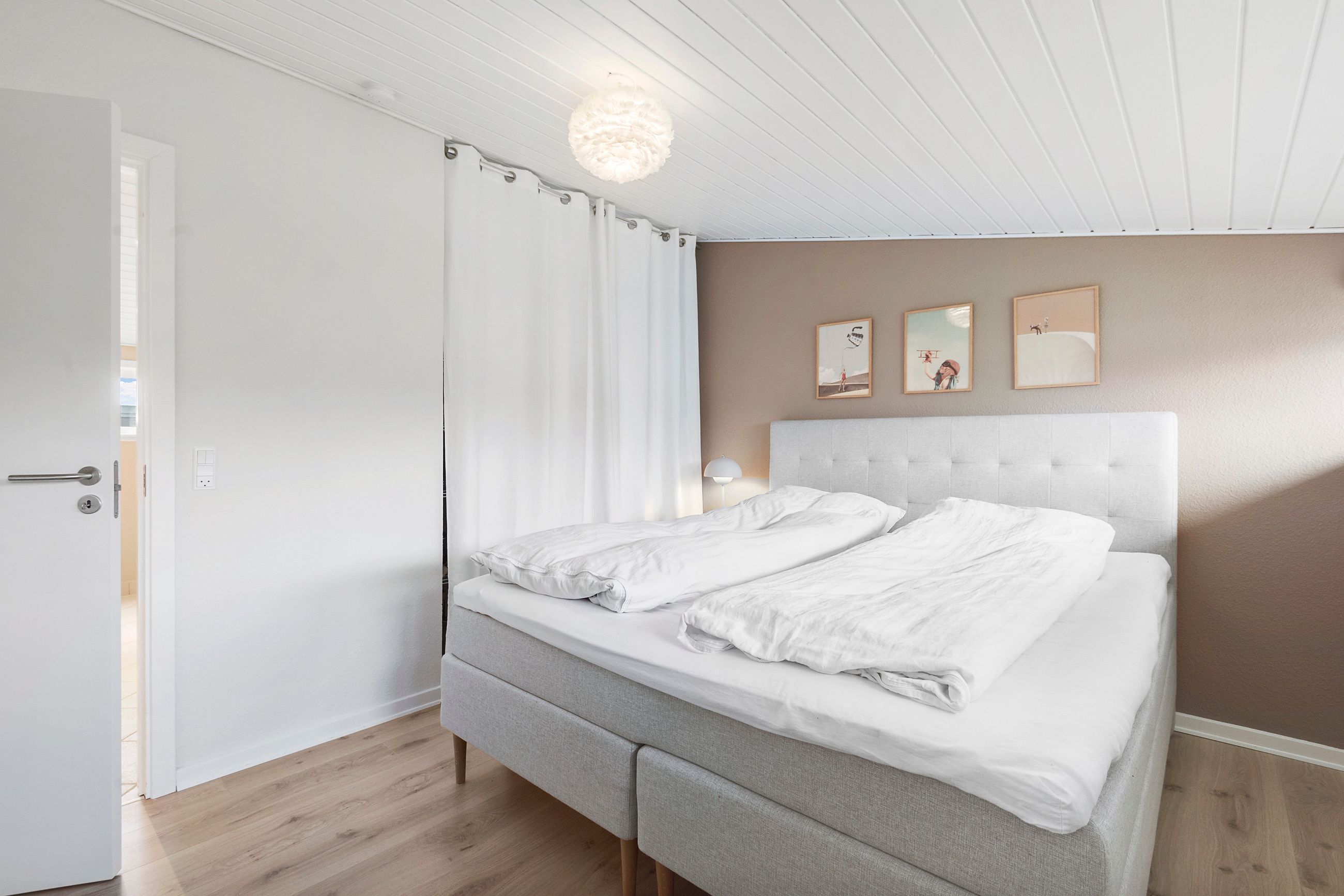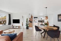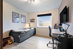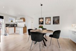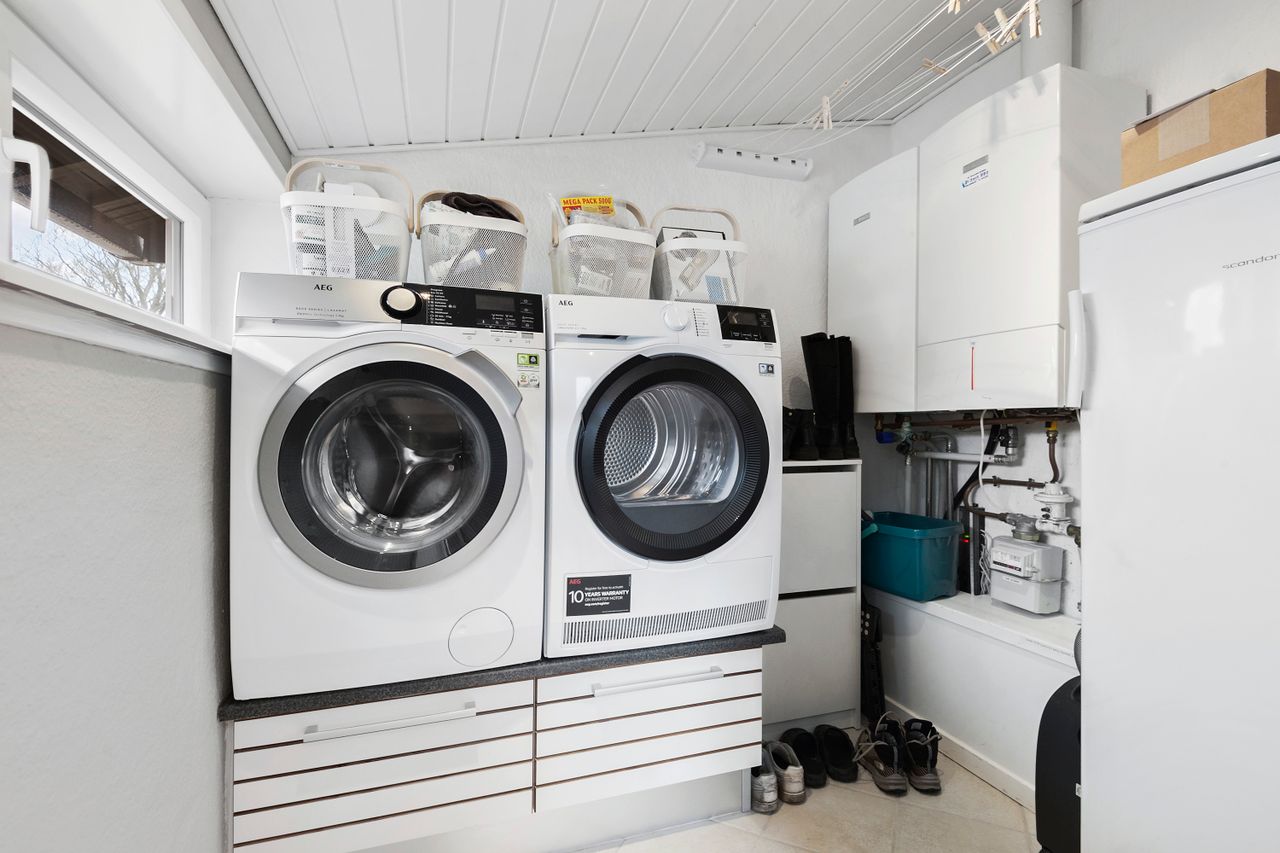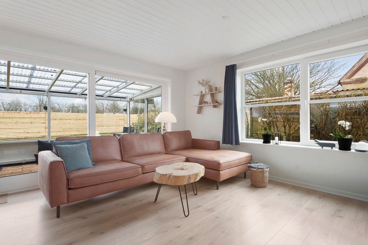 Indvendigt rummer boligen 3 rummelige værelser, som giver mulighed for både børneværelser, hjemmekontor eller gæsteværelser. Det åbne køkken/alrum og stuen i ét skaber en dejlig og lys opholdszone, hvor hele familien kan samles. Det tidløse badeværelse er lyst og funktionelt med moderne indretning, og der er et praktisk bryggers til opbevaring og vask.