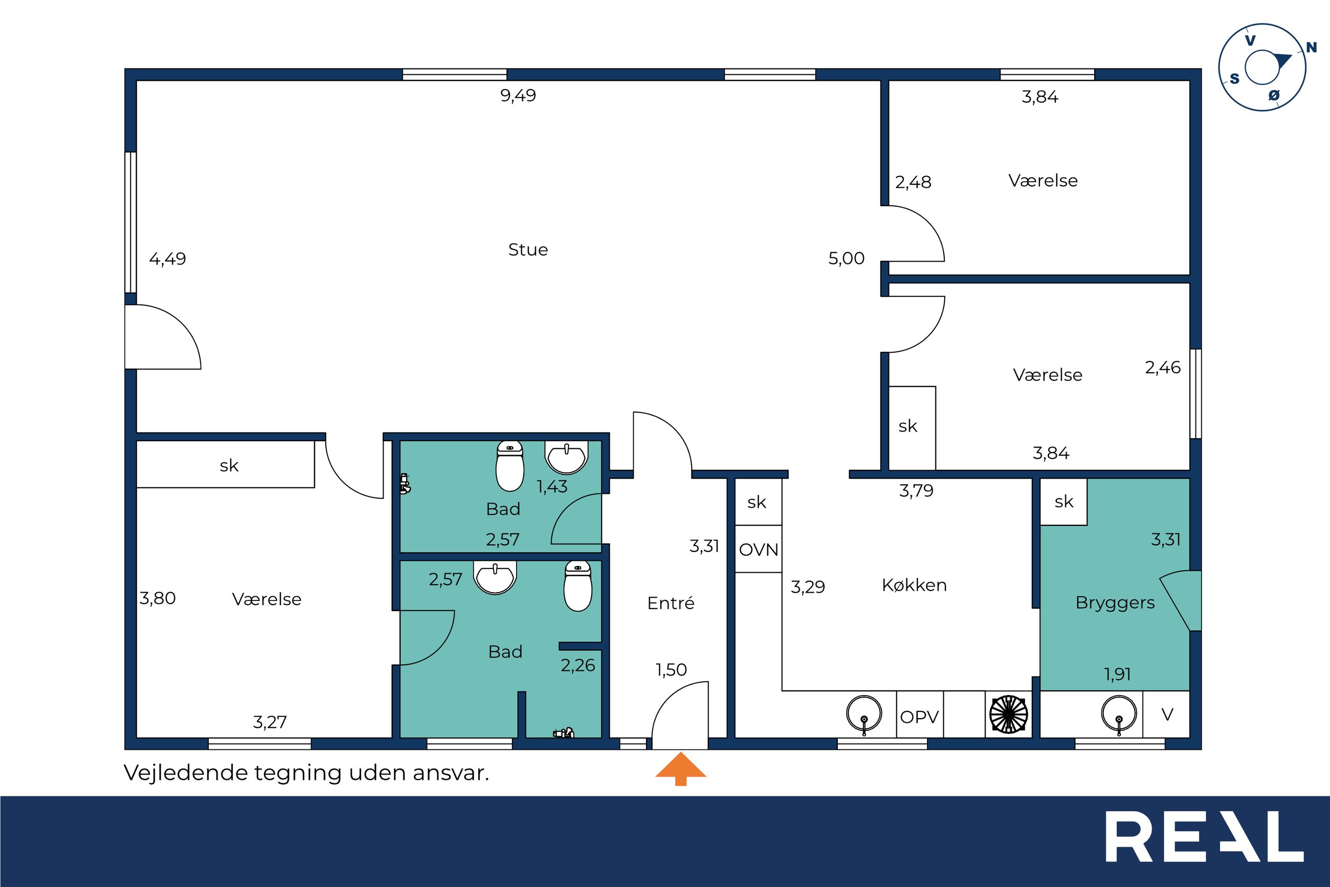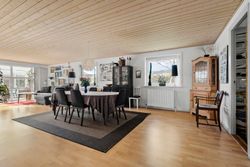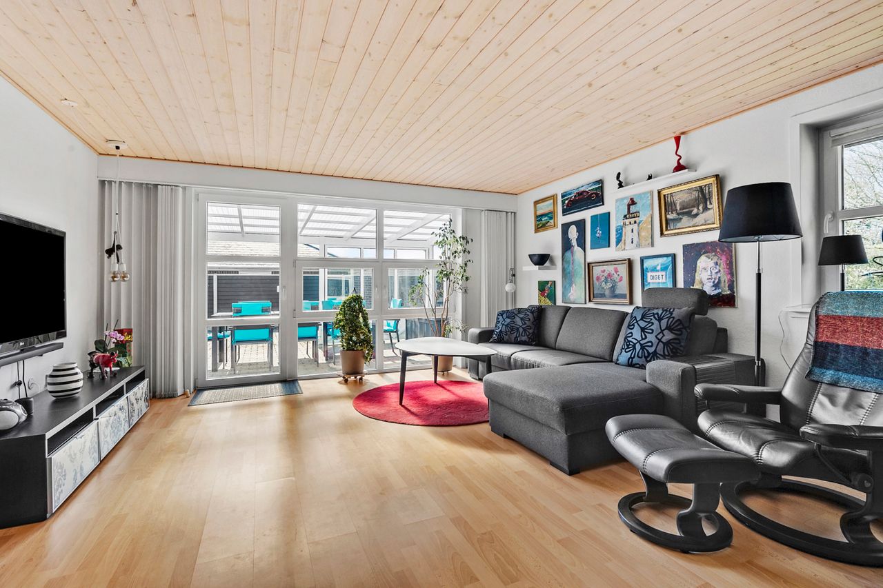 Boligen byder på 127 veludnyttede kvadratmeter og er ideelt indrettet til familien. Her finder du en børneafdeling med to gode værelser, mens voksenafdelingen rummer et rummeligt soveværelse med eget badeværelse.