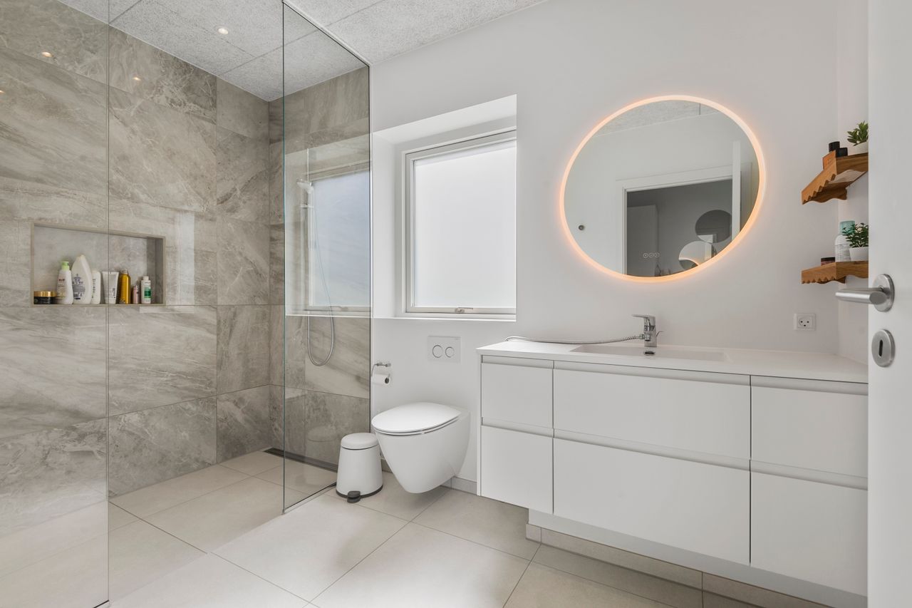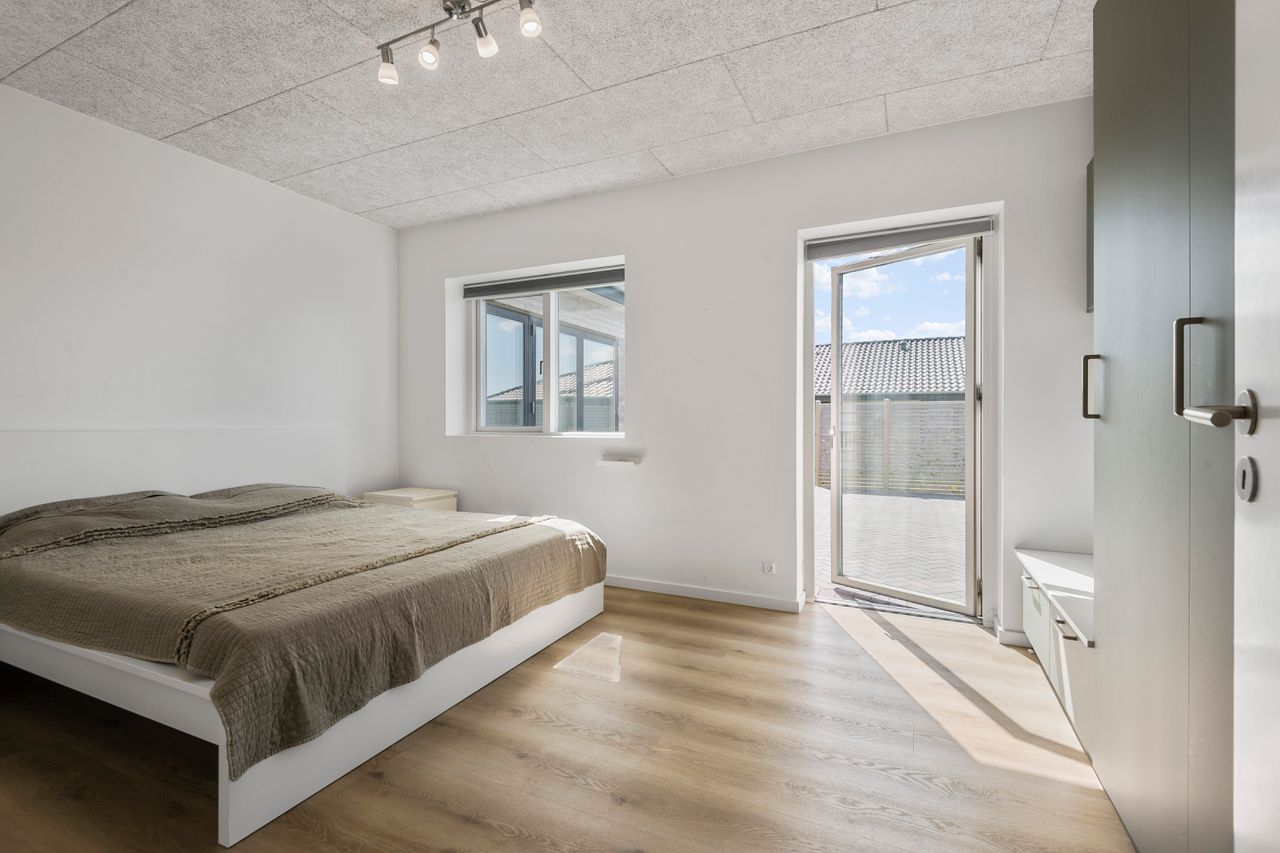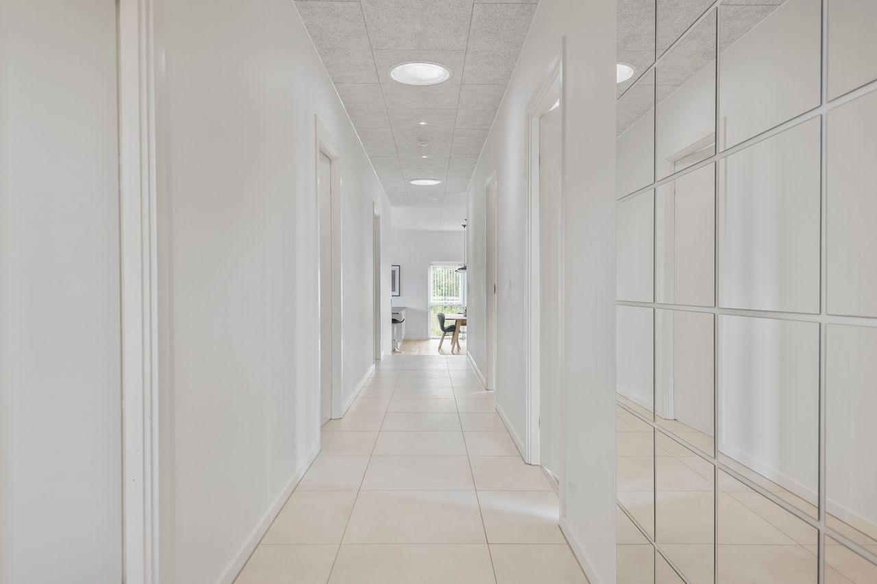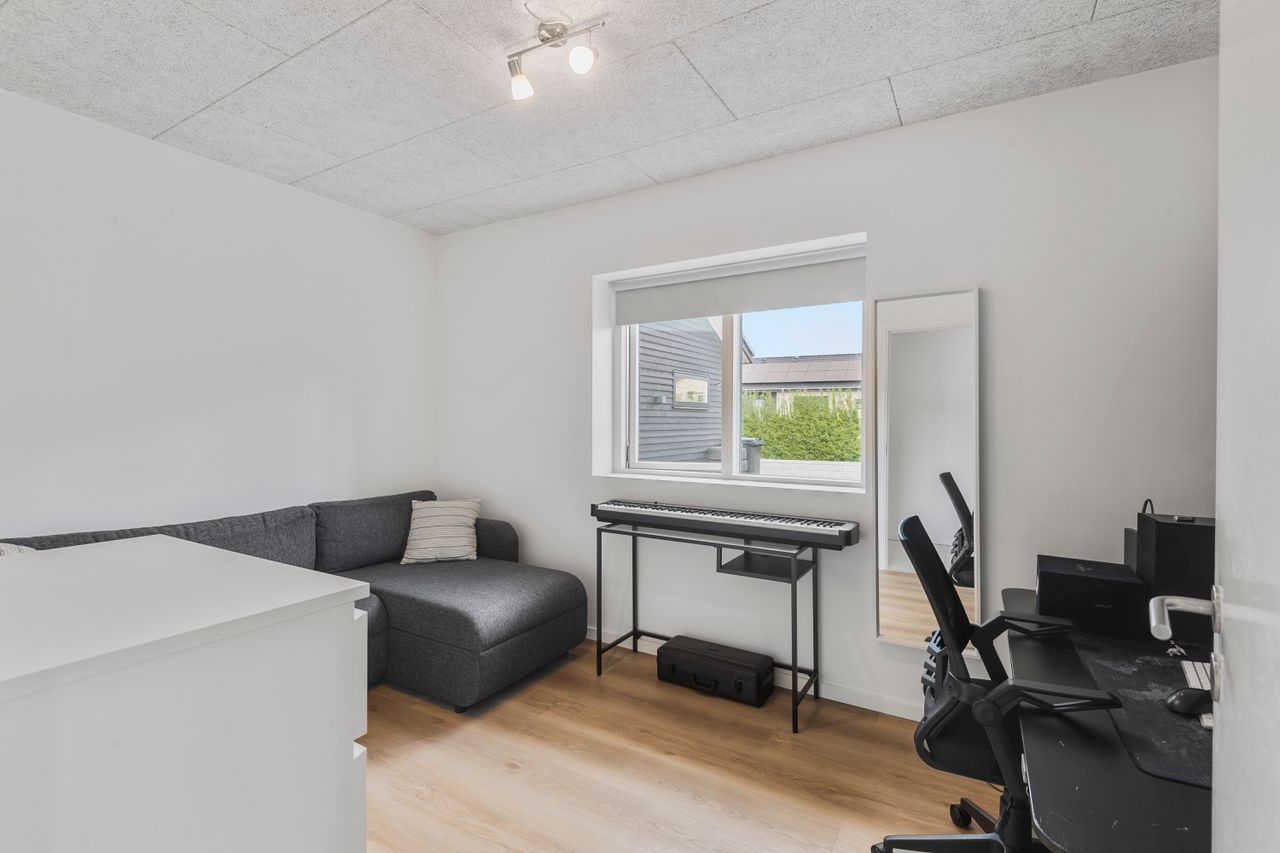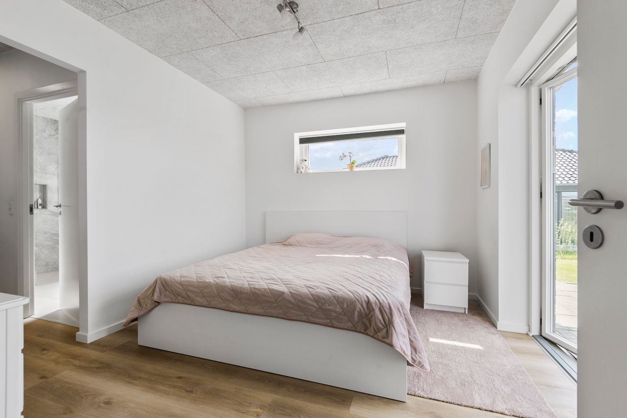 Hjemmet er ideelt indrettet med en tydelig opdeling mellem forældre- og børneafdeling. Forældreafdelingen byder på et rummeligt soveværelse med tilhørende walk-in-closet og eget badeværelse – en privat oase i dagligdagen. I børneafdelingen findes tre store børneværelser, som alle har adgang til eget badeværelse – en løsning, der gør hverdagen nem og overskuelig for børnefamilien.