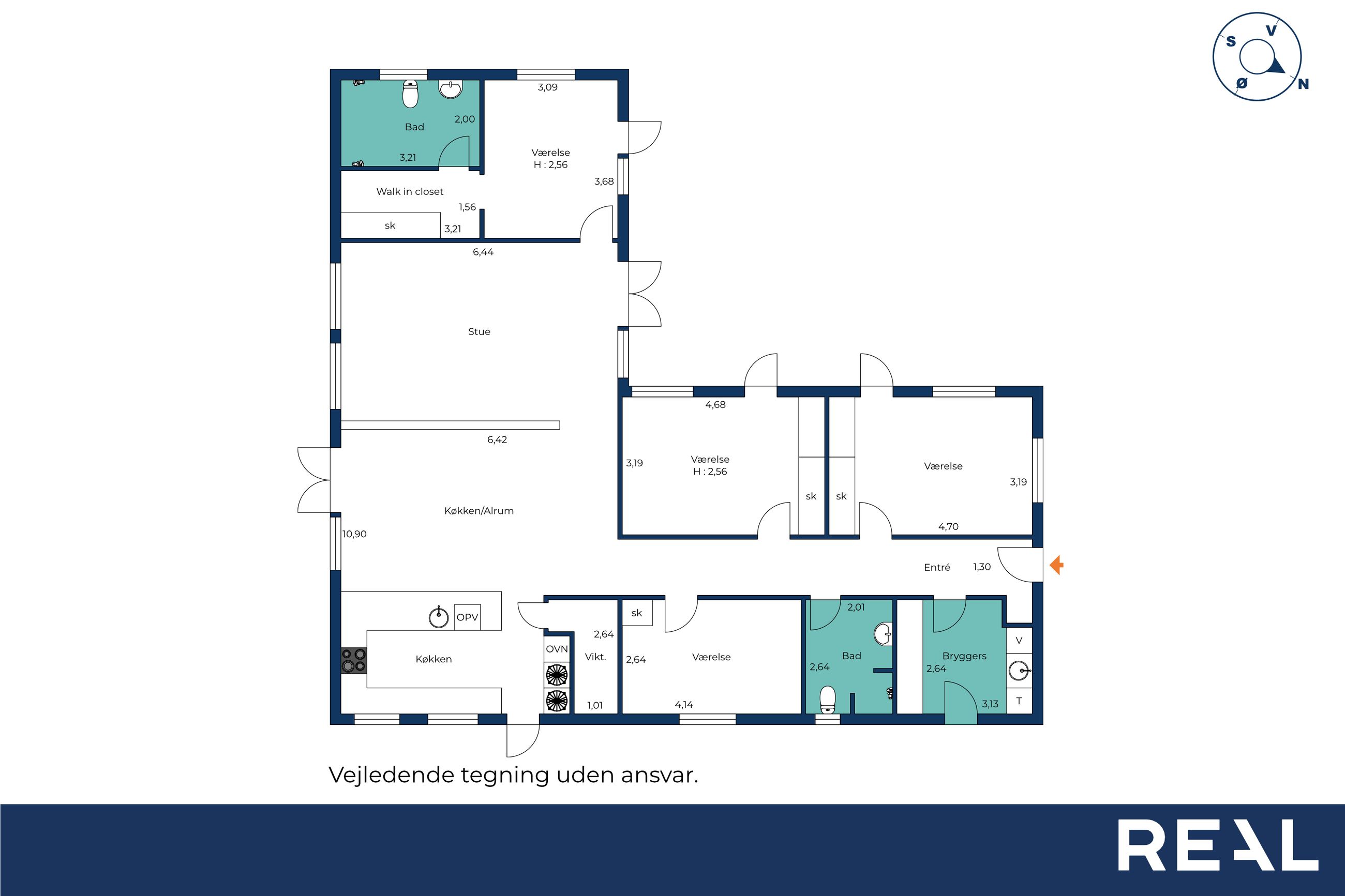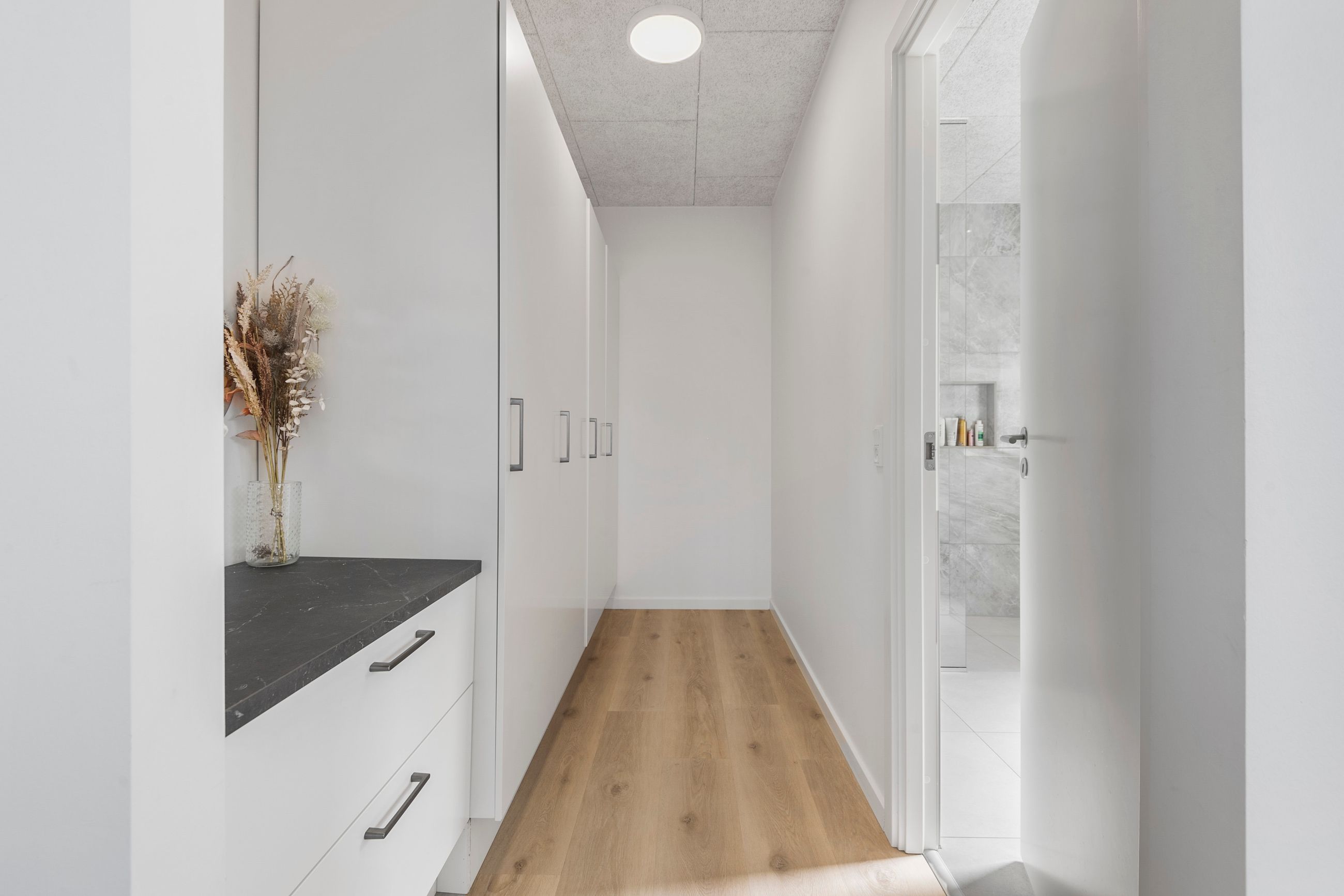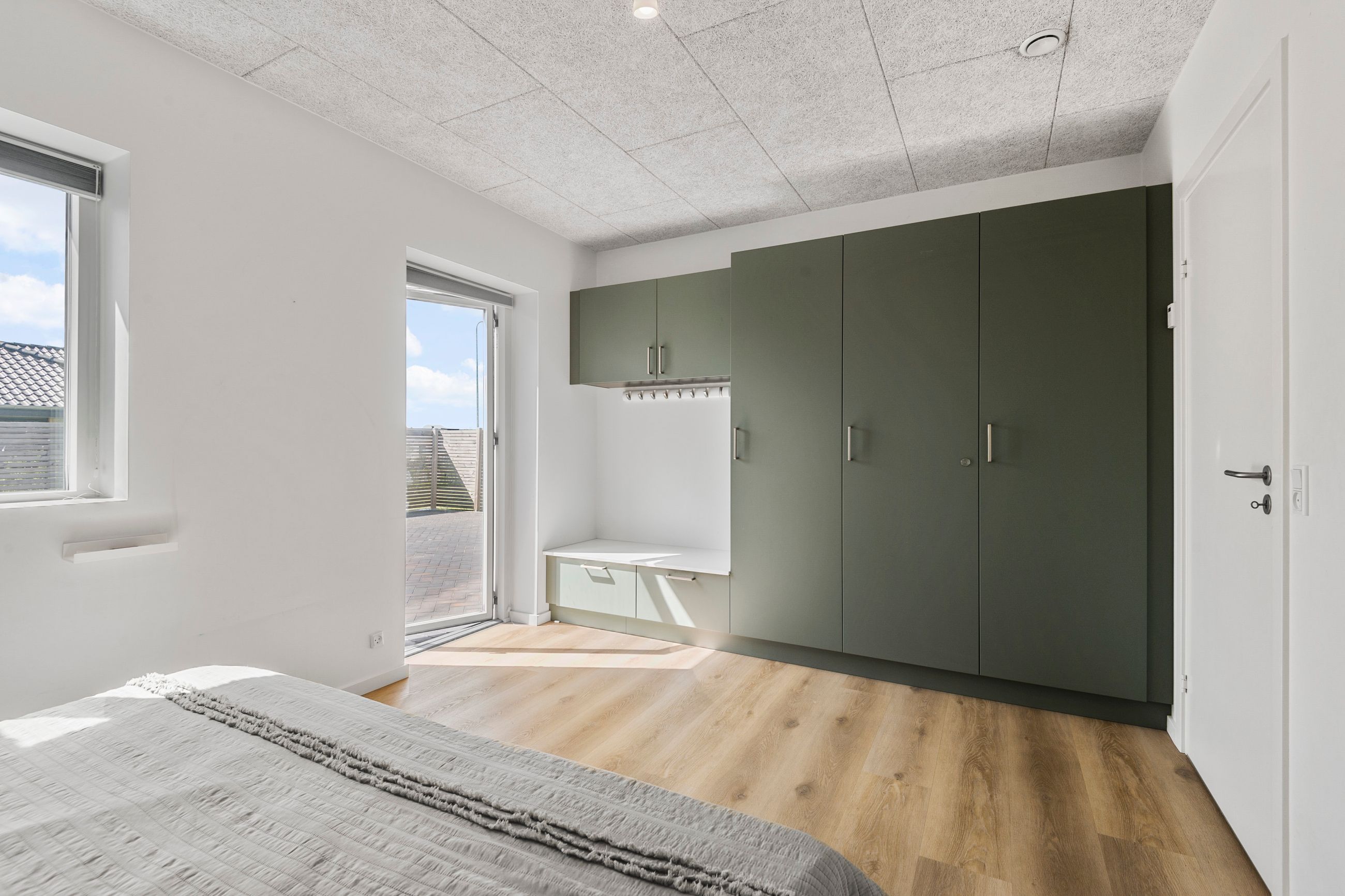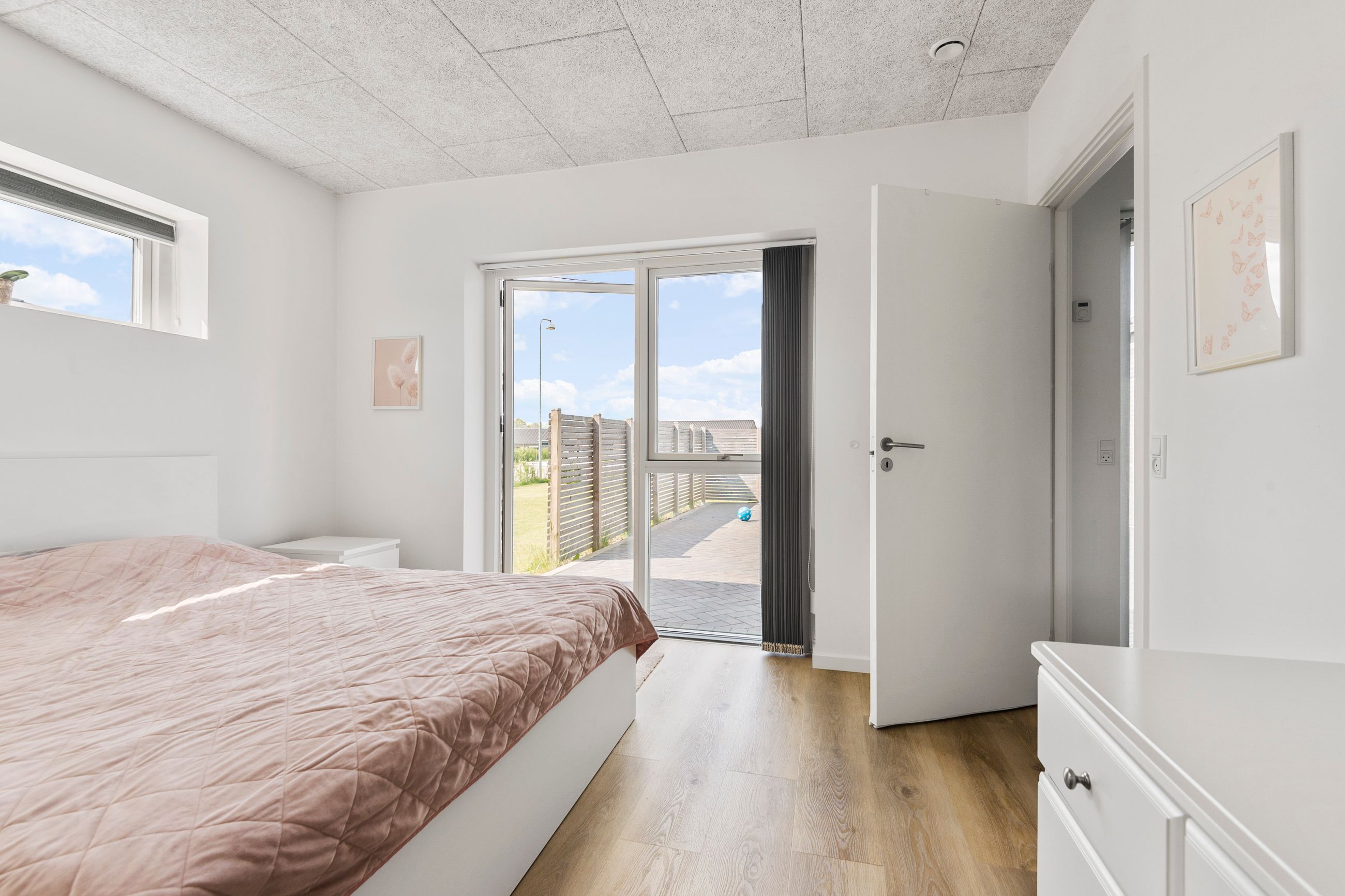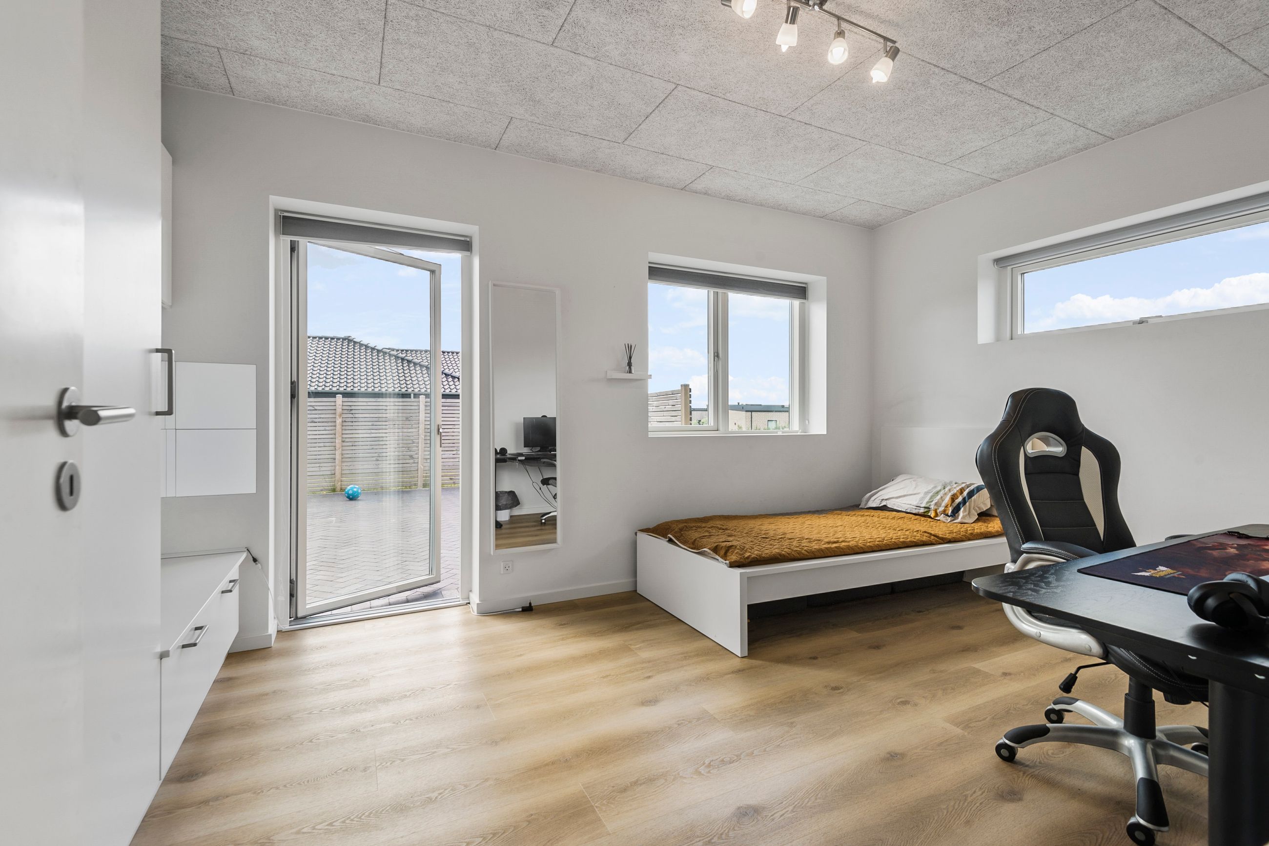 Hjemmet er ideelt indrettet med en tydelig opdeling mellem forældre- og børneafdeling. Forældreafdelingen byder på et rummeligt soveværelse med tilhørende walk-in-closet og eget badeværelse – en privat oase i dagligdagen. I børneafdelingen findes tre store børneværelser, som alle har adgang til eget badeværelse – en løsning, der gør hverdagen nem og overskuelig for børnefamilien.