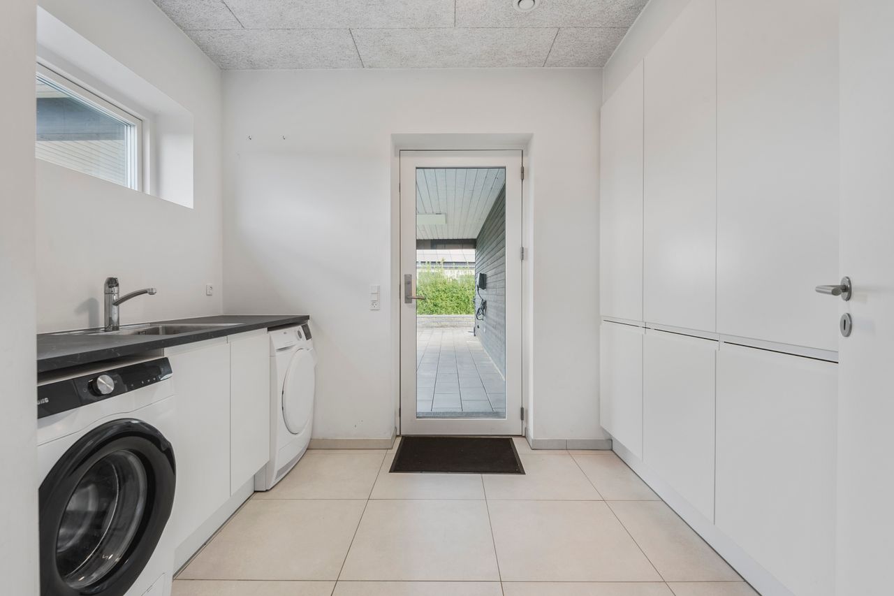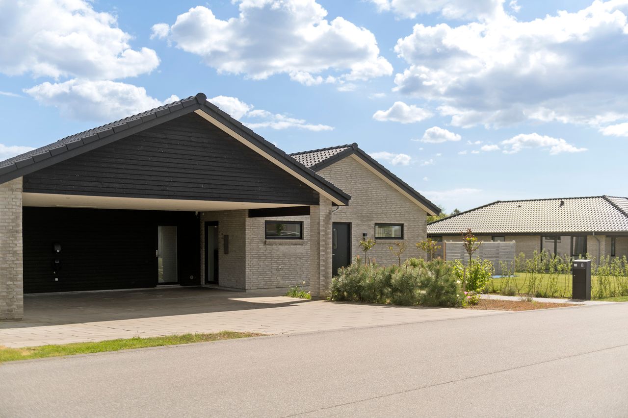 Udendørs venter en stor, dobbelt carport og gode udearealer med plads til både leg og afslapning. Beliggenheden i Sønderris betyder nærhed til skole, institutioner, indkøb og grønne områder – perfekt for den moderne familie, der ønsker en nem og bekvem hverdag.