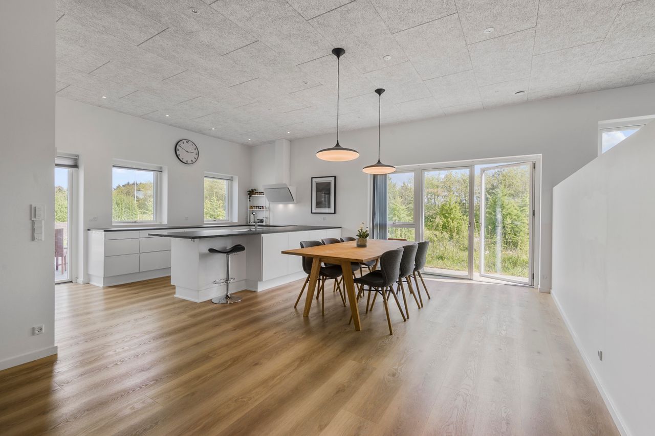 Velkommen til Plutovænget 8 – en indbydende og moderne etplansvilla opført i 2022 med fokus på både komfort, funktionalitet og æstetik. Boligen rummer hele 191 m2 og ligger i det attraktive og familievenlige Sønderris.