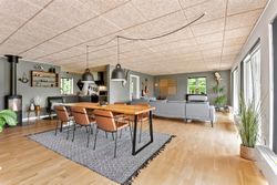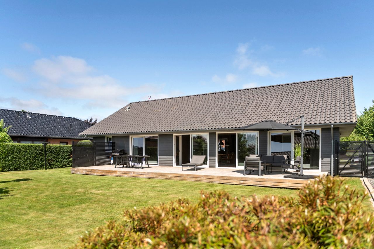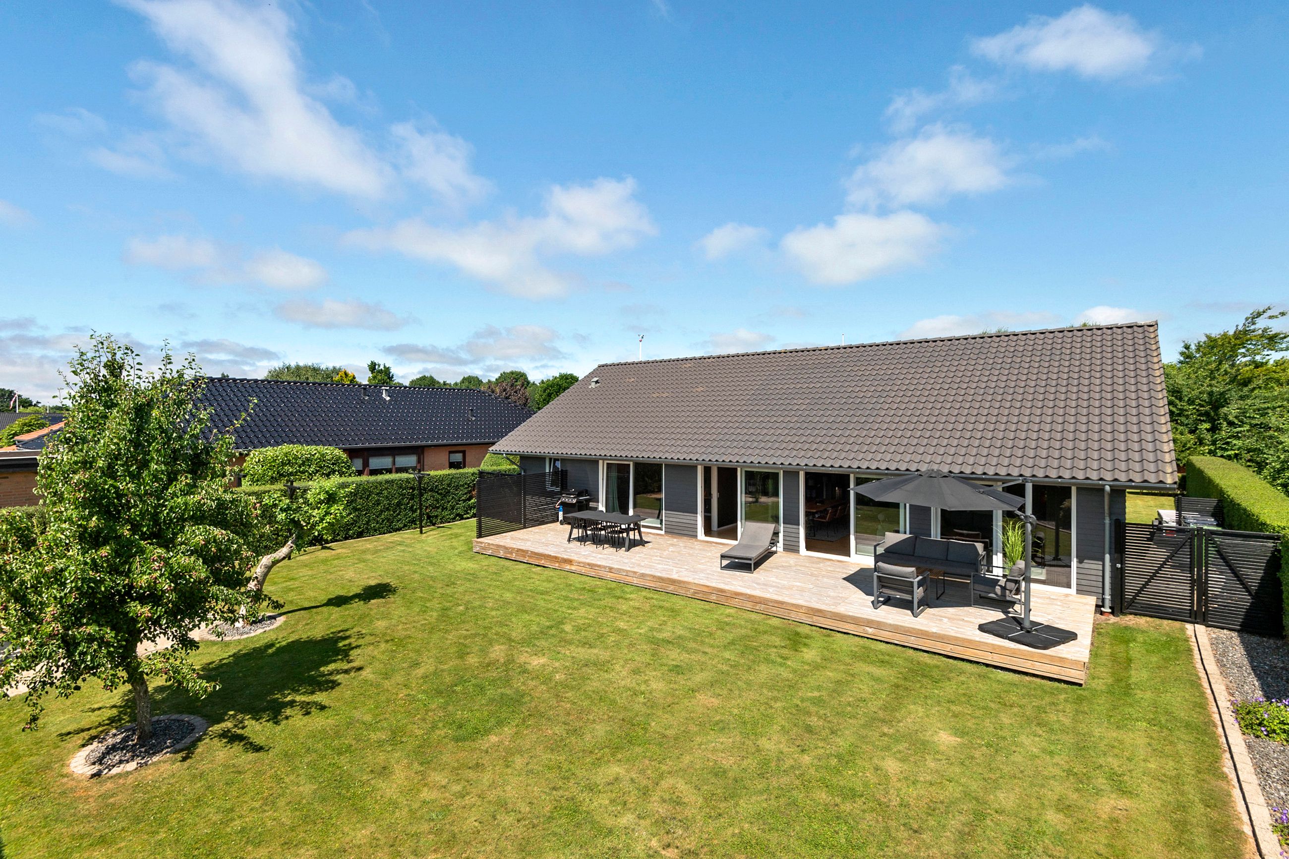 Villaen er opført i 2004 og løbende vedligeholdt og opdateret – senest med et stilrent og rummeligt køkken fra 2025, der ligger i åben forbindelse med både spiseplads og stue. Her får I et fantastisk leve rum med store vinduespartier og udgang til den solrige træterrasse og den smukke, velanlagte have. Et oplagt samlingspunkt for både hverdag og gæster – ude som inde.