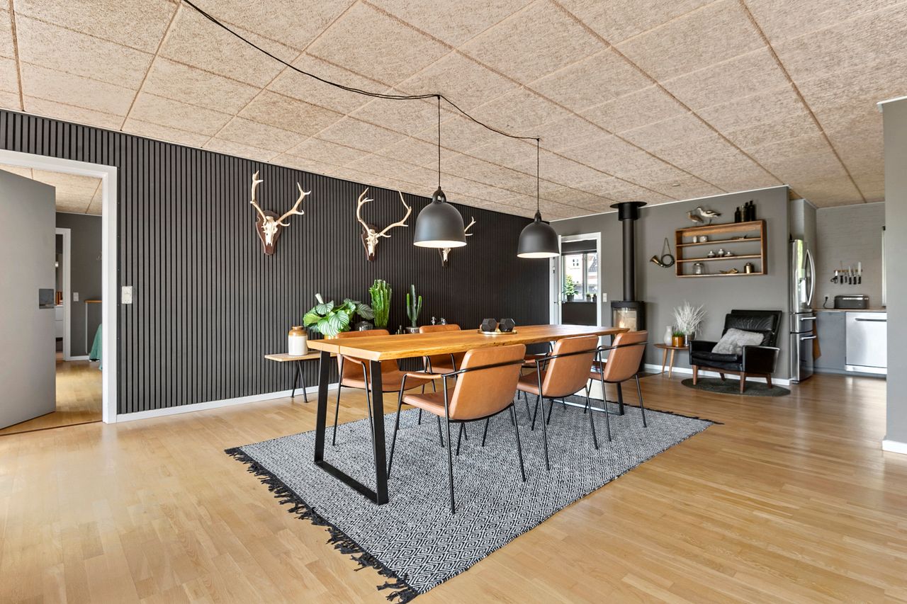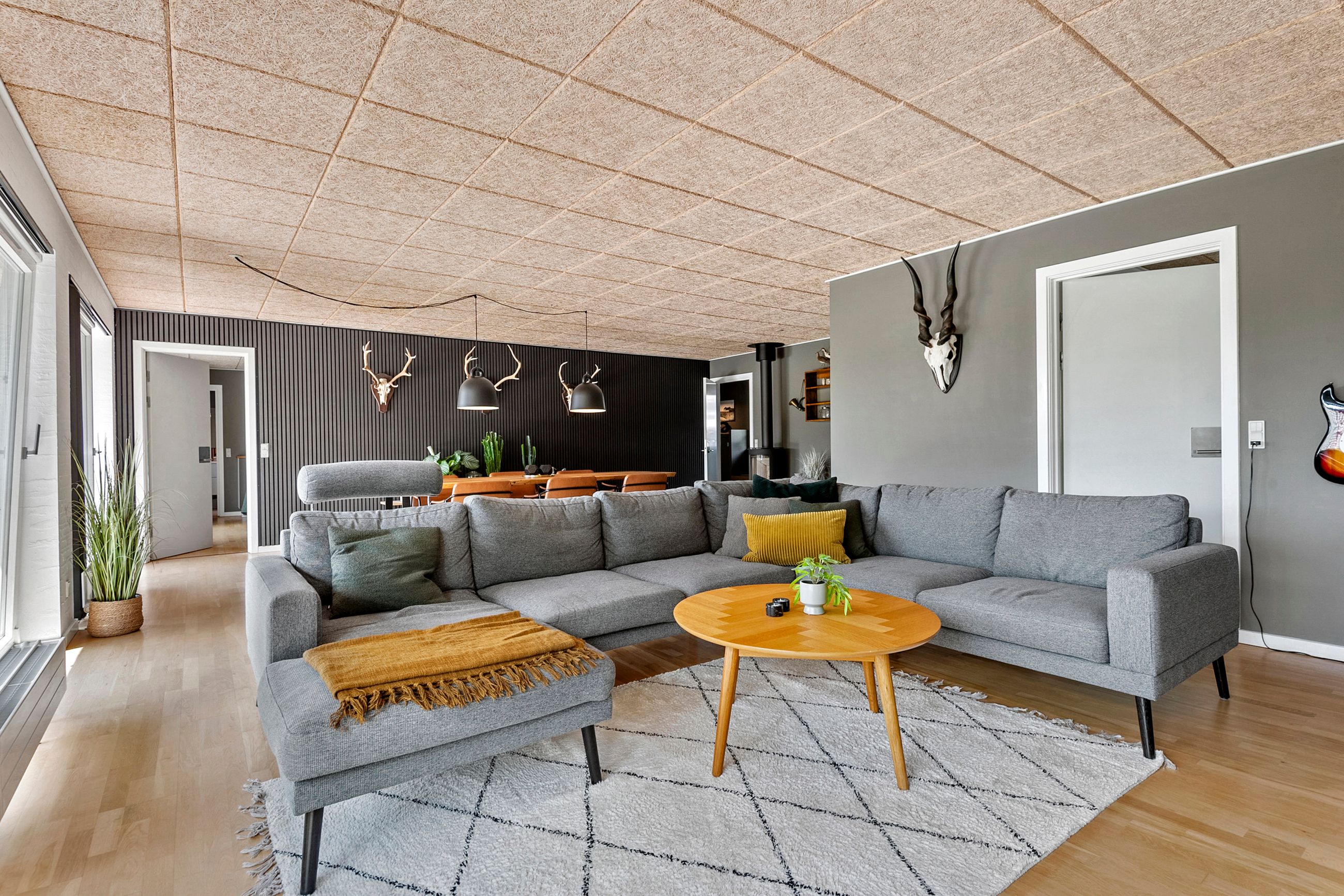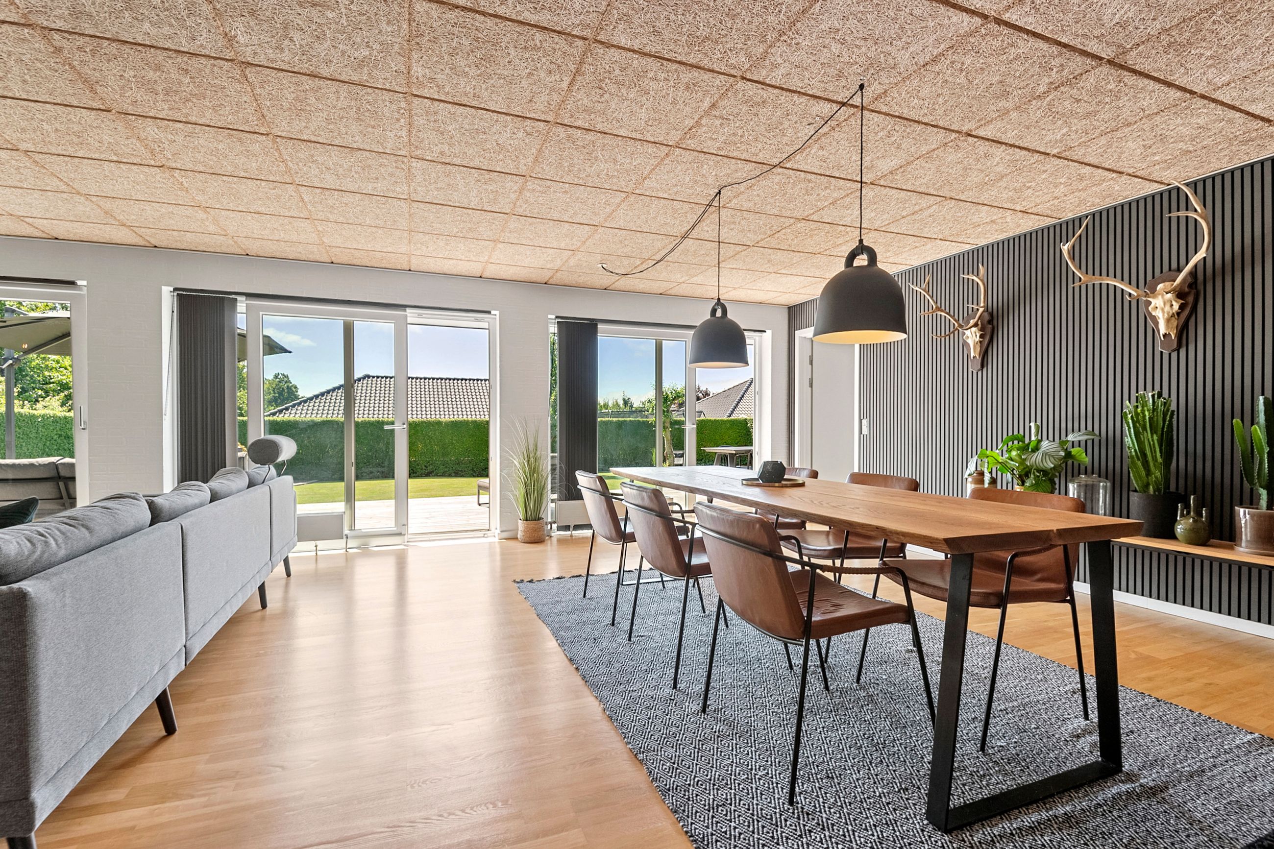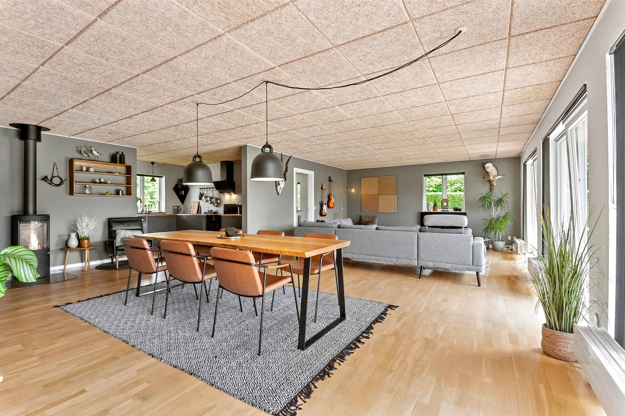 Overalt i boligen finder I flotte trægulve og Troldtekt-lofter, som skaber en harmonisk og varm atmosfære. Haven er hyggelig og privat – anlagt med stor træterrasse, hvor solen kan nydes dagen lang.