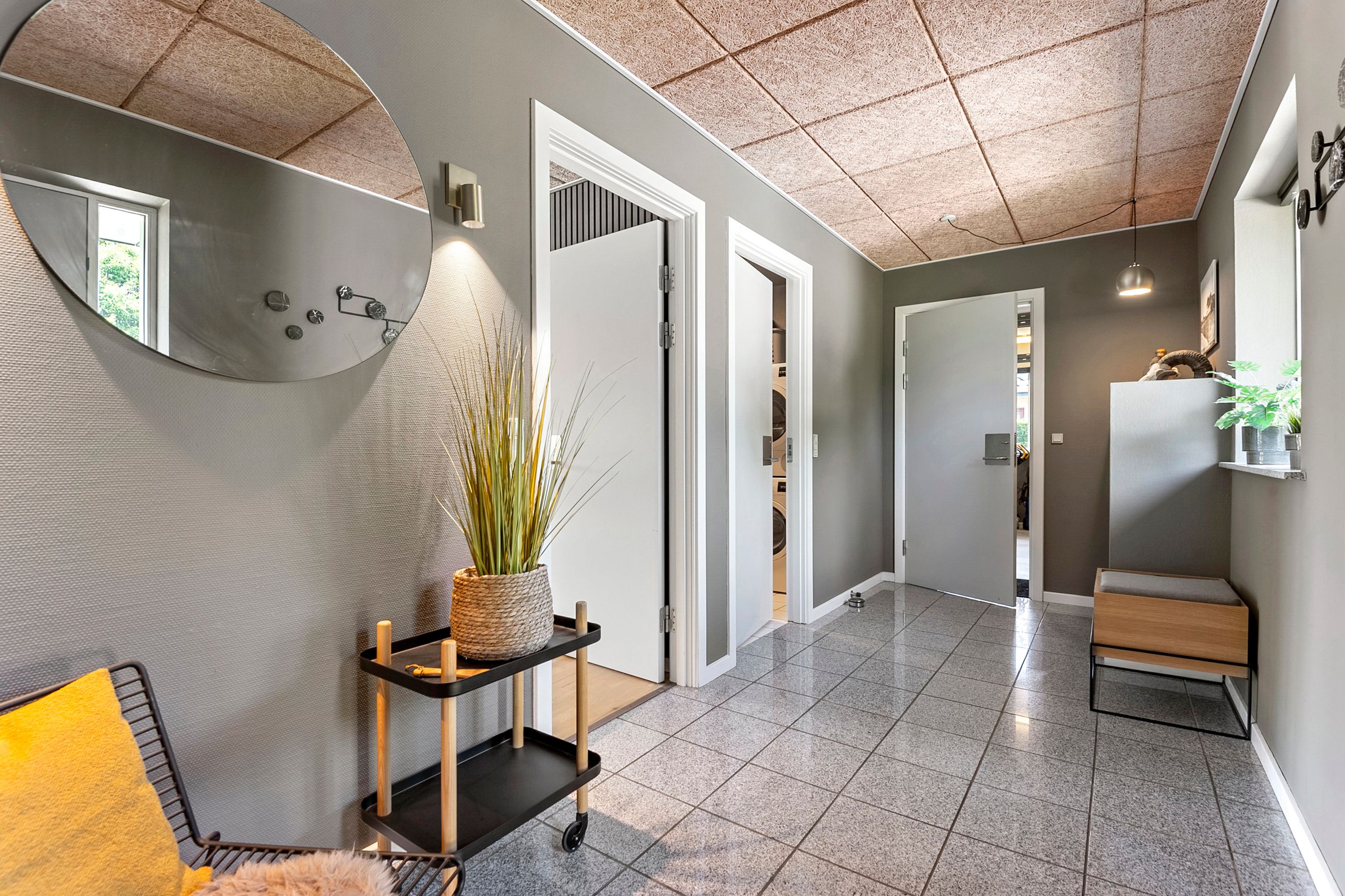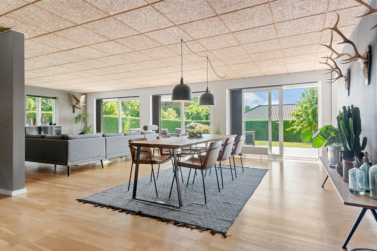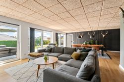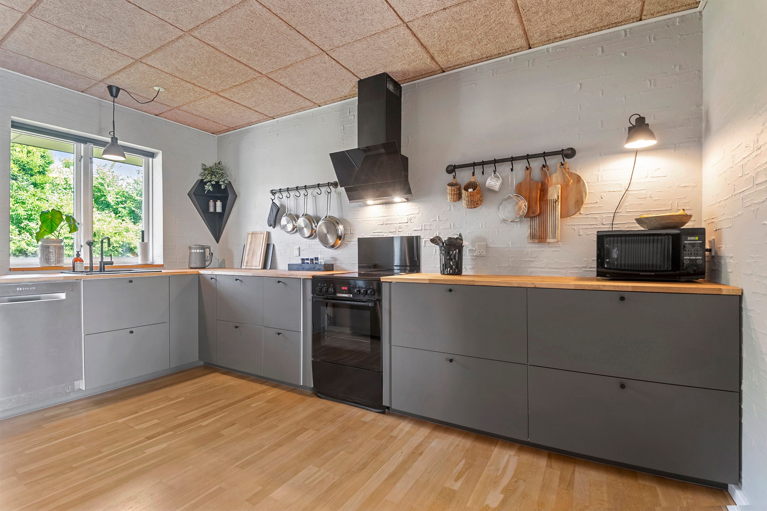 Overalt i boligen finder I flotte trægulve og Troldtekt-lofter, som skaber en harmonisk og varm atmosfære. Haven er hyggelig og privat – anlagt med stor træterrasse, hvor solen kan nydes dagen lang.
