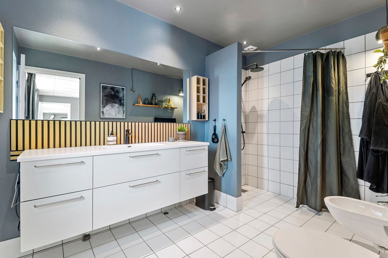 Boligen indeholder en rummelig entré med god plads til overtøjet og adgang til et lyst og indbydende badeværelse. Det store børneværelse giver god plads til leg og læring, mens forældreafdelingen byder på et walk-in-closet og eget badeværelse med masser af komfort og plads.