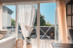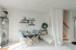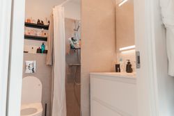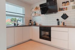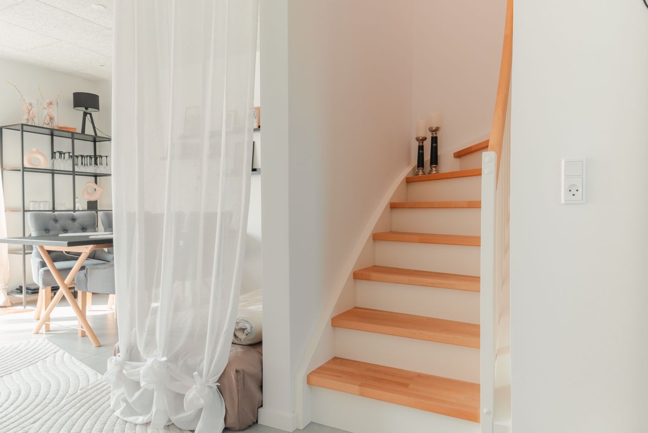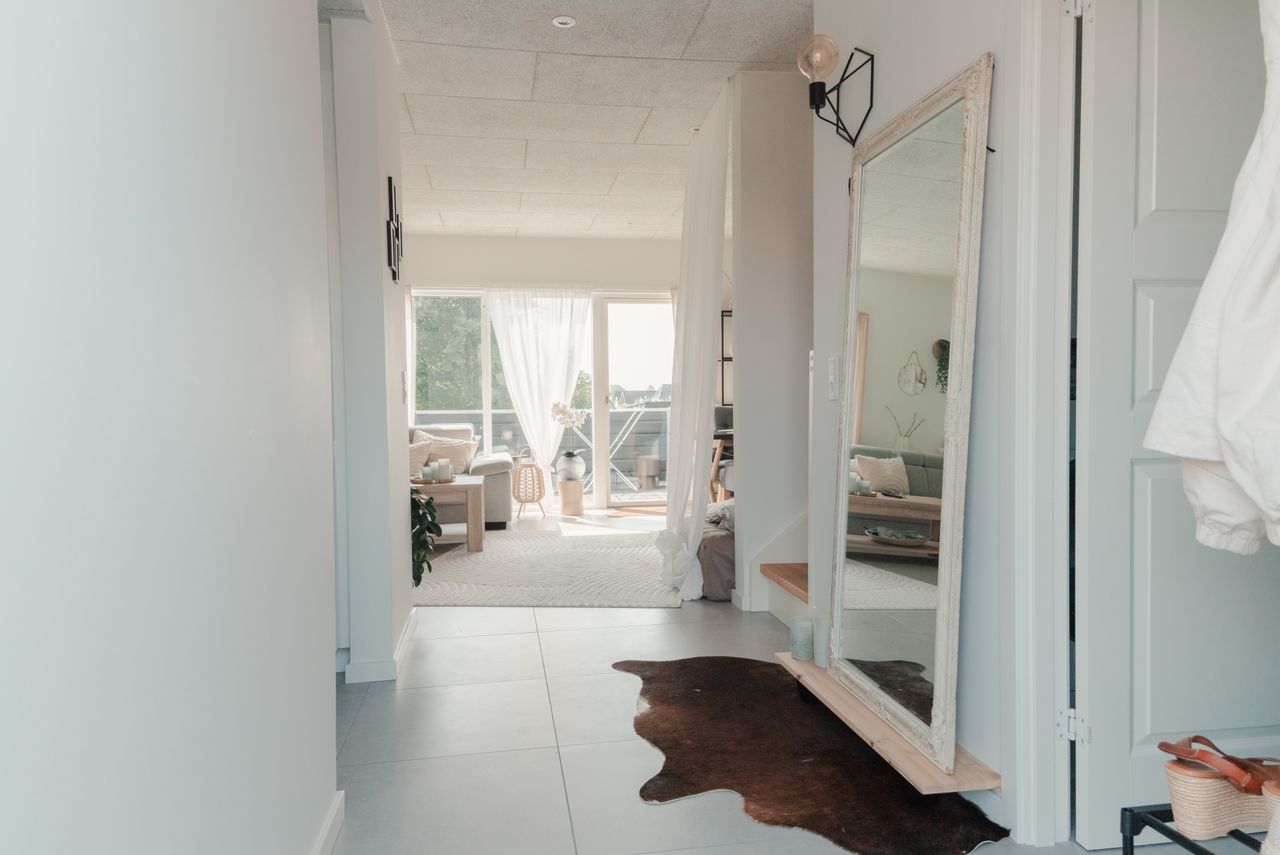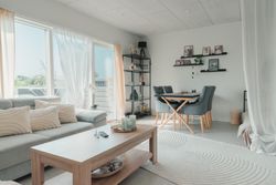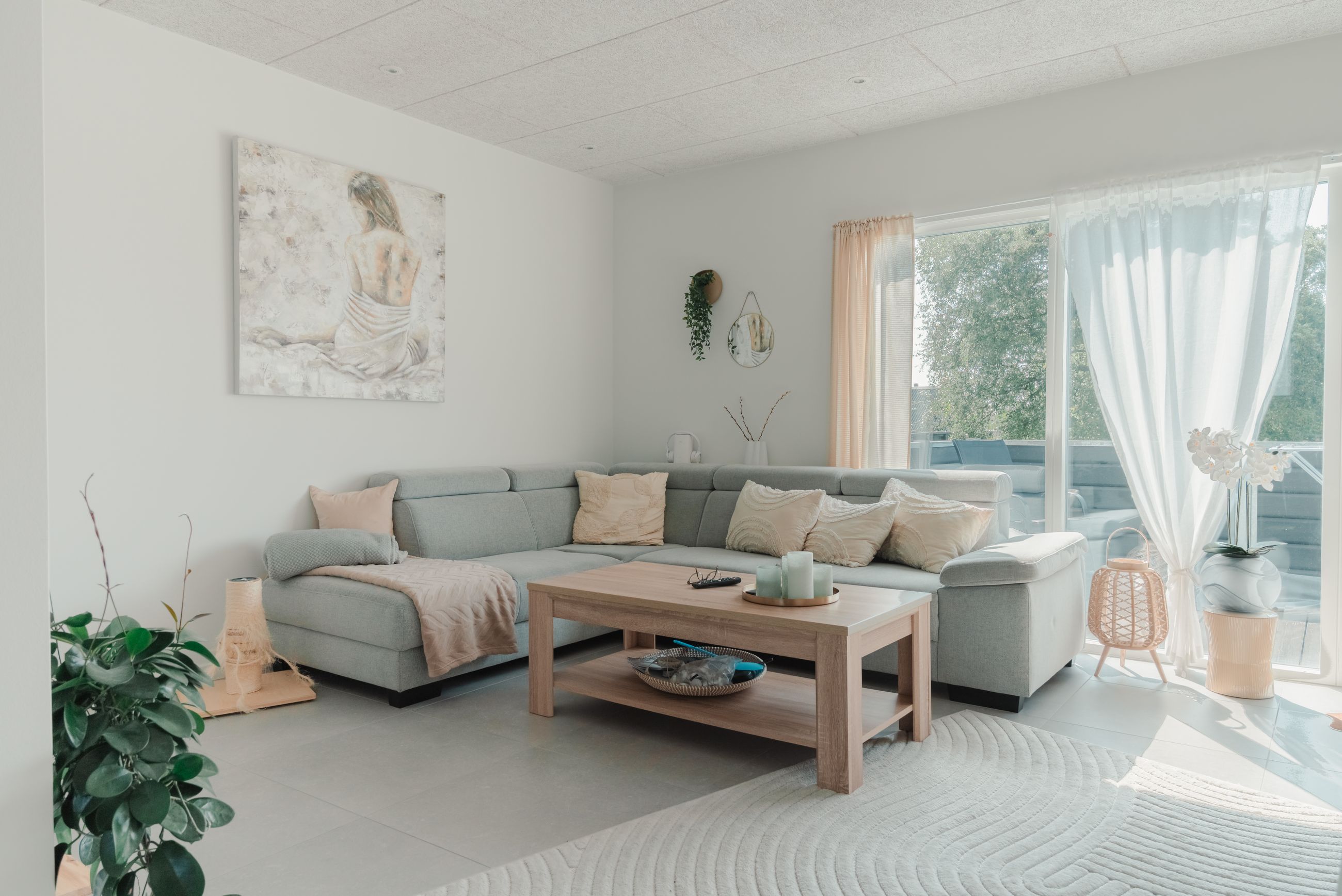 I stueplan bydes man velkommen af et lyst og stilrent køkken i moderne elementer, der ligger i åben forbindelse til en rummelig stue. Her er der plads til både spisebord og sofagruppe, og fra stuen er der direkte udgang til en skøn altan, hvor udelivet kan nydes. Badeværelset fremstår indbydende med flotte klinker og en god, rummelig bruseniche.