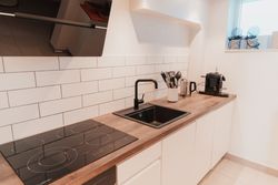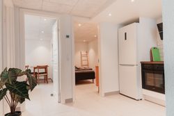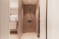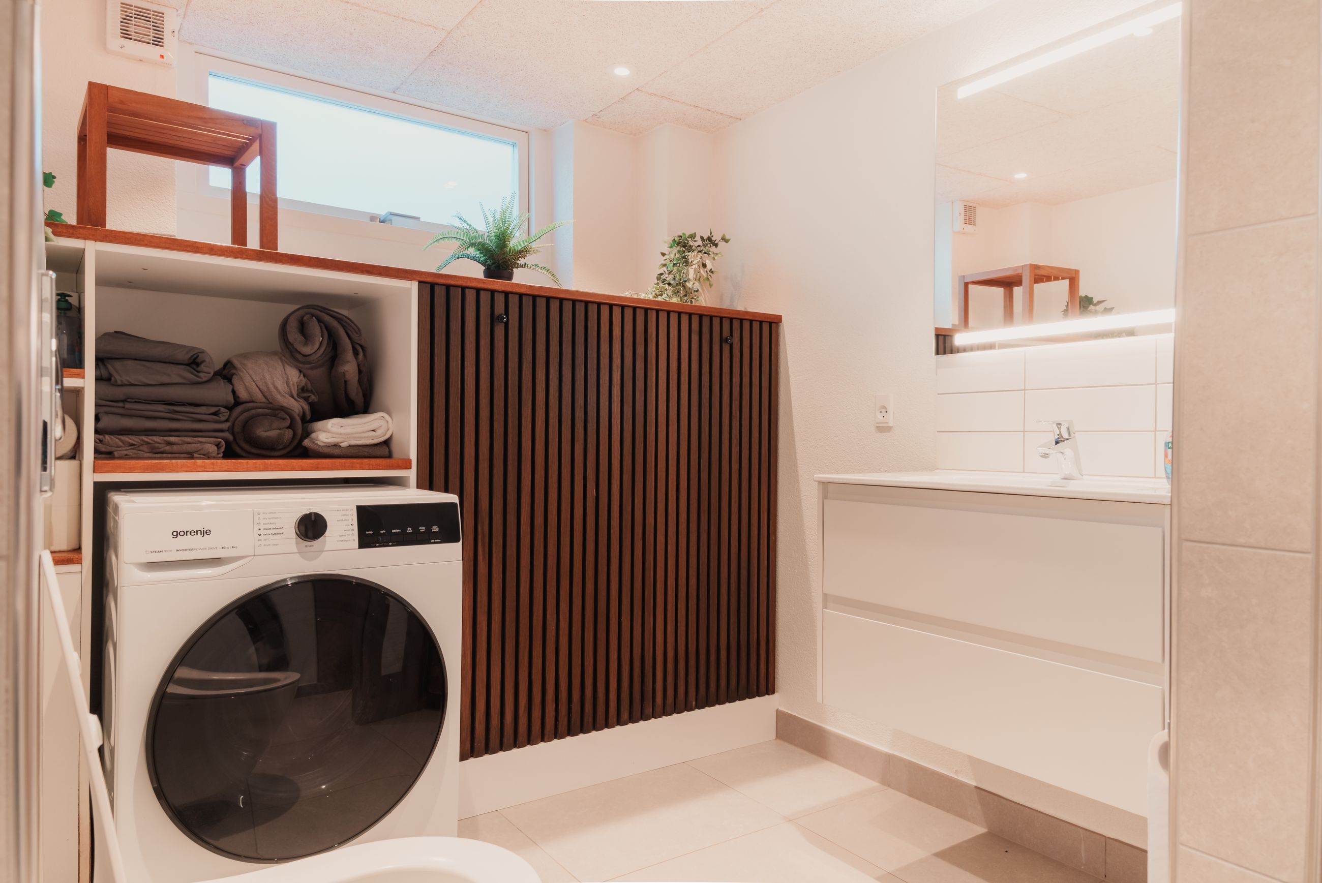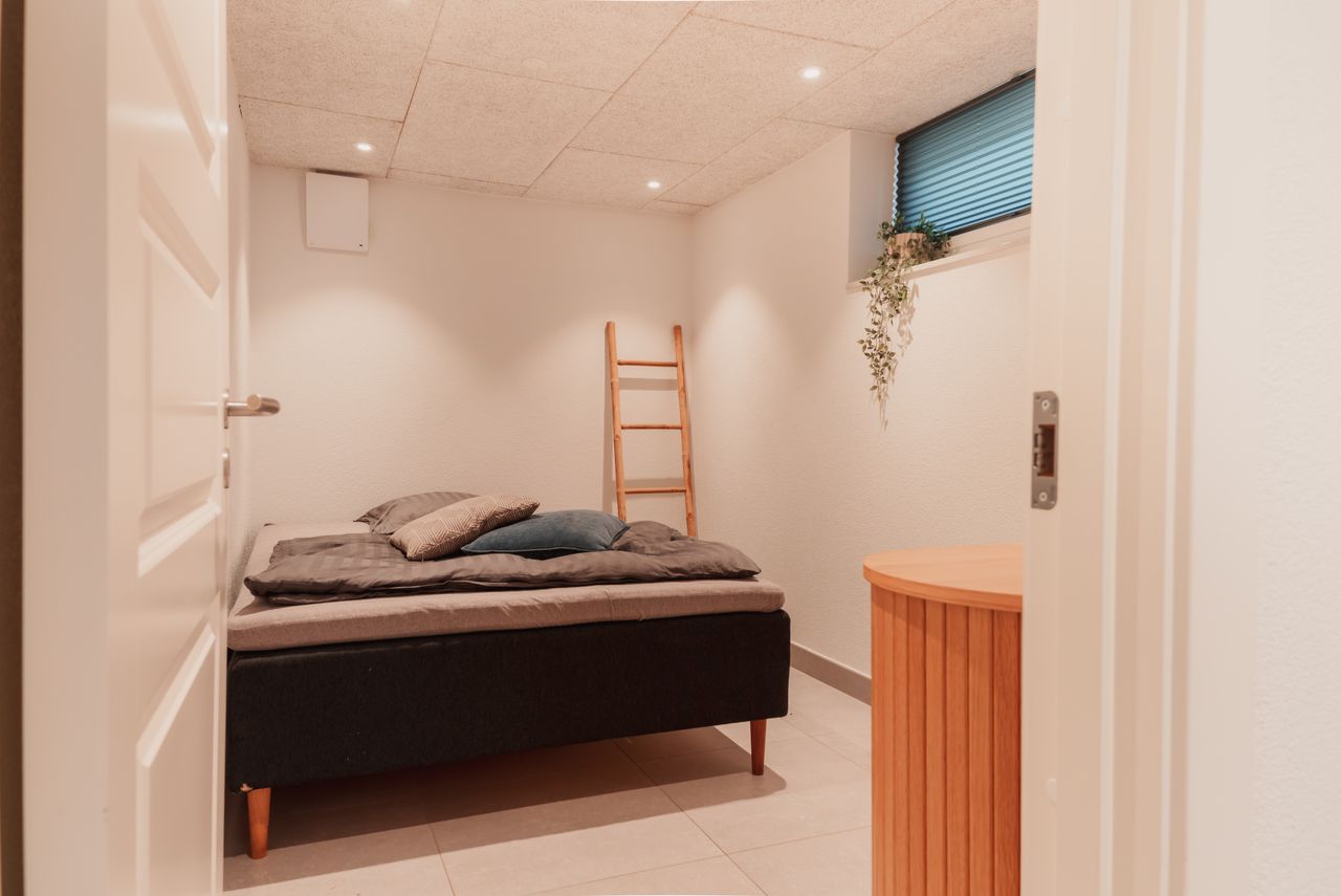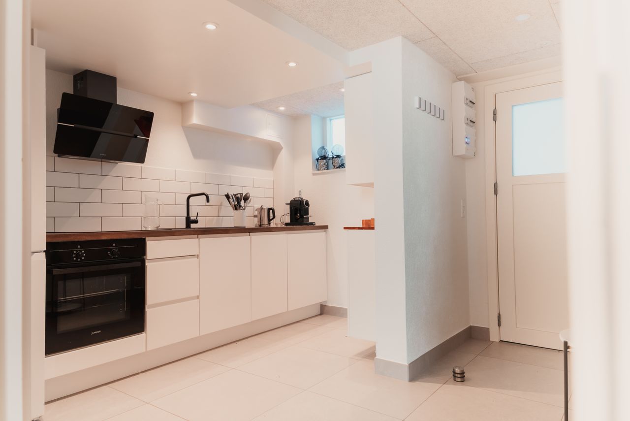 Kælderen er noget helt særligt og fremstår som en luksus afdeling i sig selv. Her er både eget køkken og et lækkert badeværelse samt to store disponible rum, der kan anvendes efter behov – eksempelvis til teenageafdeling, hobbyrum eller gæsteafdeling. Hele kælderen er udstyret med gulvvarme, hvilket giver en behagelig og eksklusiv atmosfære.