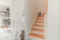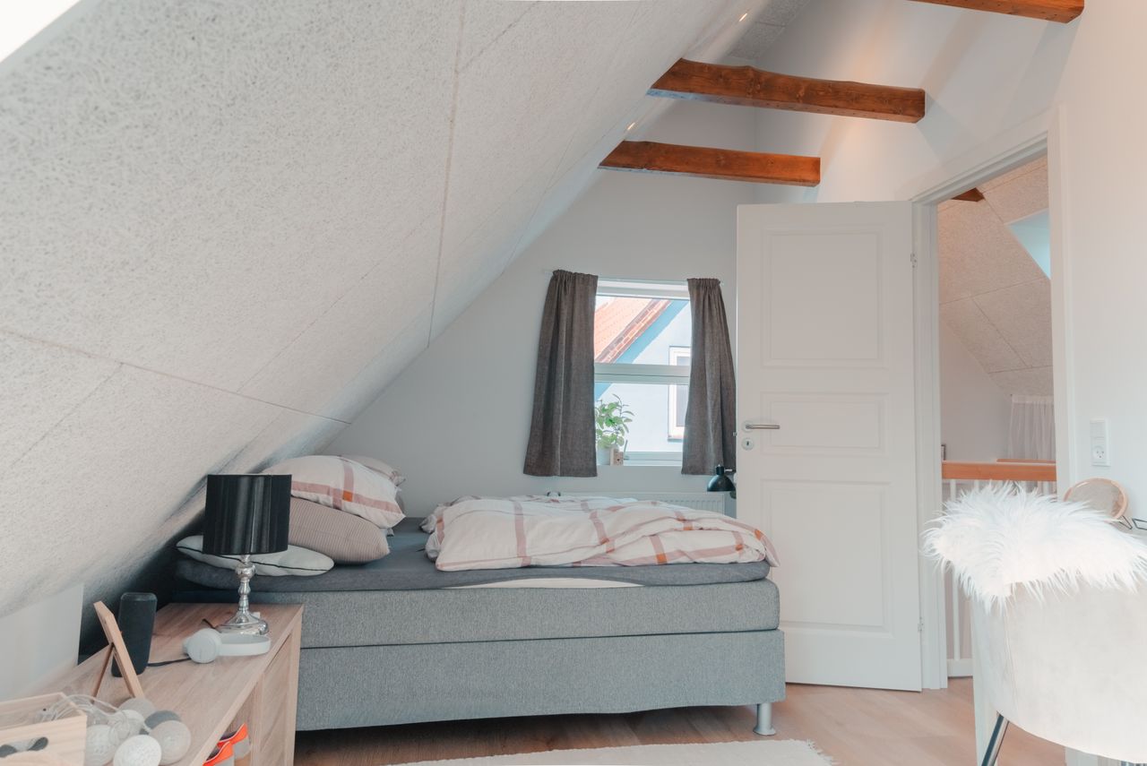 På 1. sal findes to store værelser med smukke gulve og et dejligt lysindfald – ideelt til børneværelser, soveværelse eller hjemmekontor.