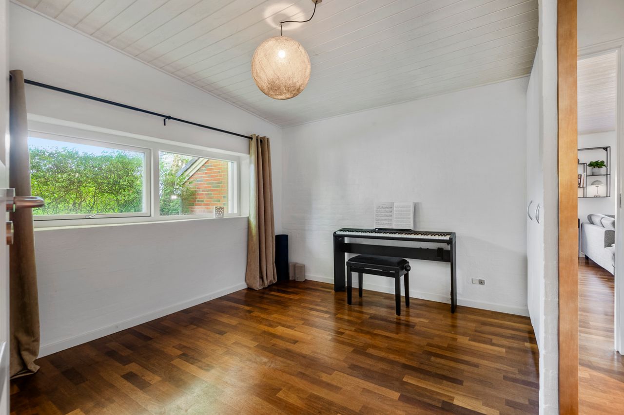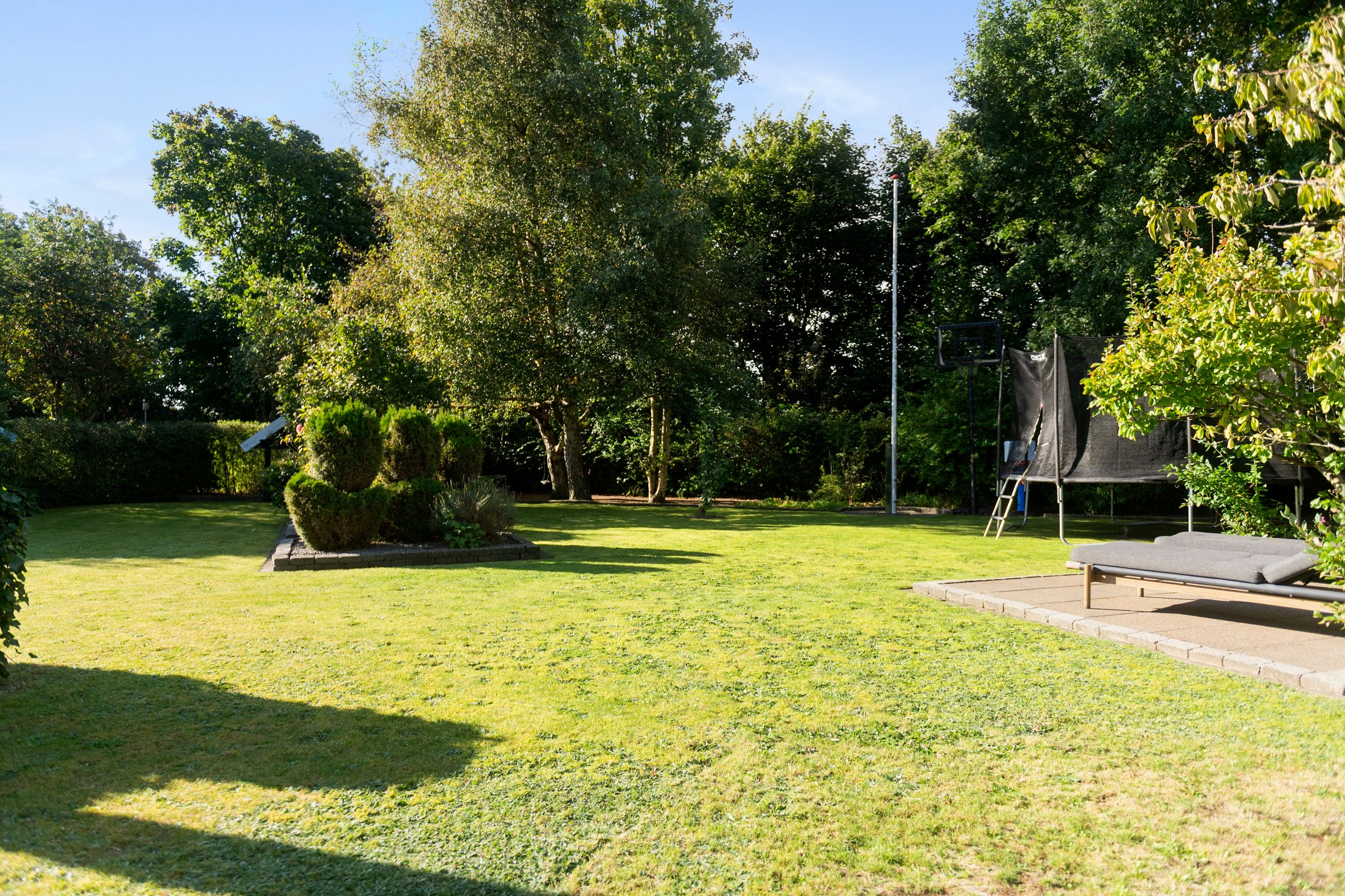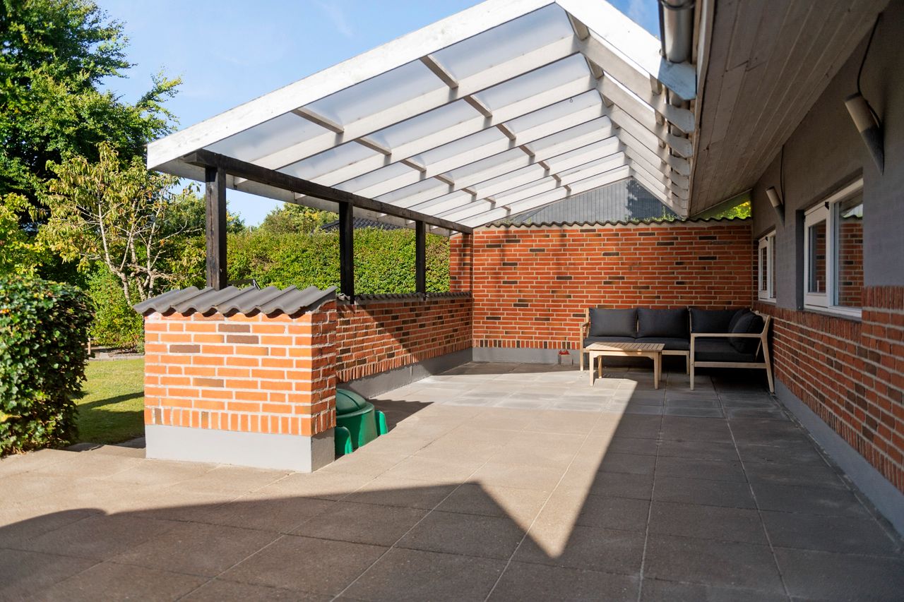 Udenfor venter en skøn have med høje træer, hyggelige kroge og rig mulighed for både leg og afslapning. Til boligen hører desuden carport samt et rummeligt redskabsrum.