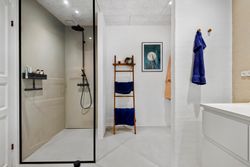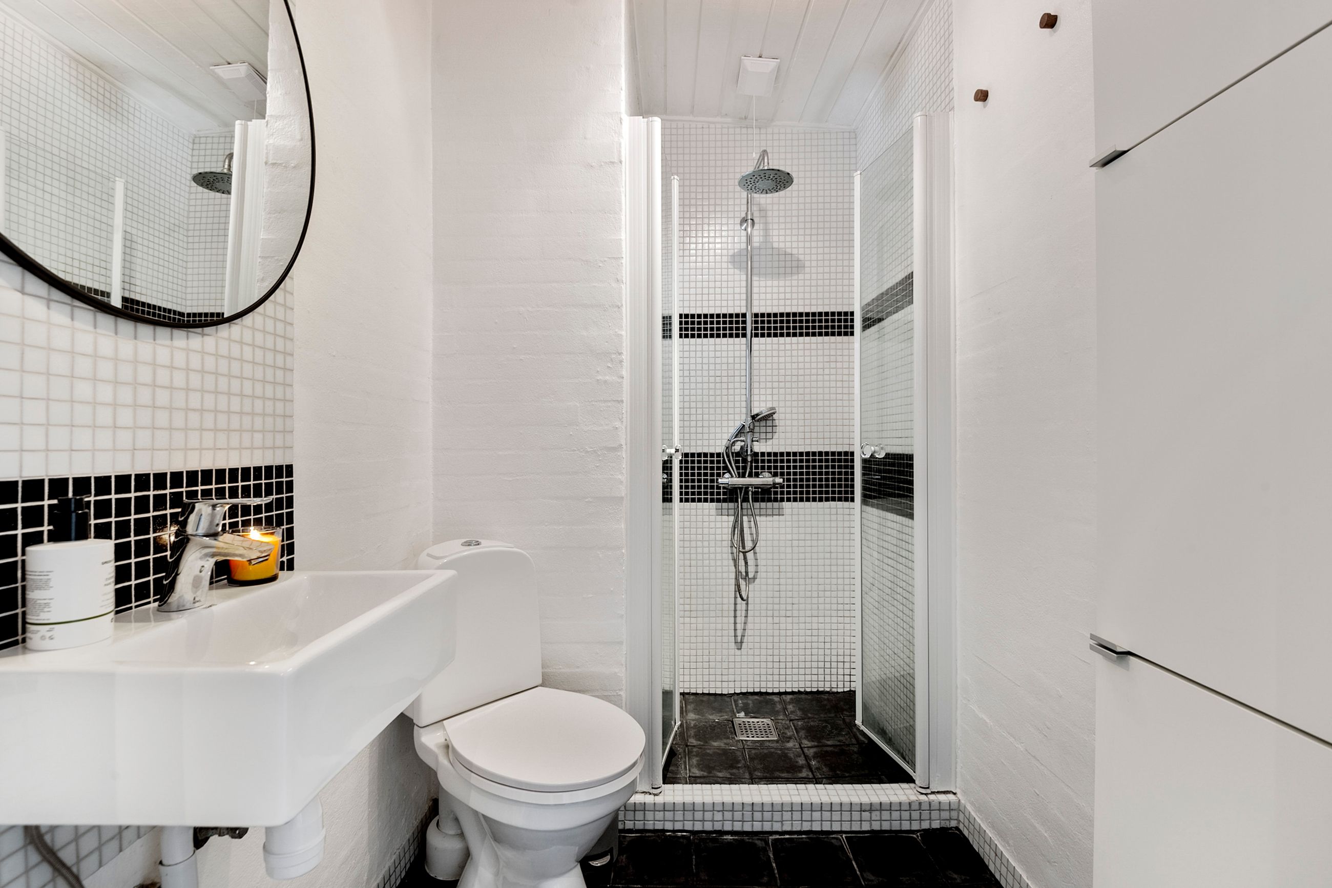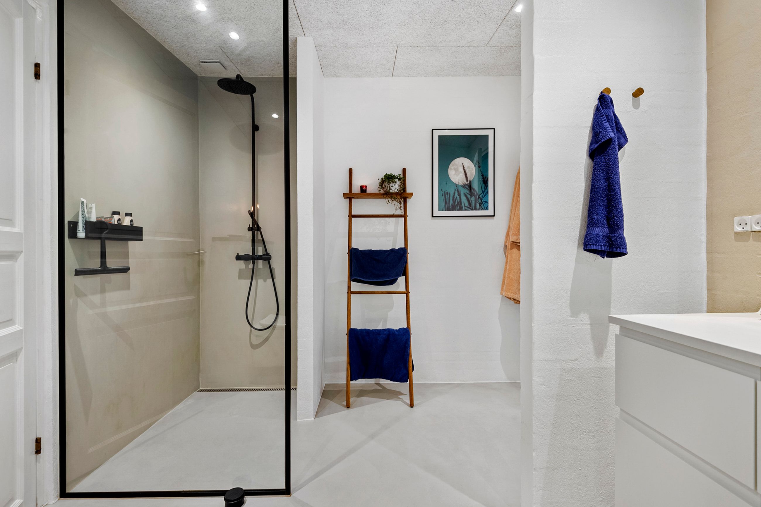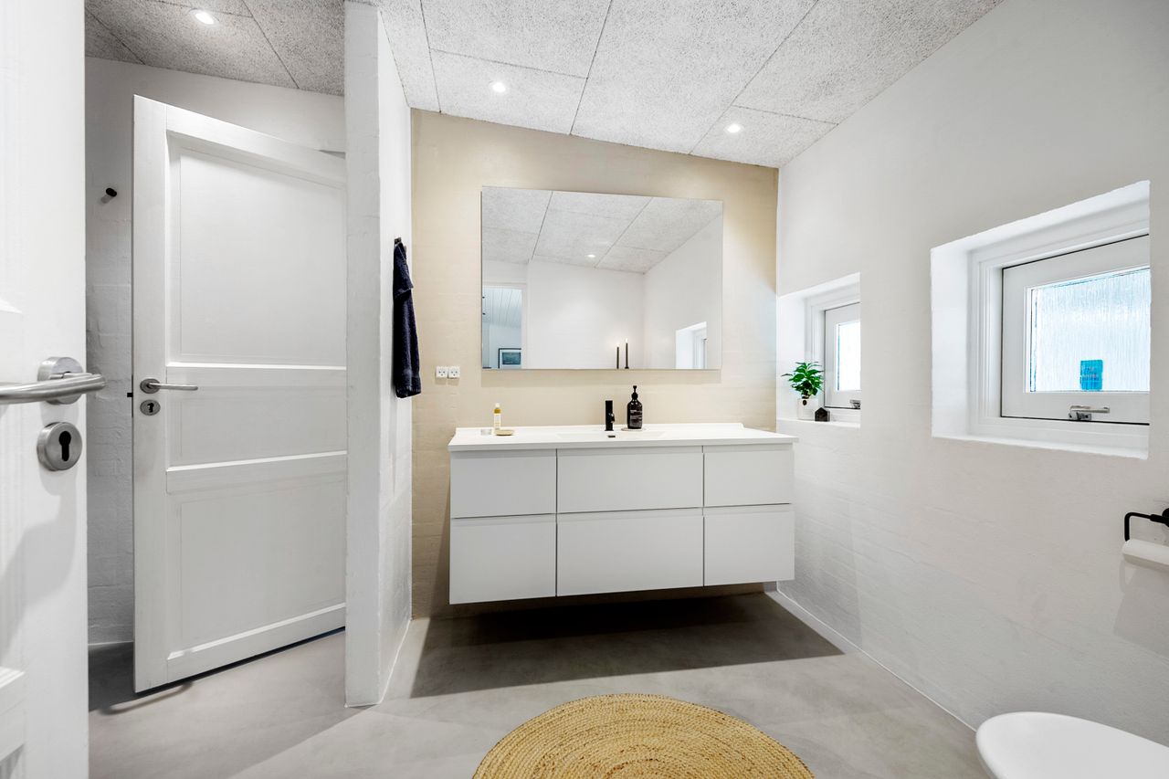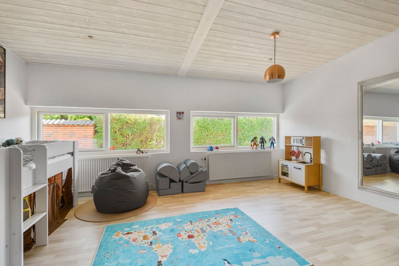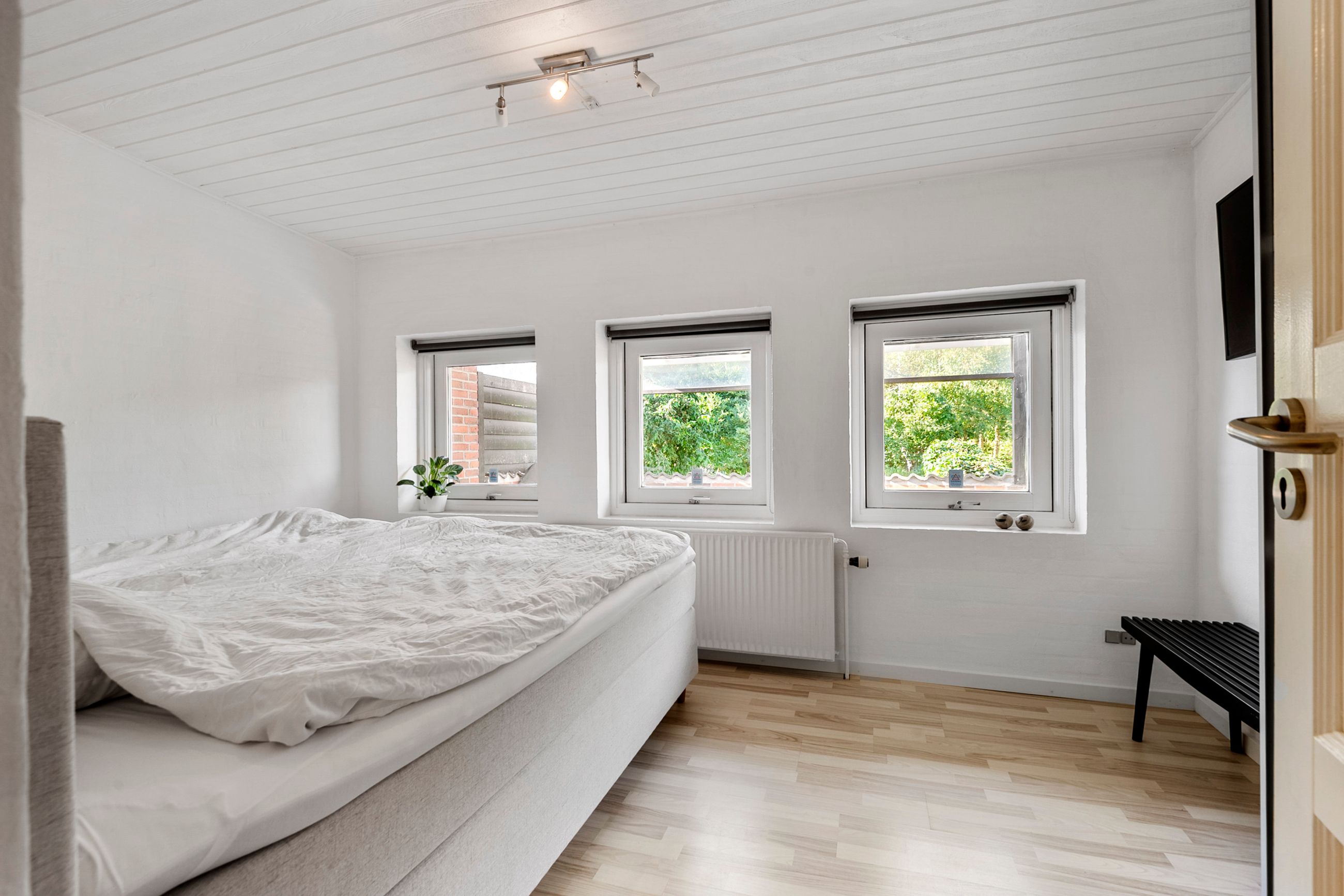 Forældreafdelingen rummer et godt soveværelse med direkte adgang til et totalrenoveret, moderne badeværelse. I børneafdelingen findes to store værelser og endnu et badeværelse, hvilket giver plads og komfort til hele familien.
