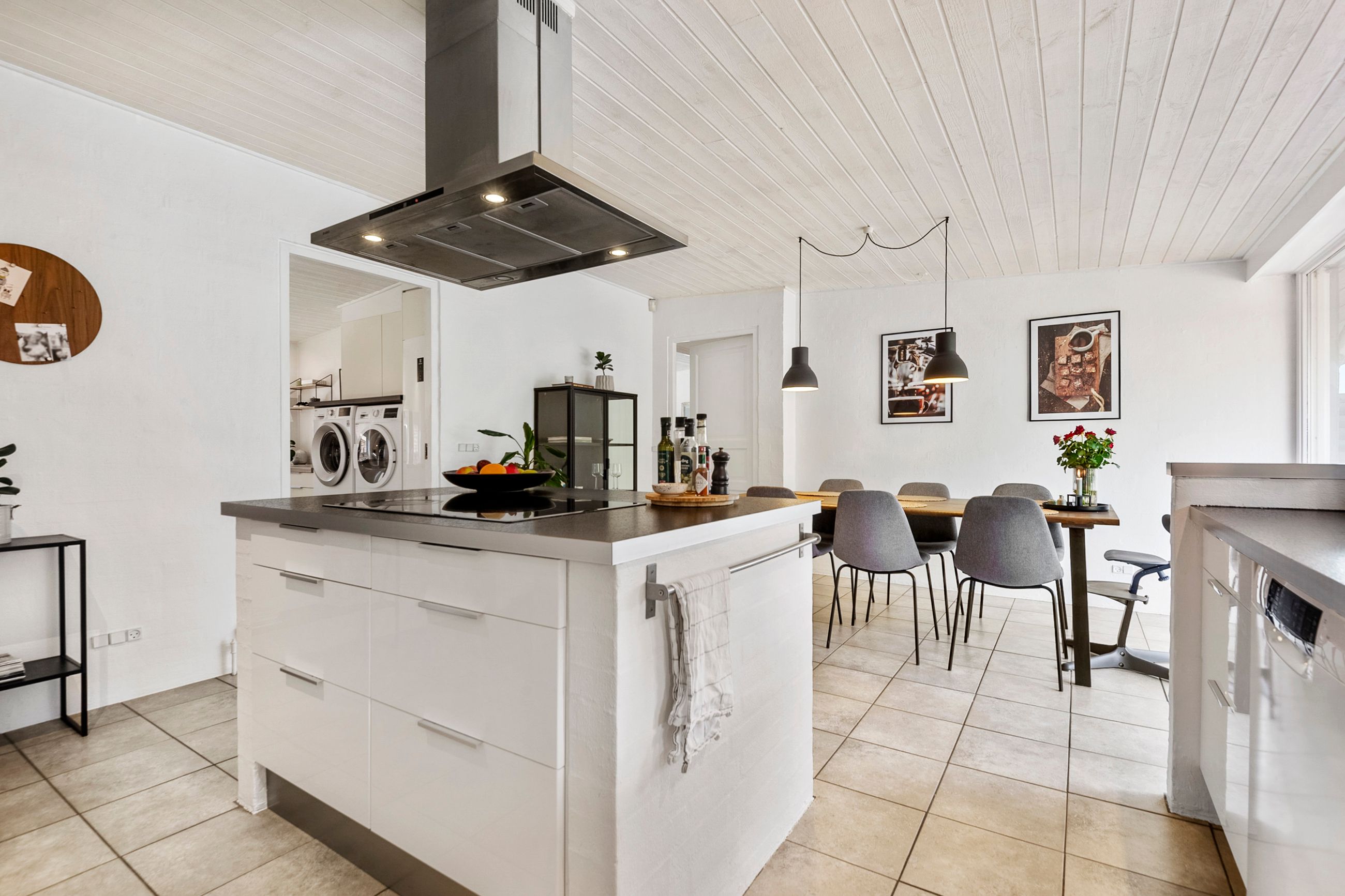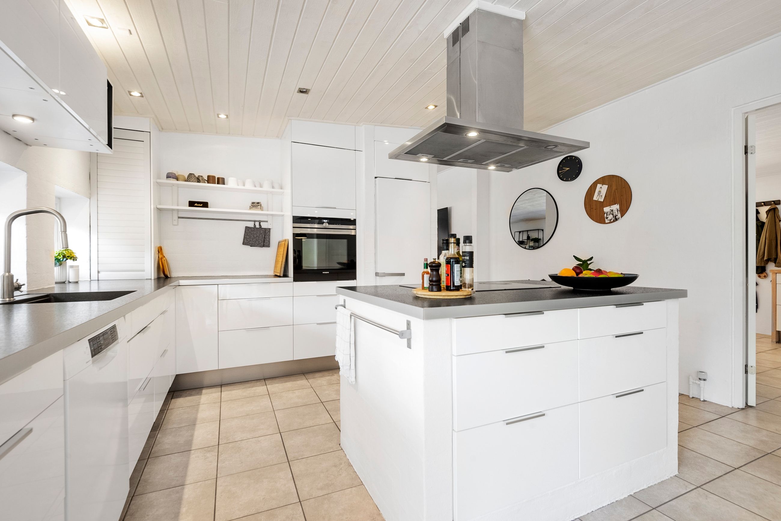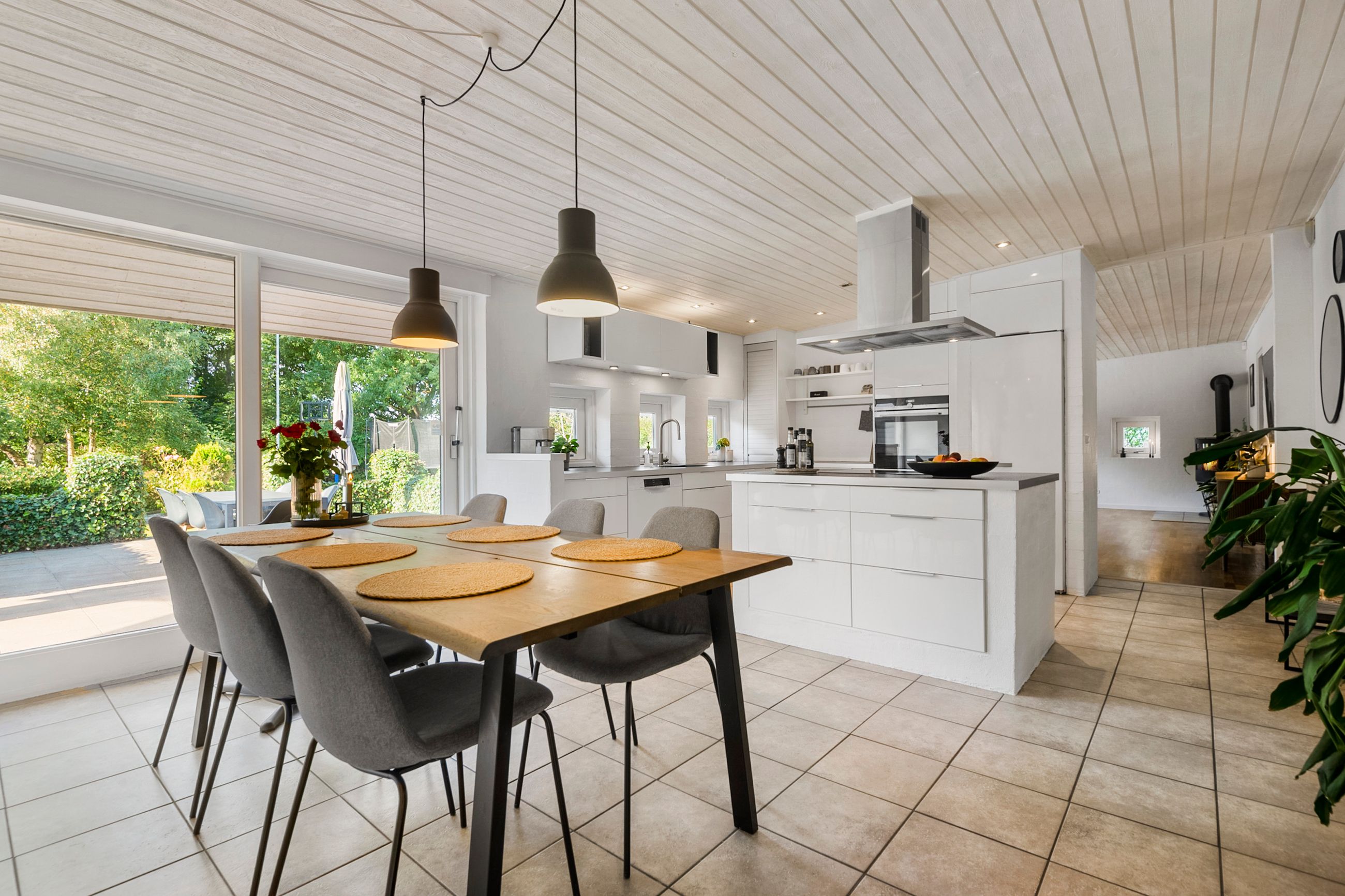 Boligen byder dig velkommen i en rummelig entré med masser af praktisk opbevaringsplads. Herfra åbner huset sig mod et lyst og indbydende køkken med spiseplads og udgang til den solrige have. Køkkenet ligger i åben forbindelse med den store stue, som er nem at indrette både hyggeligt og funktionelt.