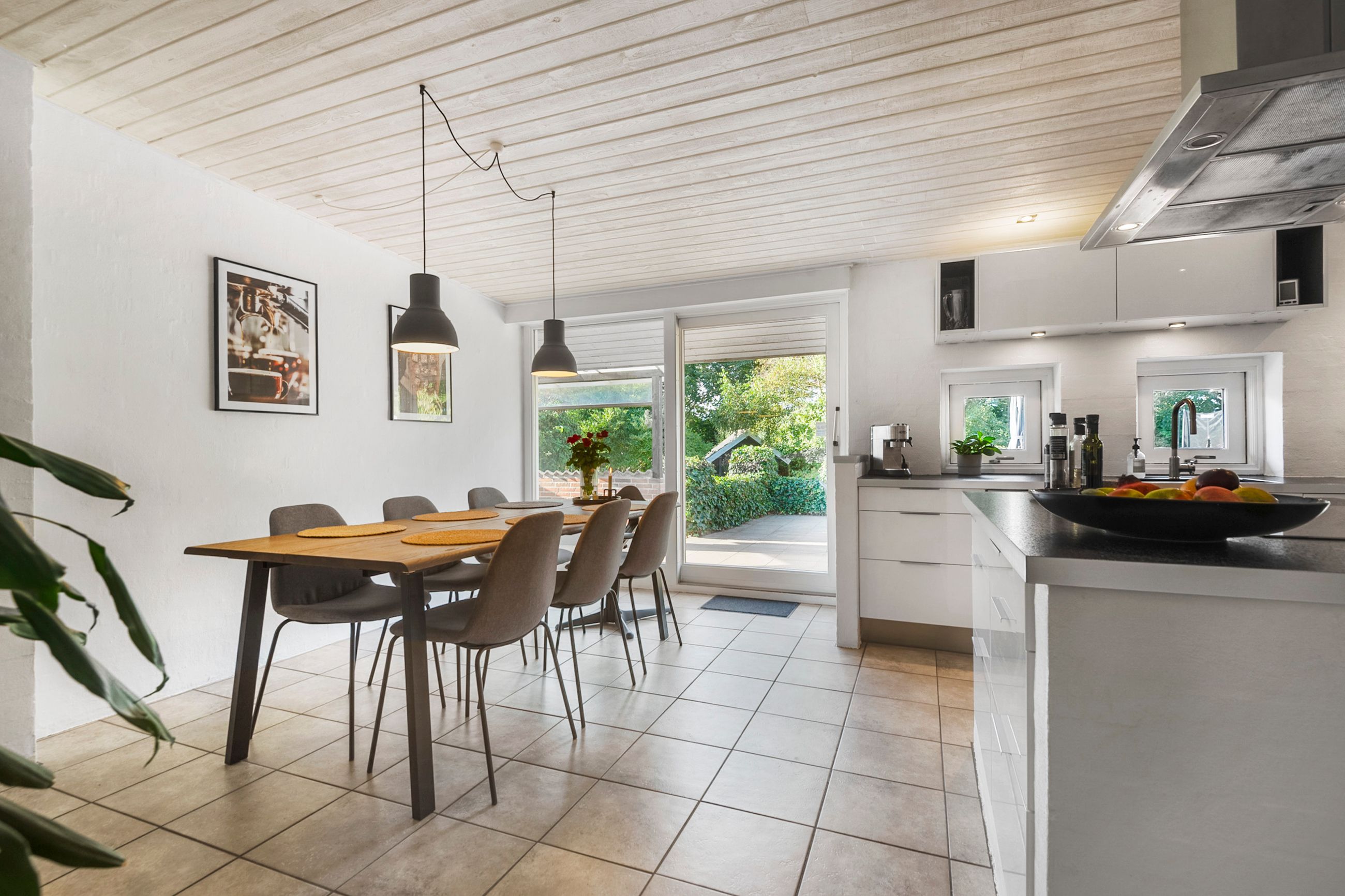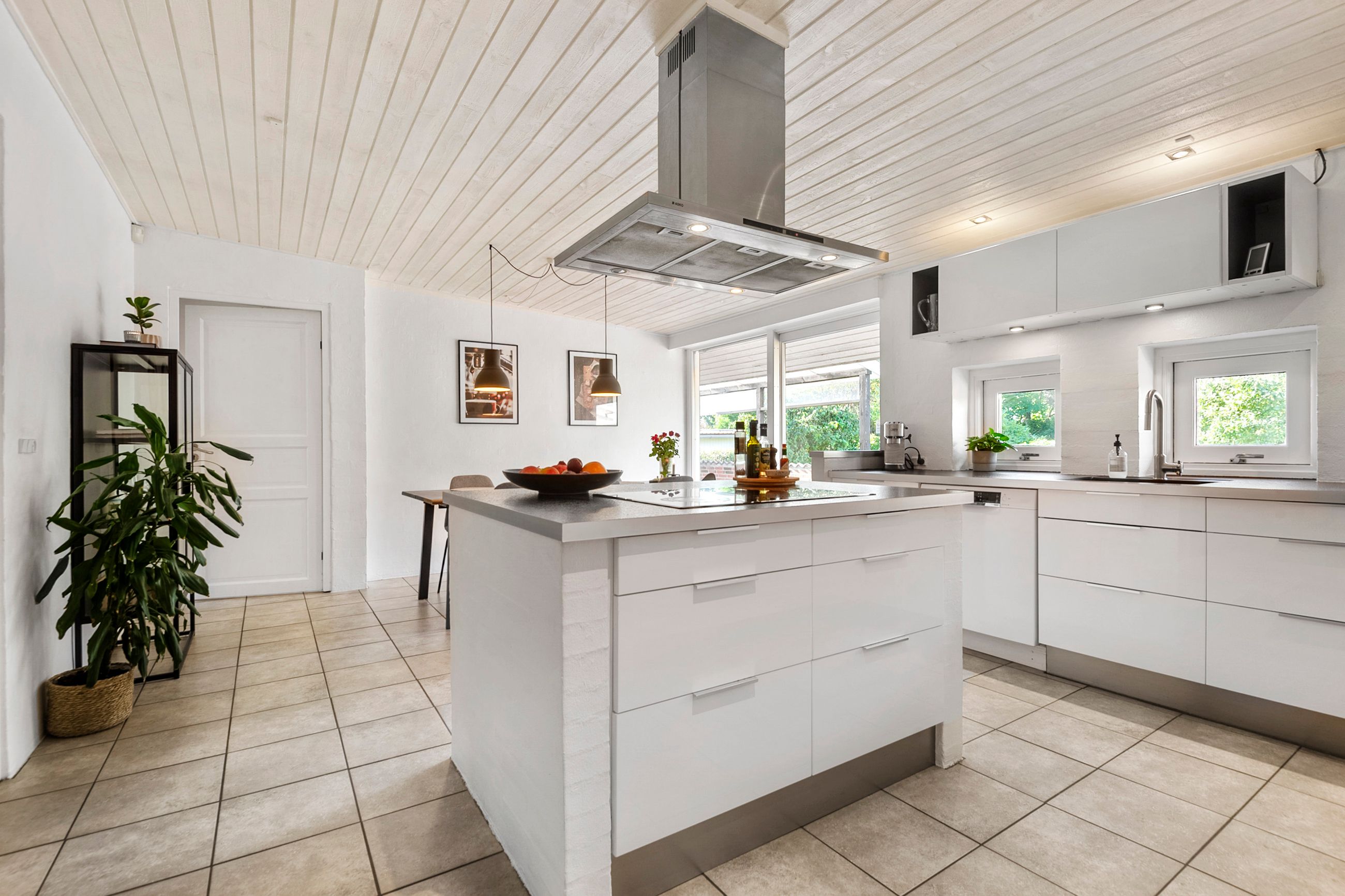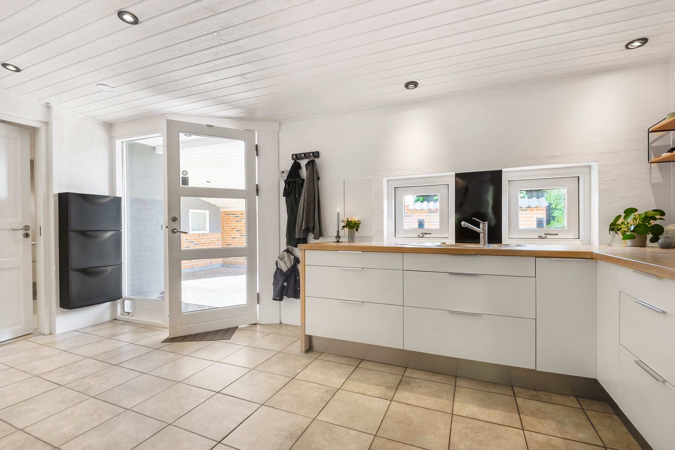 Boligen byder dig velkommen i en rummelig entré med masser af praktisk opbevaringsplads. Herfra åbner huset sig mod et lyst og indbydende køkken med spiseplads og udgang til den solrige have. Køkkenet ligger i åben forbindelse med den store stue, som er nem at indrette både hyggeligt og funktionelt.