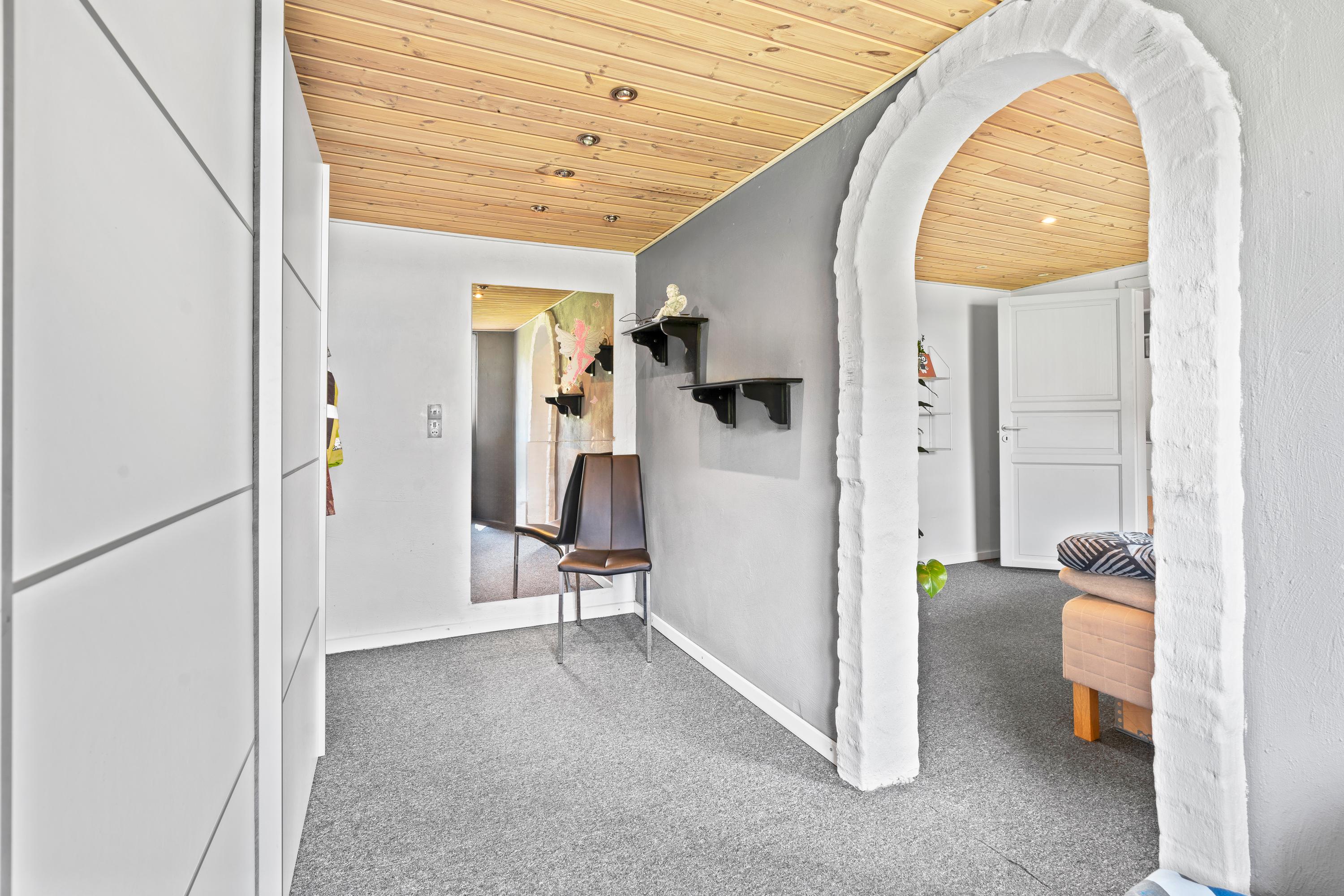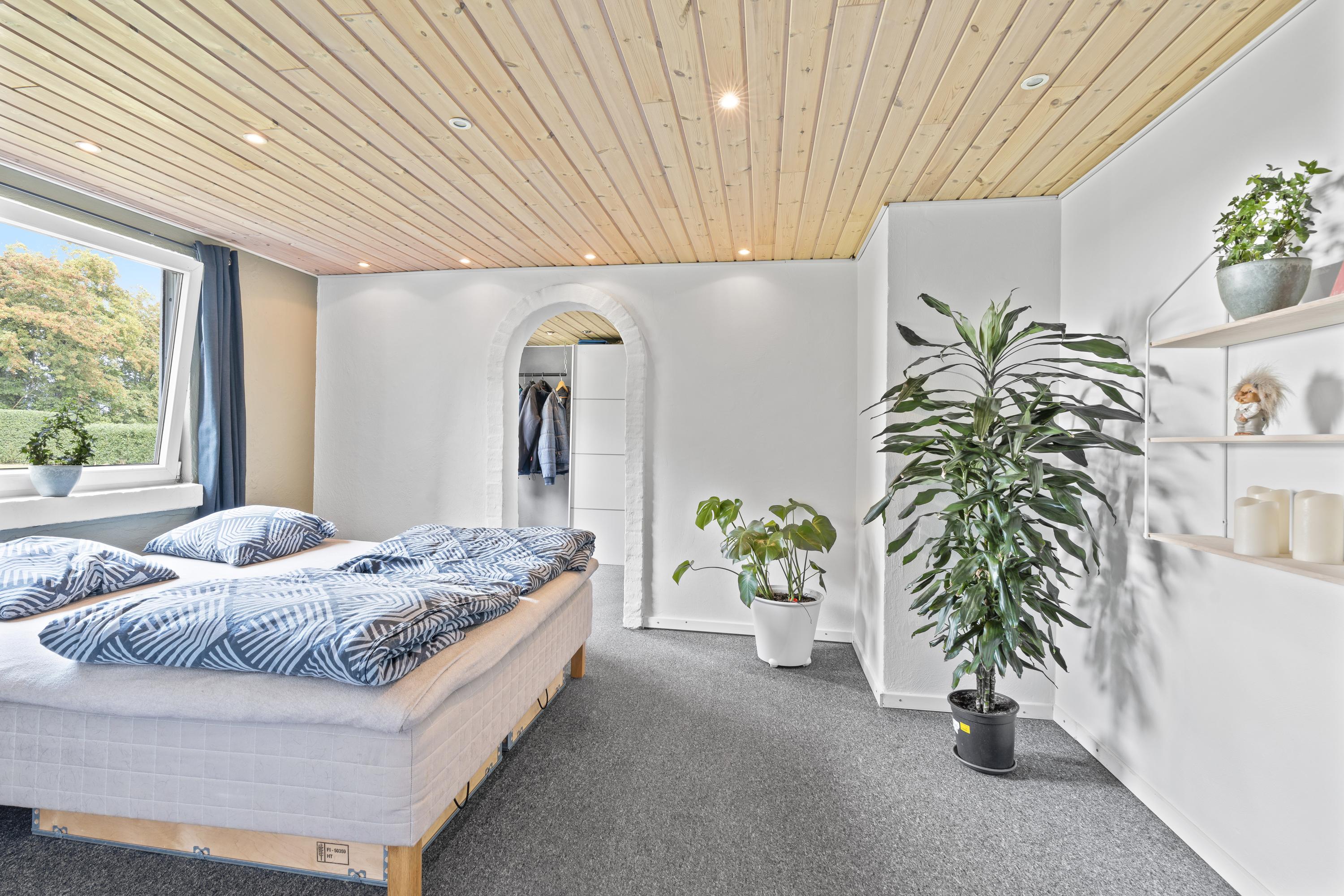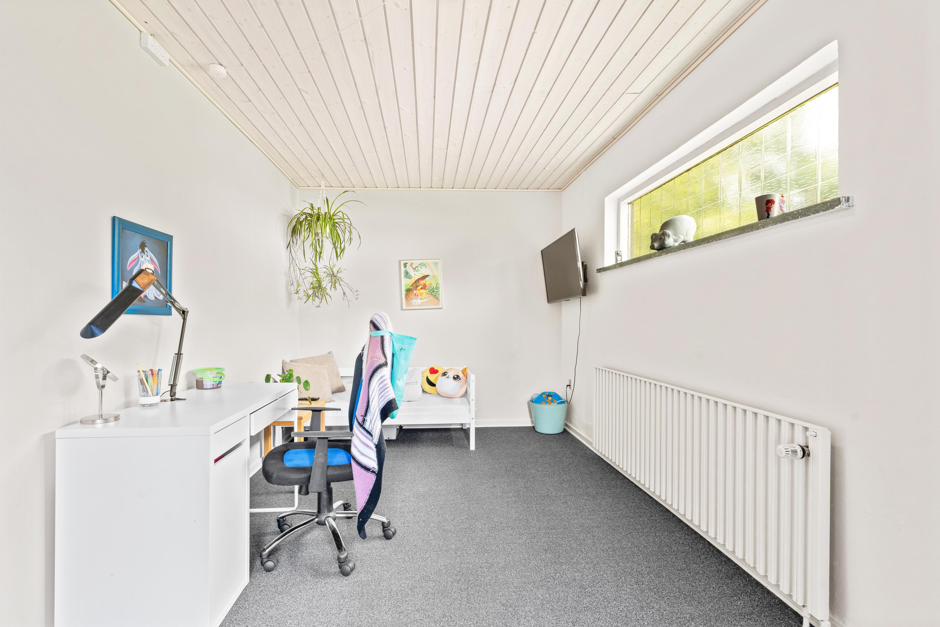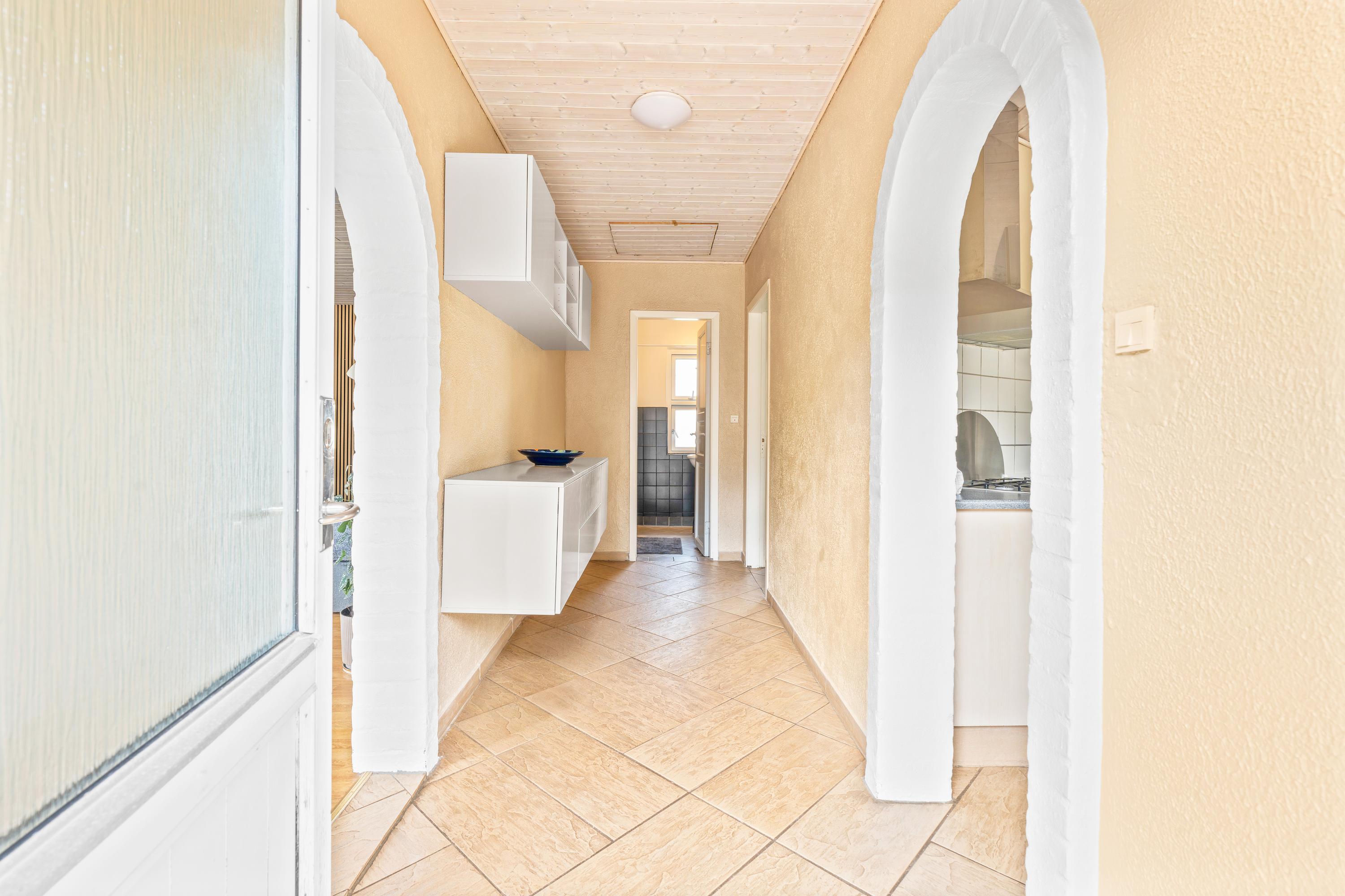 Villaen rummer 105 m2 fordelt på 3 værelser, et badeværelse, et lyst køkken med god plads til madlavning og en hyggelig stue, hvor brændeovnen spreder varme og stemning. Planløsningen er
