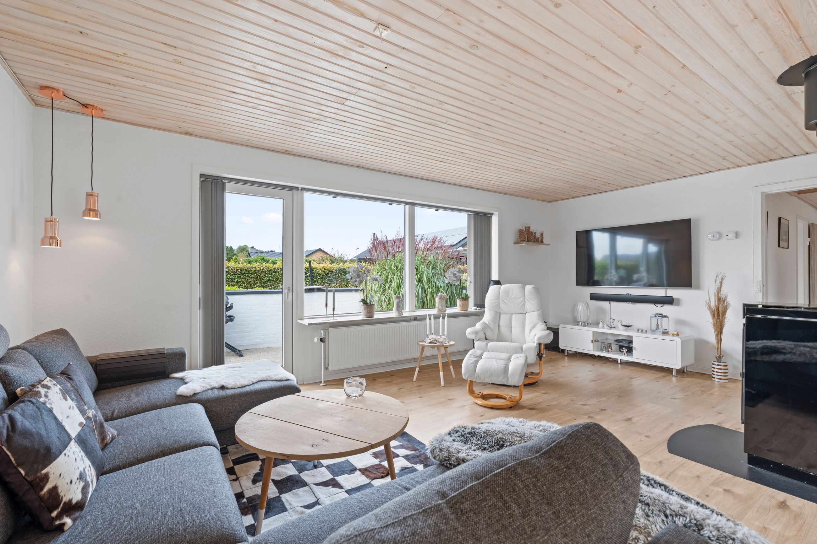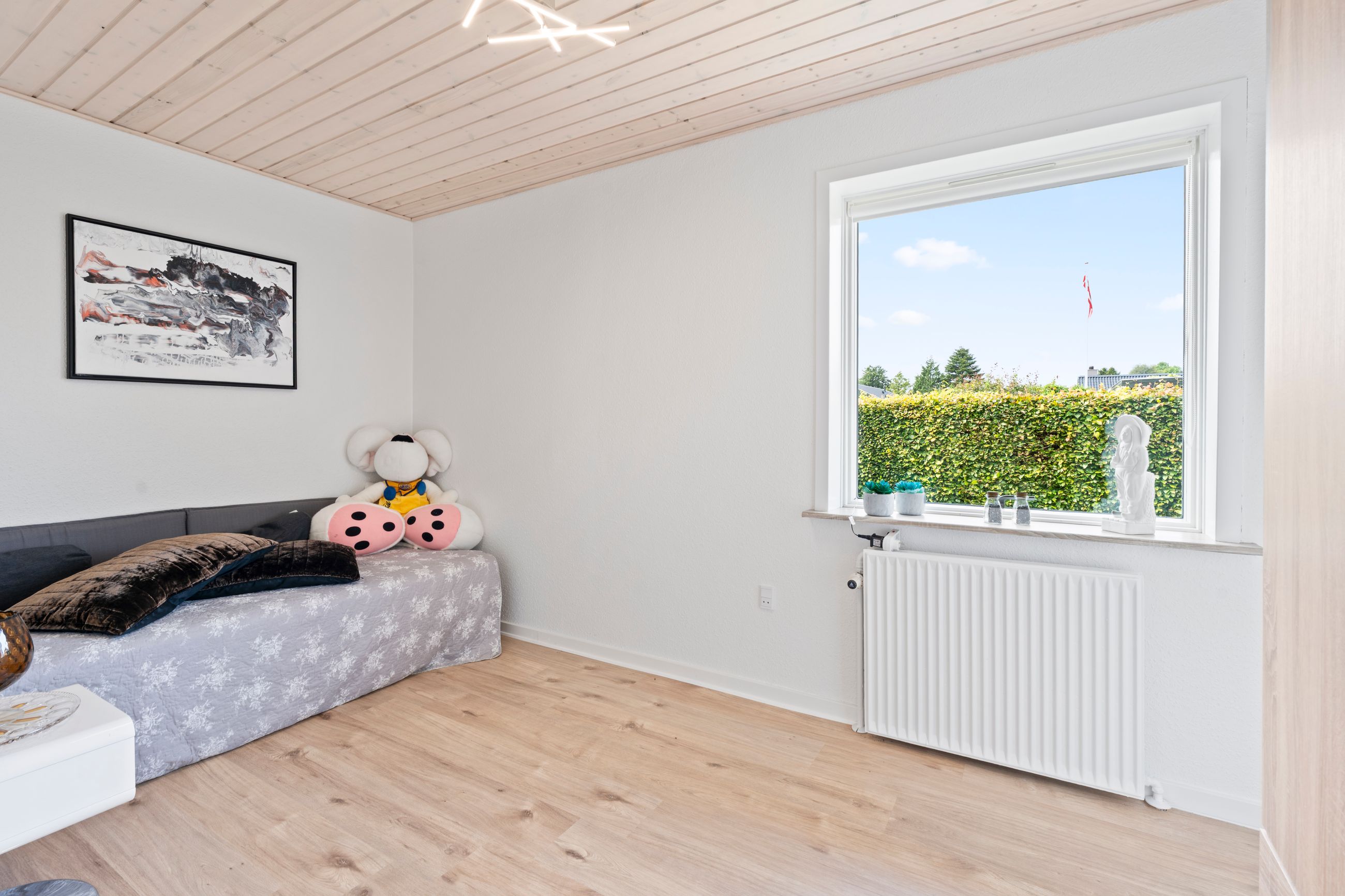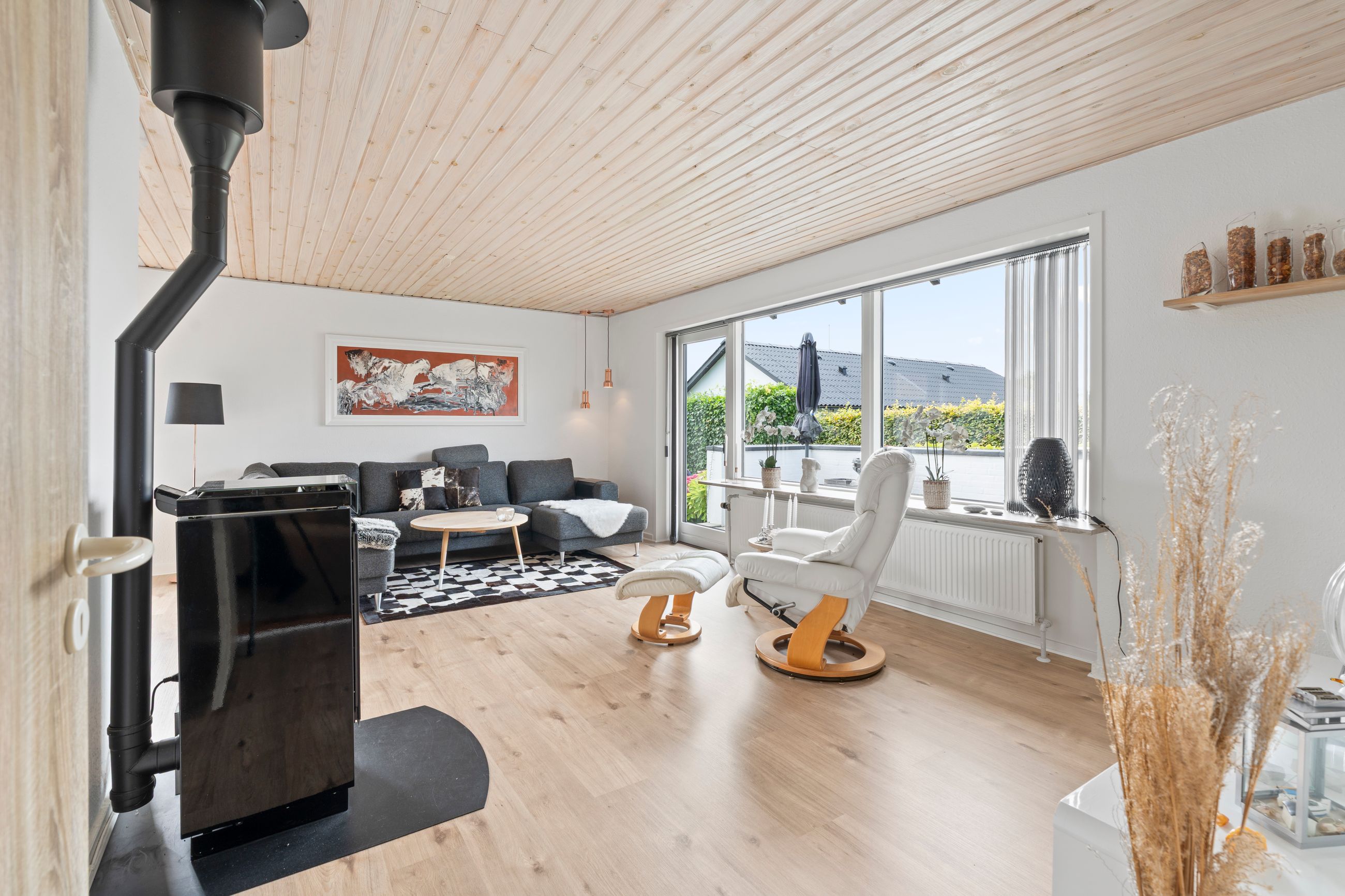 Planløsningen er veludnyttet med tre gode værelser, et funktionelt køkken og en stor, lys stue med skønt lysindfald. Her er også en nyere brændeovn, der giver varme og hygge på kølige dage. Fra stuen er der udgang til en lille, hyggelig udestue, som giver ekstra plads til hverdagens ophold.