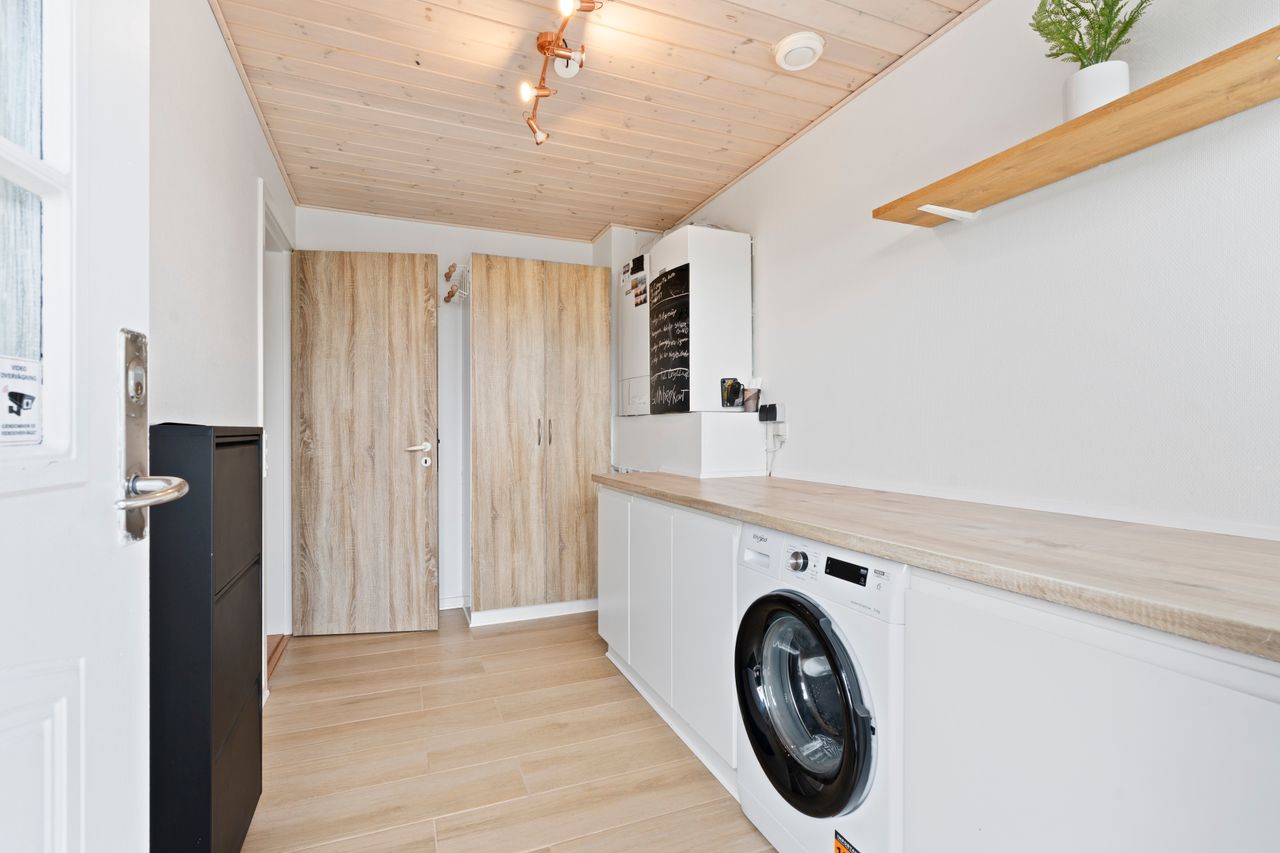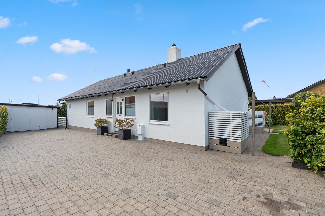 Udenfor finder du en dejlig grund med plads til både leg og afslapning. Til ejendommen hører desuden en stor, lukket garage med mange anvendelsesmuligheder – uanset om du har brug for plads til bilen, værksted eller hobbyprojekter. Som en ekstra bonus er her et fint anneks, der kan benyttes som gæsteafdeling, hjemmekontor eller til opbevaring.