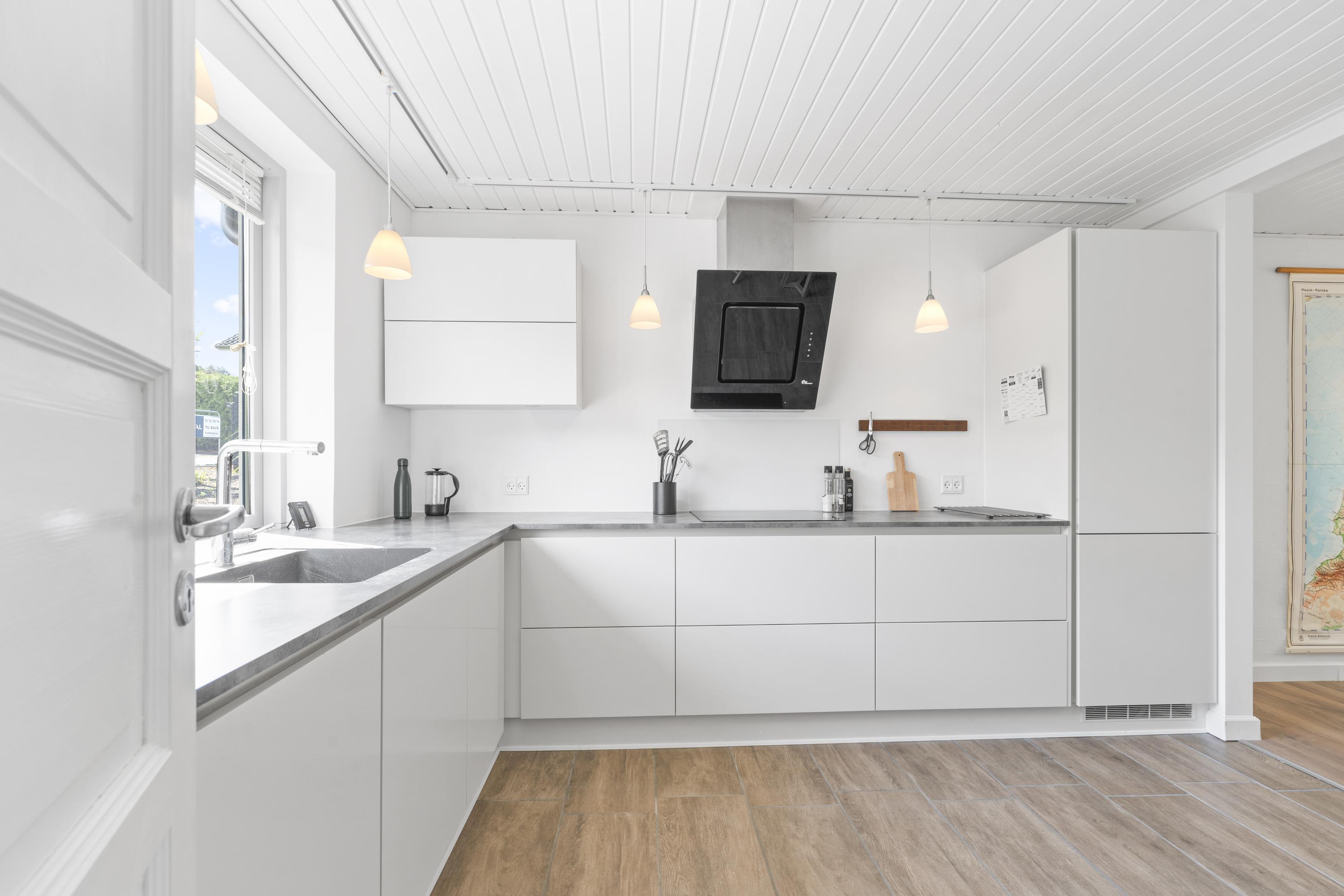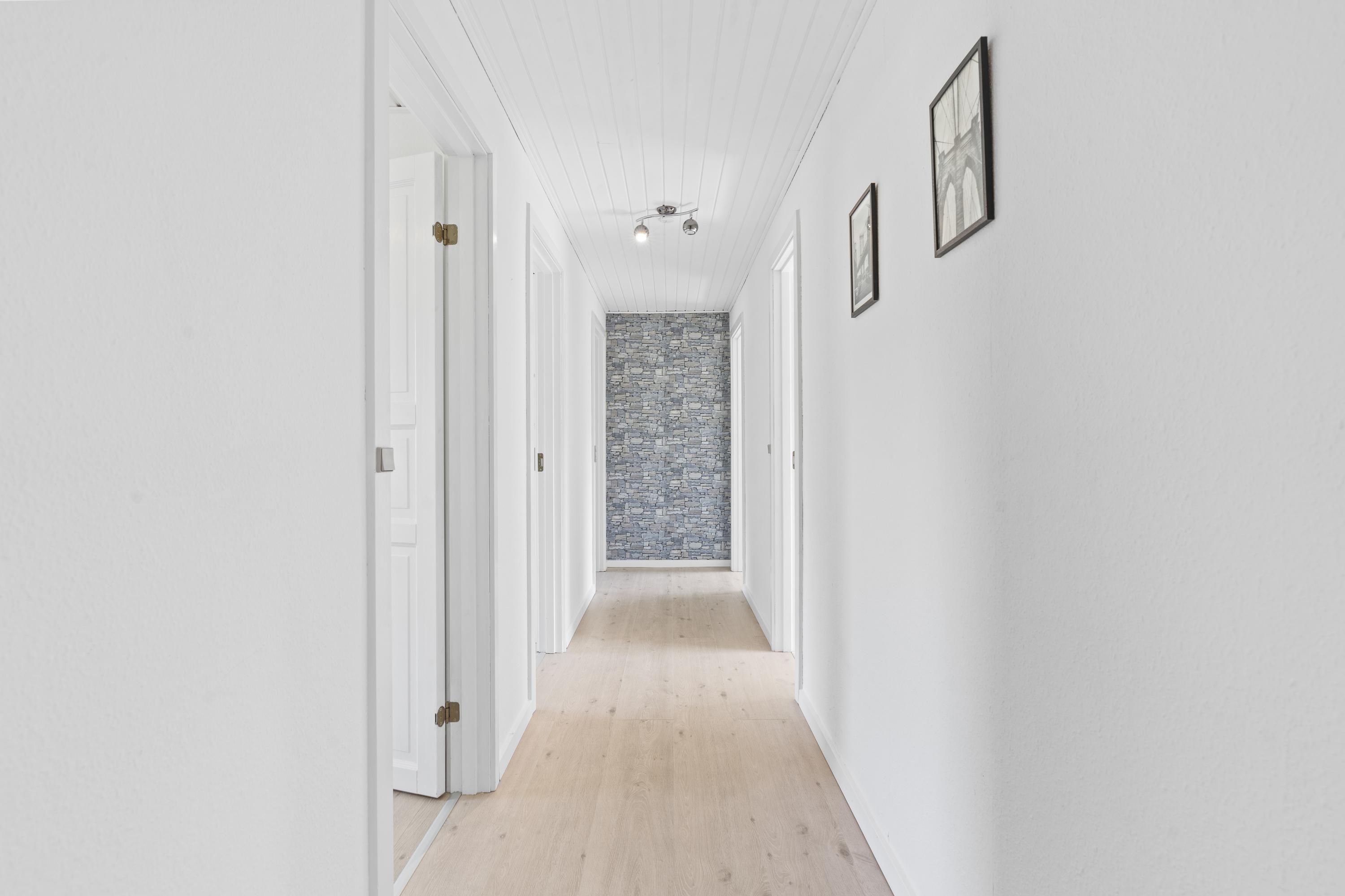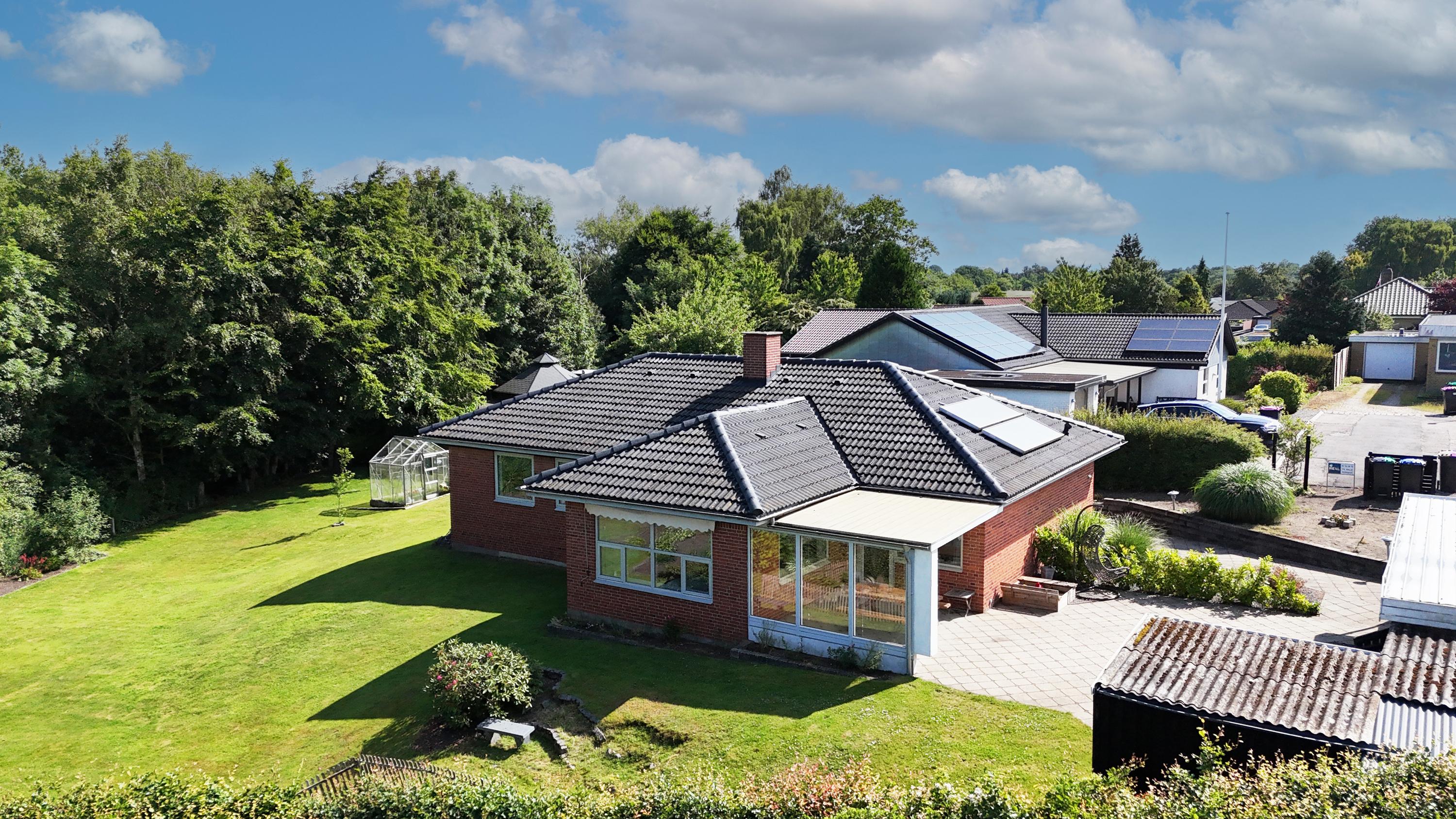Boligjagten går til et fredeligt, lukket vænge i Haderslev, hvor denne velholdte bolig nu udbydes til salg. Her får I en moderniseret og energiforbedret bolig med mange gode løsninger både ude og inde. Huset er løbende opdateret med bl.a. efterisolering, nye gulve med gulvvarme samt en åben og