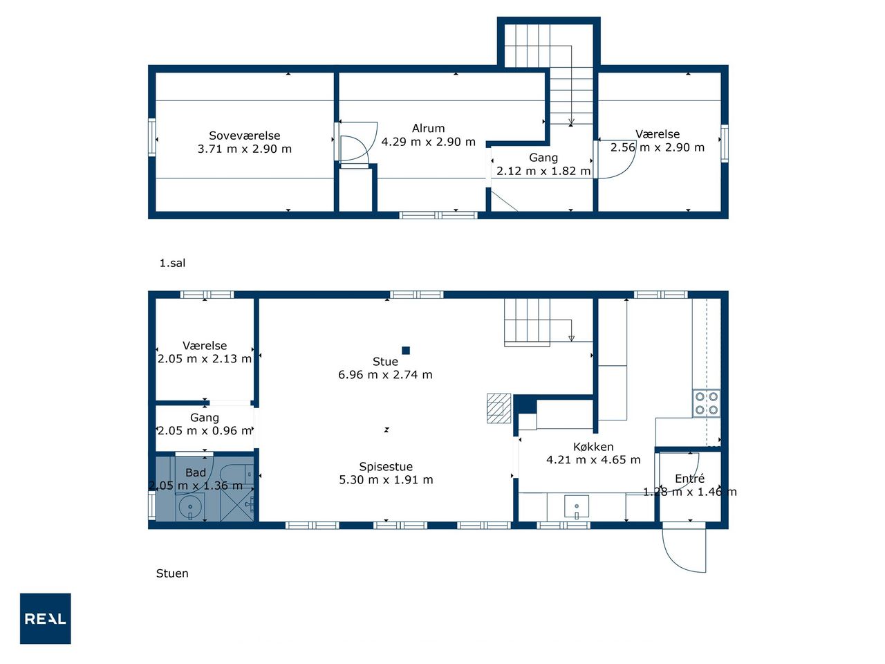 på 102 kvadratmeter boligareal fordelt på to etager.