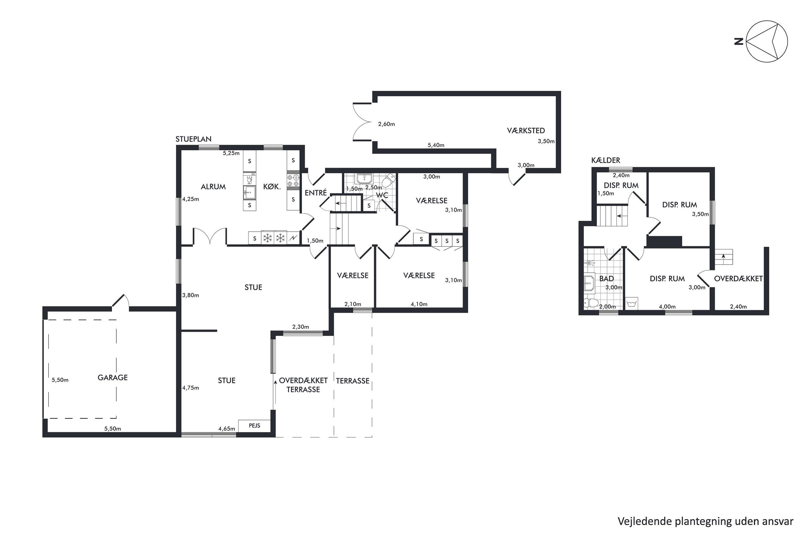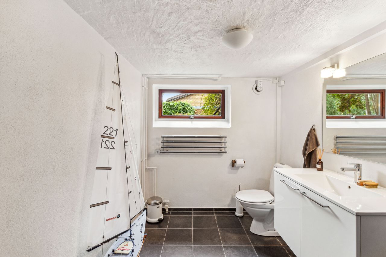 Kælderen på 40 kvadratmeter er en sand bonus og byder på to store disponible rum, der kan benyttes til hobby, opbevaring eller noget helt tredje. Derudover rummer kælderen et badeværelse samt et mindre disponibelt rum, hvilket gør den særdeles anvendelig. Kælderen fremstår i rigtig fin stand og bidrager til husets mange anvendelsesmuligheder.