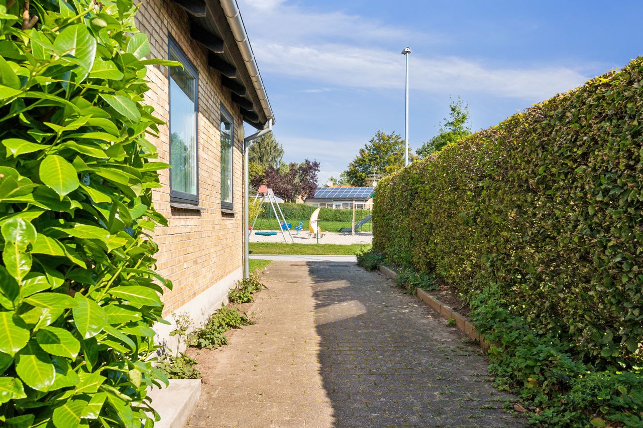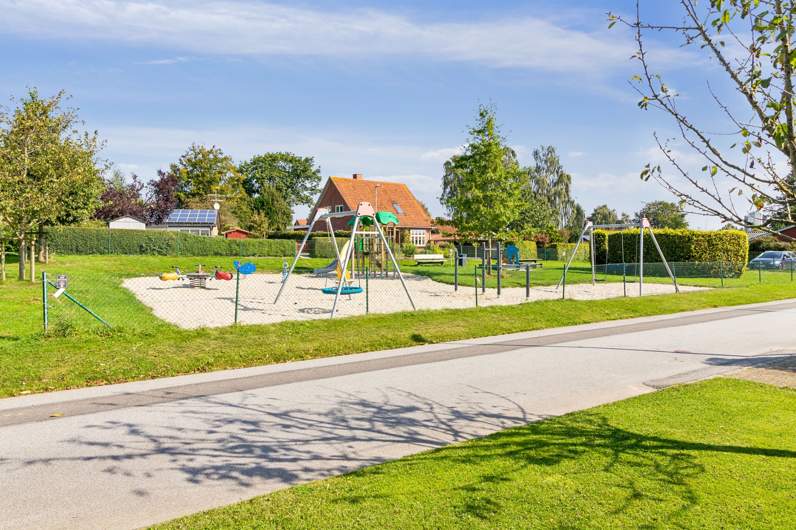 Grunden er på 833 kvadratmeter og kombinerer det bedste fra byen og naturen. Selvom man befinder sig tæt på byens faciliteter, opleves haven som en privat oase med frodige grønne omgivelser og masser af plads til leg, afslapning og udeliv. Området er særdeles børnevenligt med kort afstand til både skoler, daginstitutioner og naturskønne områder, som Bøgehoved Skov og golfbanen, hvor hele familien kan nyde en aktiv hverdag tæt på naturen.