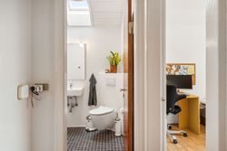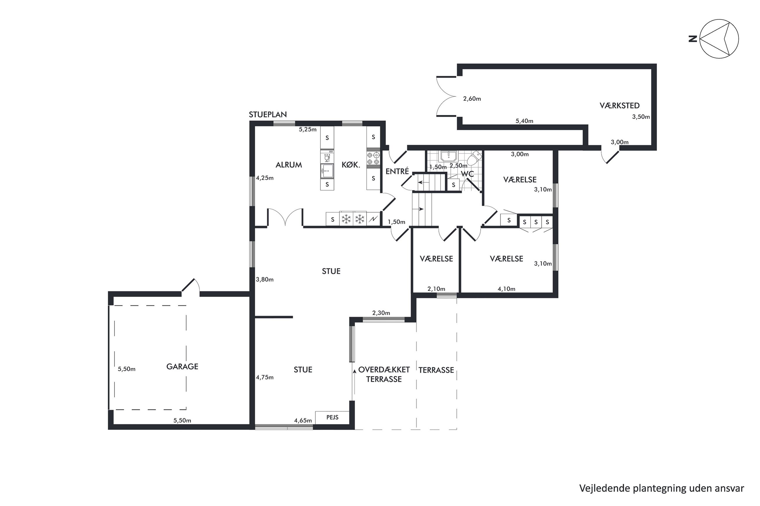 Stueplanen byder derudover på tre fine værelser, der alle har en god størrelse og mange anvendelsesmuligheder. Et gæstetoilet findes også her, og der er mulighed for at genetablere et badeværelse, hvis behovet opstår.