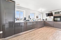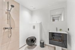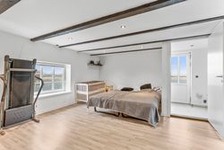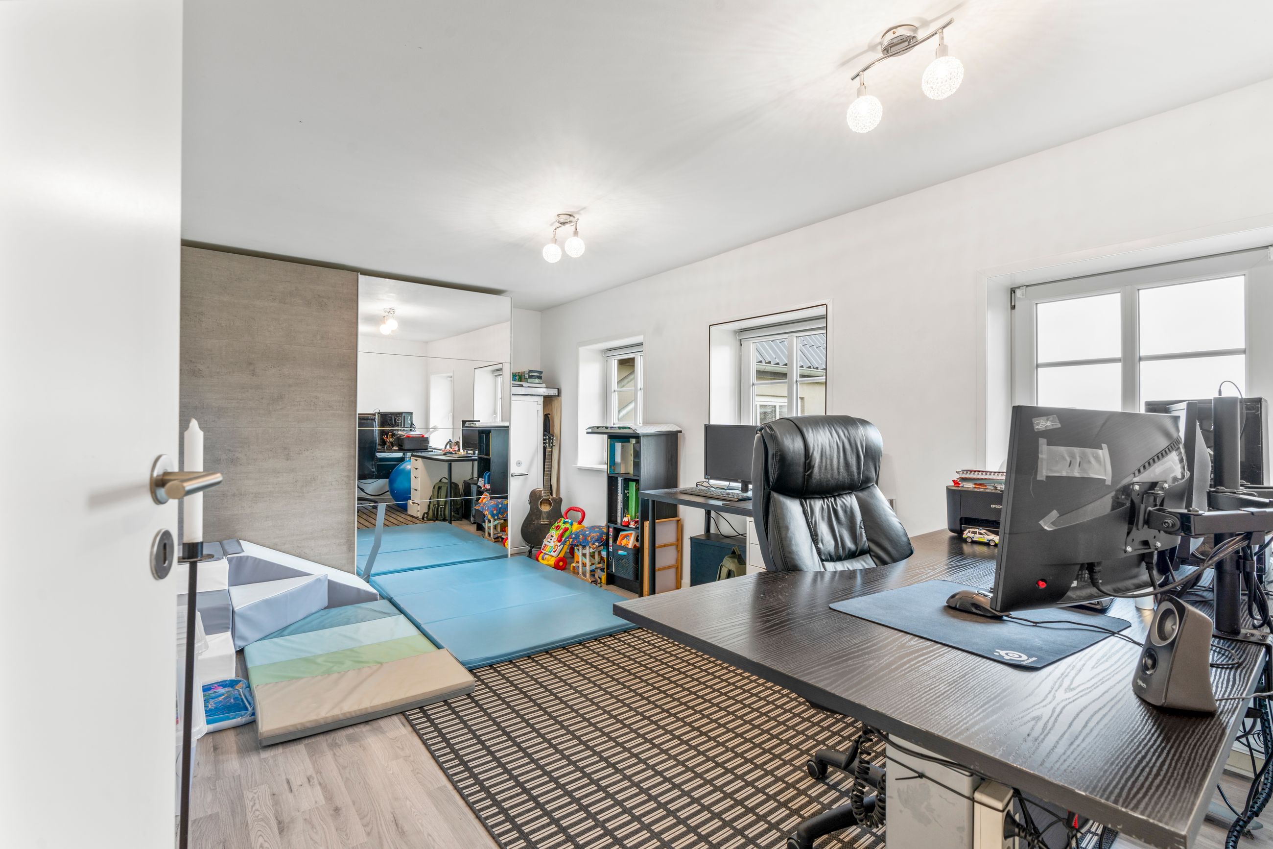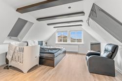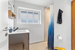 Stueetagen byder desuden på en imponerende forældre- eller teenageafdeling med eget badeværelse ensuite, perfekt som privat fristed. Herudover finder du et praktisk og stort bryggers, der gør det nemt at håndtere hverdagens gøremål, samt et ekstra værelse og endnu et badeværelse, som tilsammen skaber en funktionel og gennemført indretning.