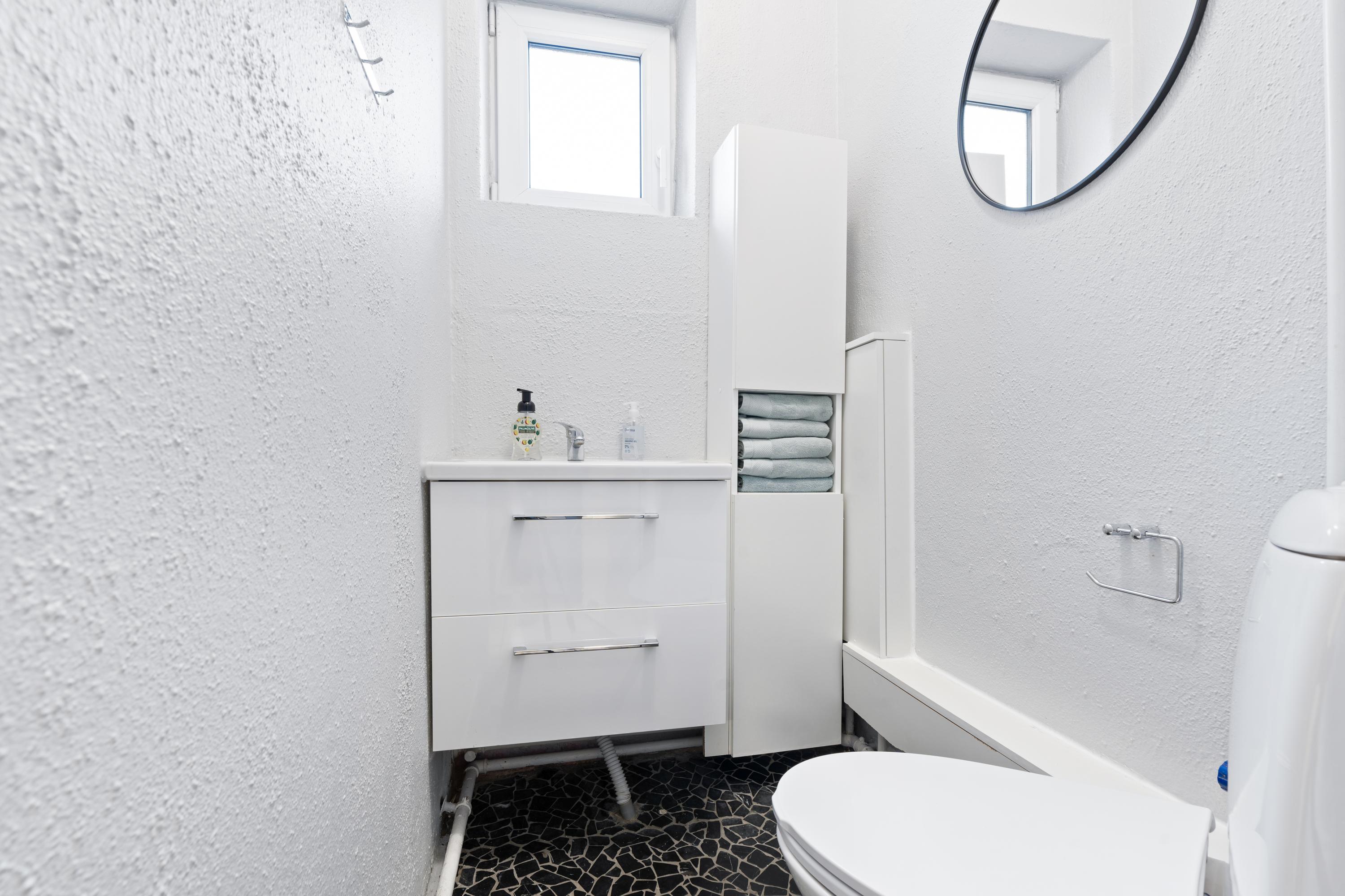 Ejendommen fra 1956 præsenterer sig som en charmerende og velholdt bolig, der løbende er blevet moderniseret med stor respekt for dens oprindelige kvaliteter. Blandt forbedringerne er både tag og vinduer blevet skiftet, hvilket sikrer en tidssvarende og energioptimeret bolig. Med sine 111