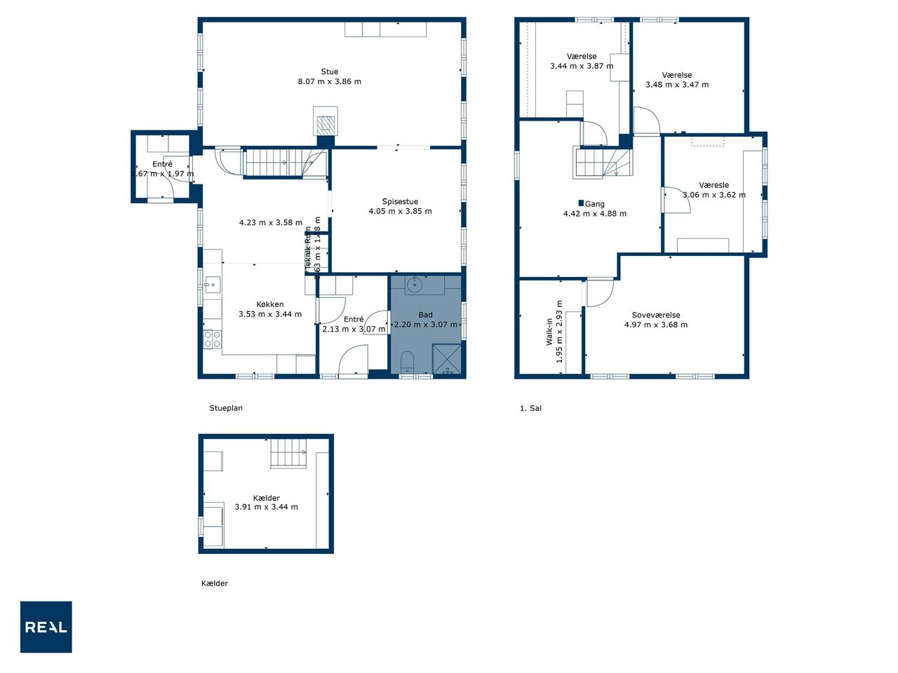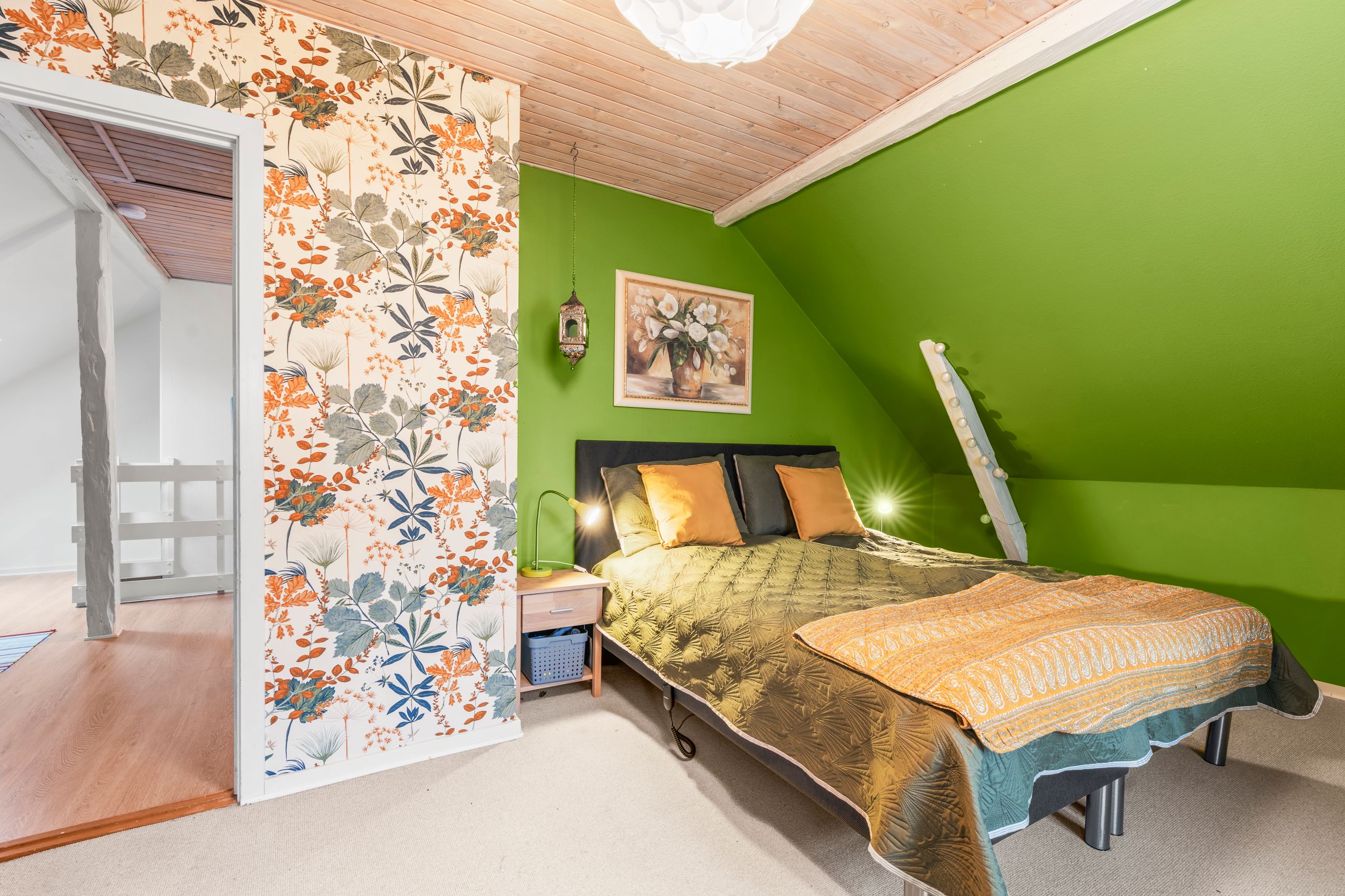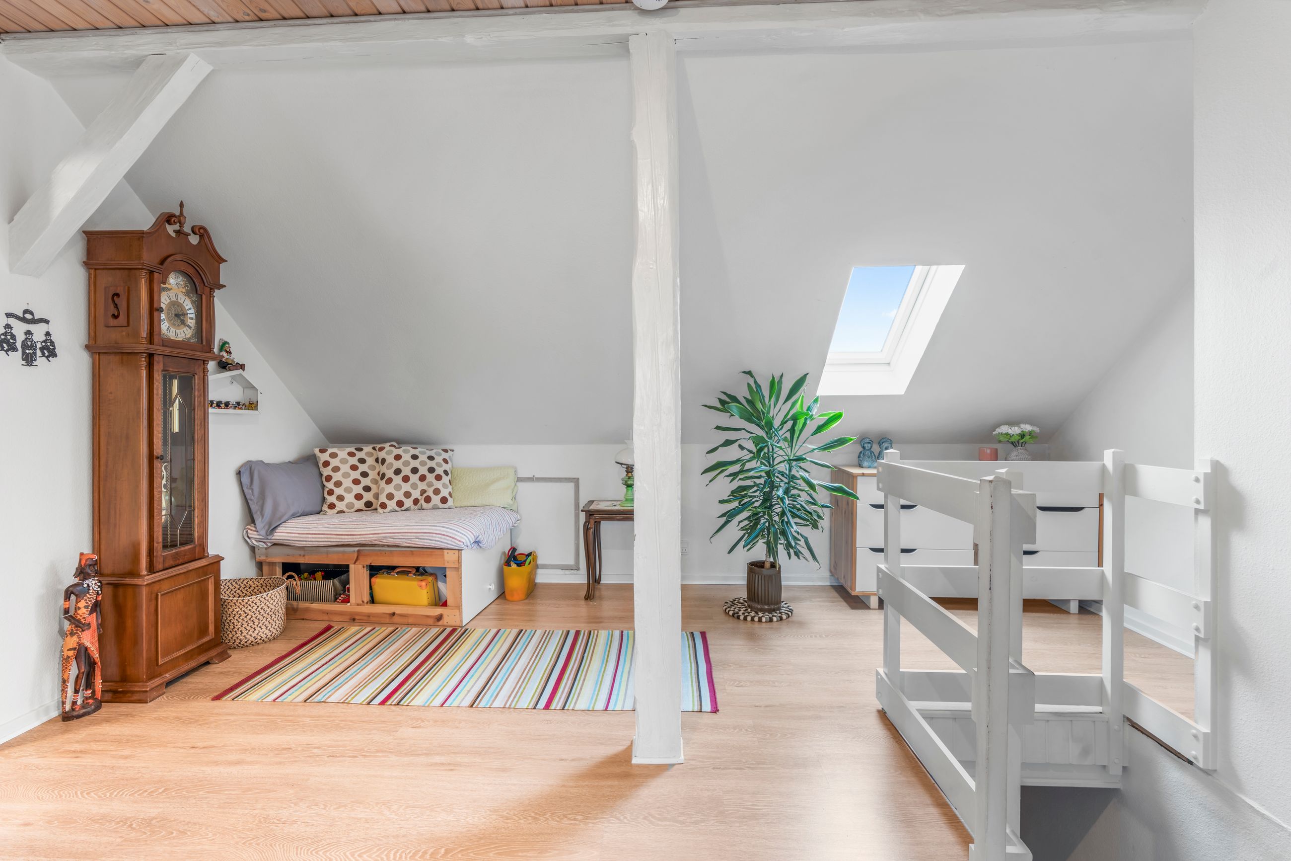 På førstesalen finder du en velindrettet værelsesafdeling med tre gode værelser og et stort soveværelse med tilhørende walk-in-closet. Førstesalen rummer også mulighed for at etablere et ekstra gæstetoilet, hvis dette ønskes.