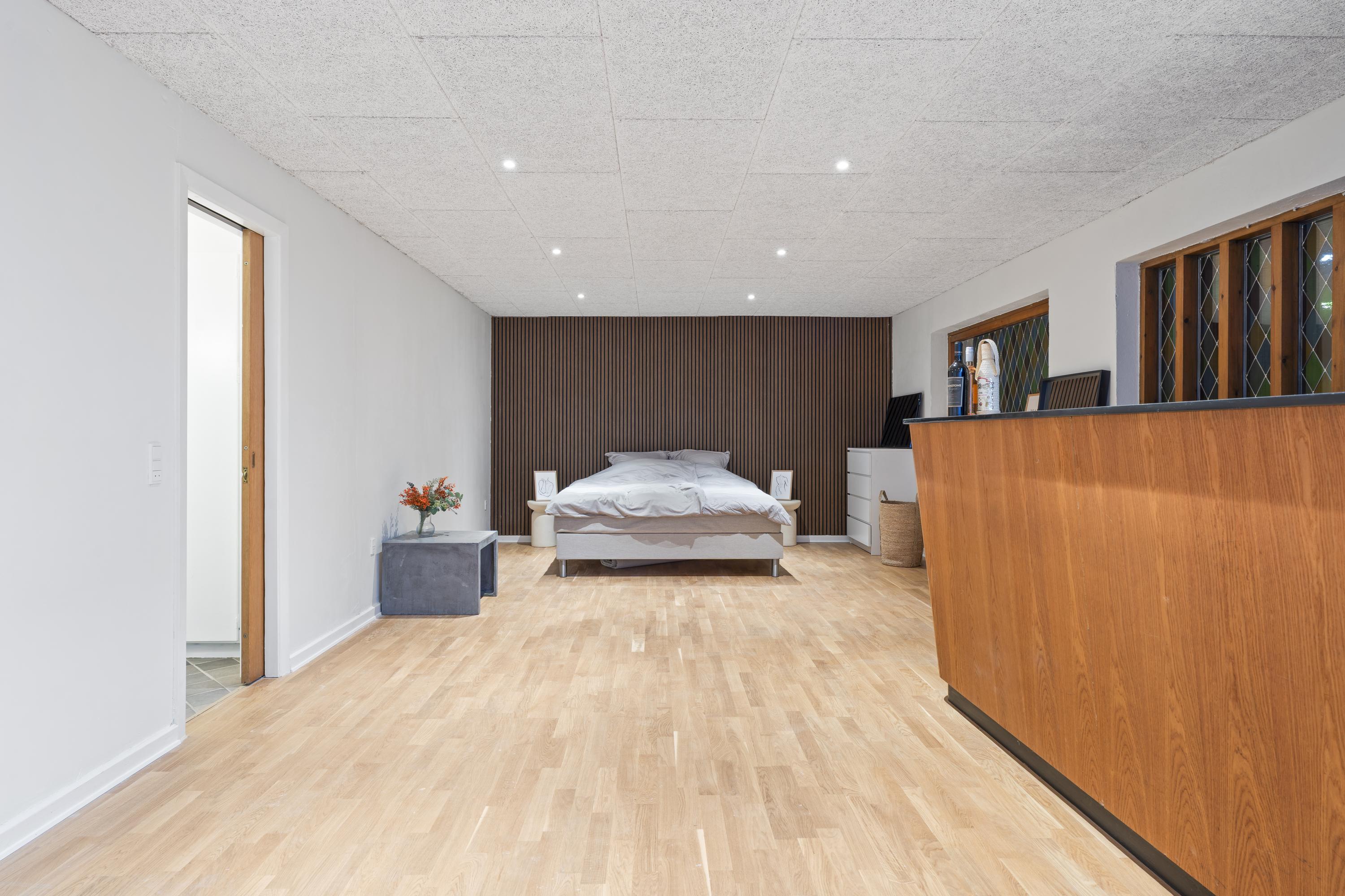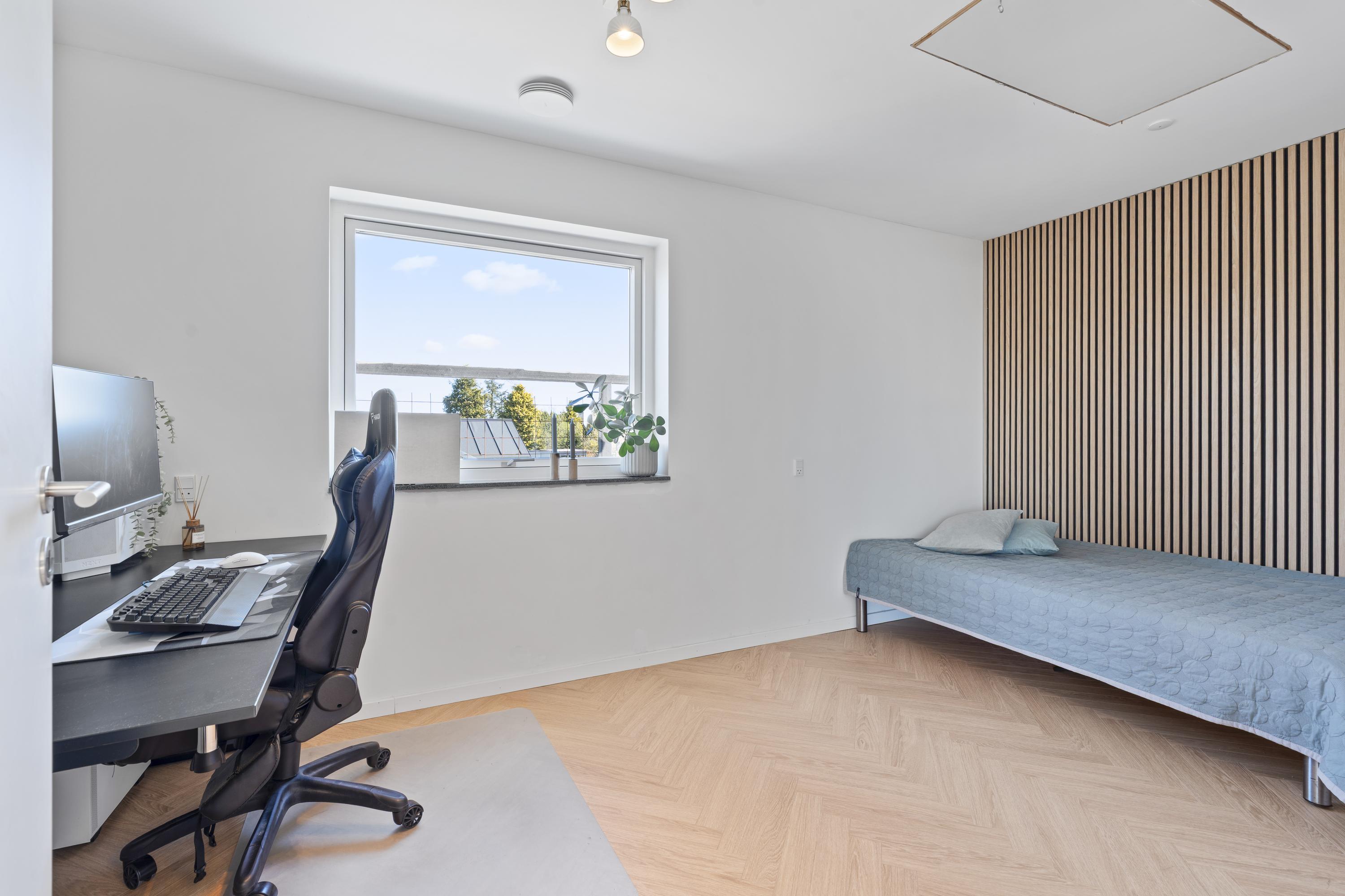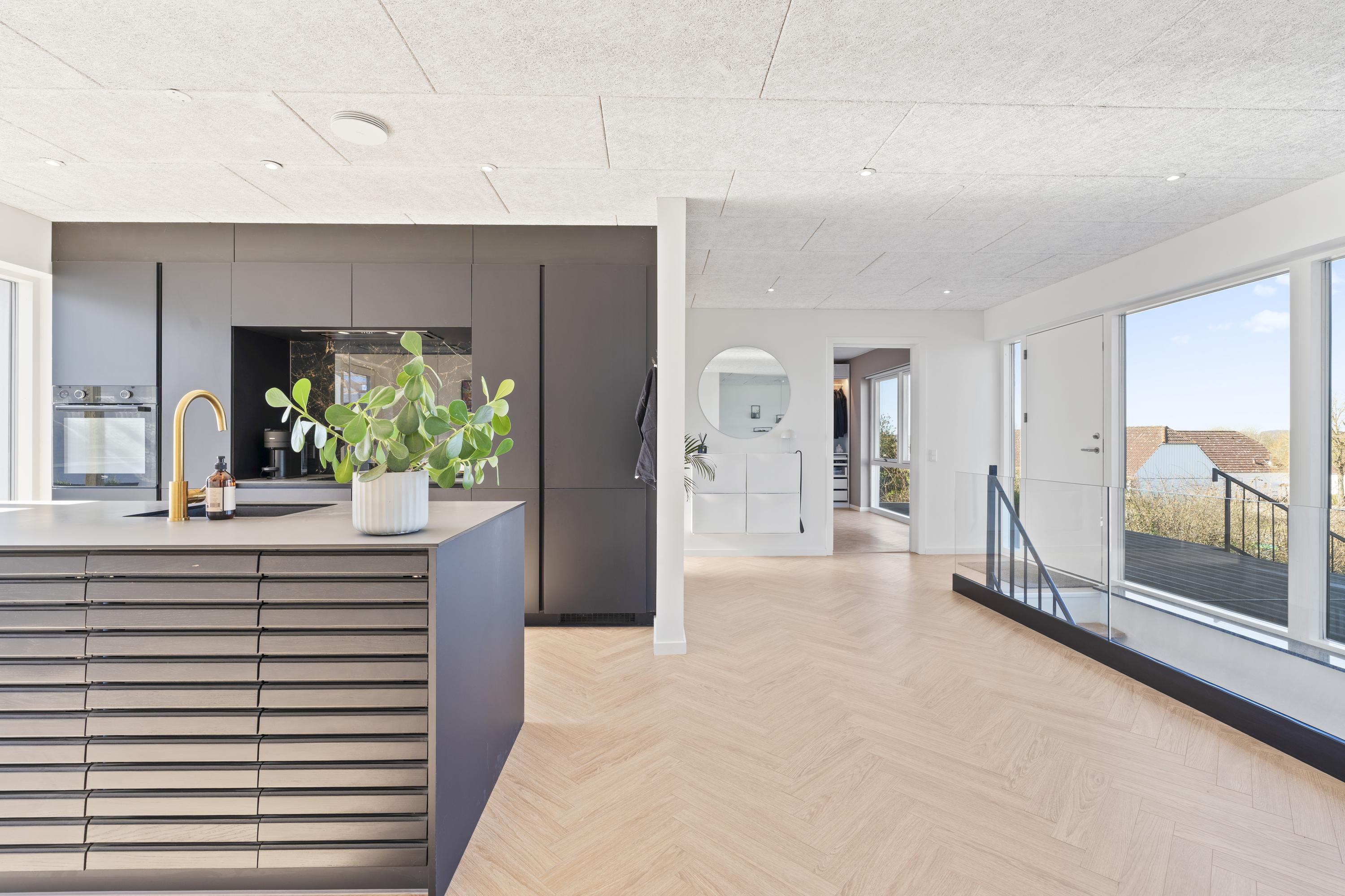 Velkommen til Erlevvej 71 en indflytningsklar villa i gennemført stil og med en beliggenhed, der sjældent udbydes. Her får du hele 134 kvadratmeter boligareal samt en kælder på yderligere 134 kvadratmeter heraf 40 kvadratmeter garage med plads til to biler og elektrisk port. Alt sammen placeret