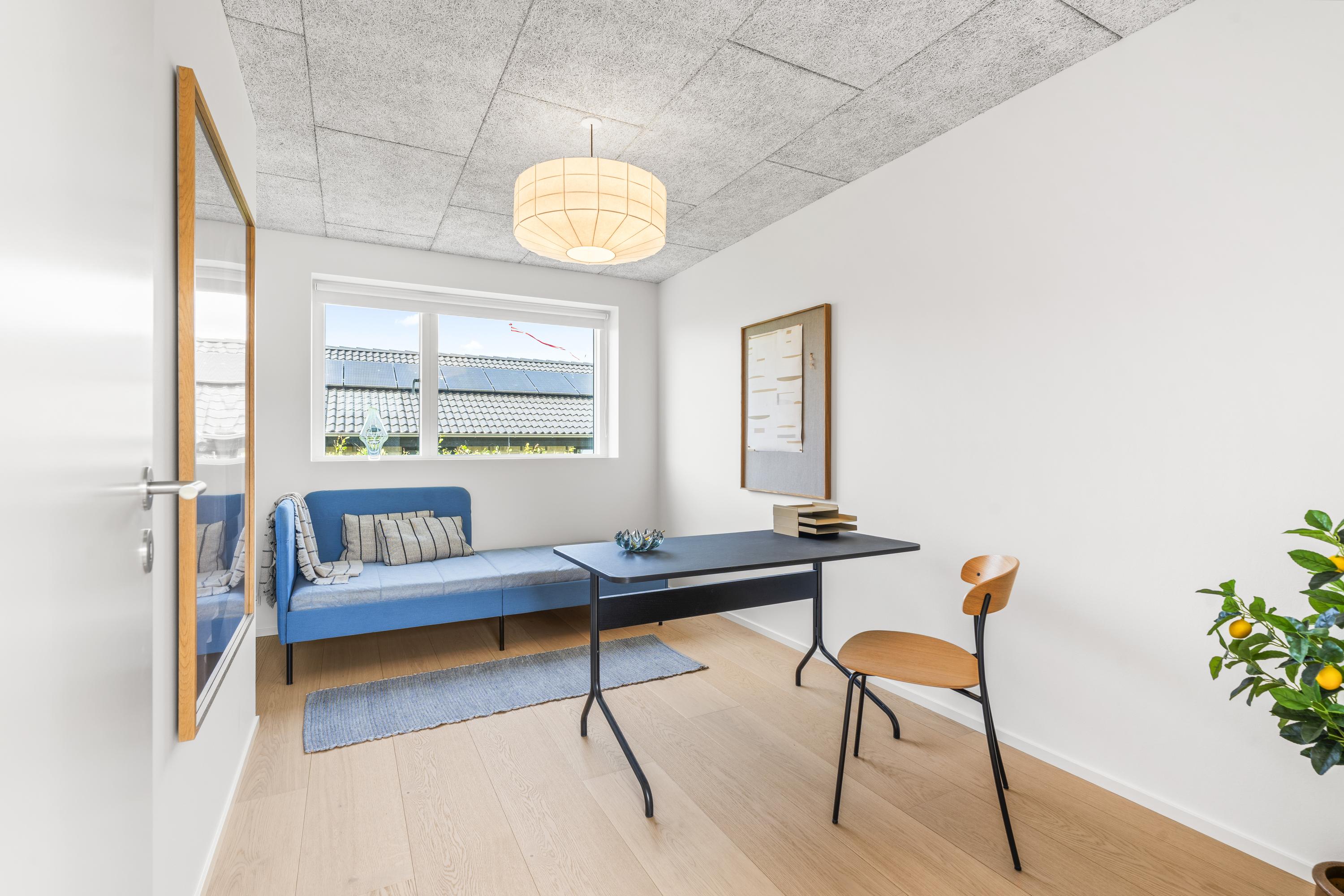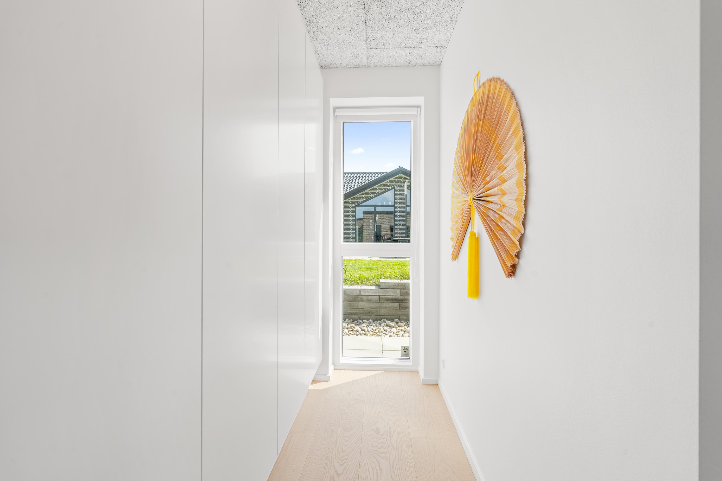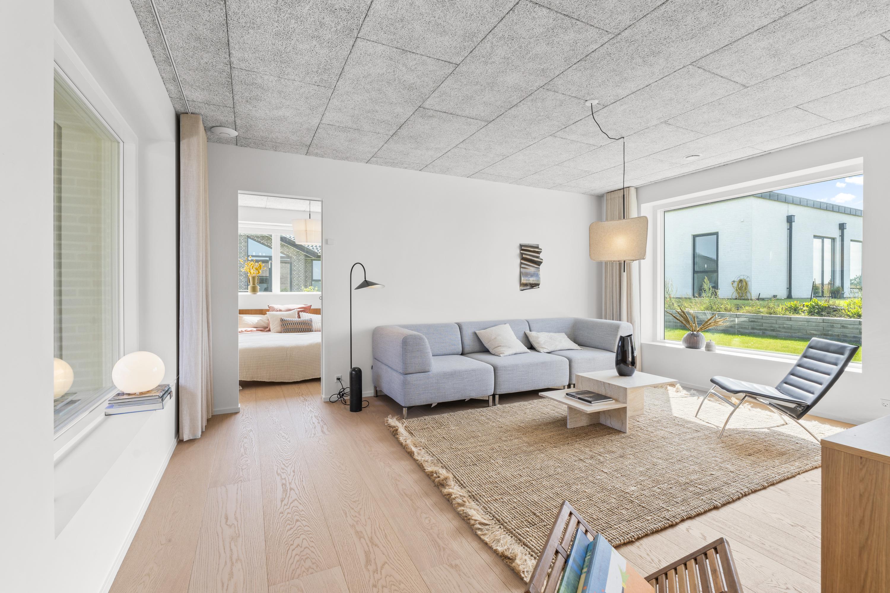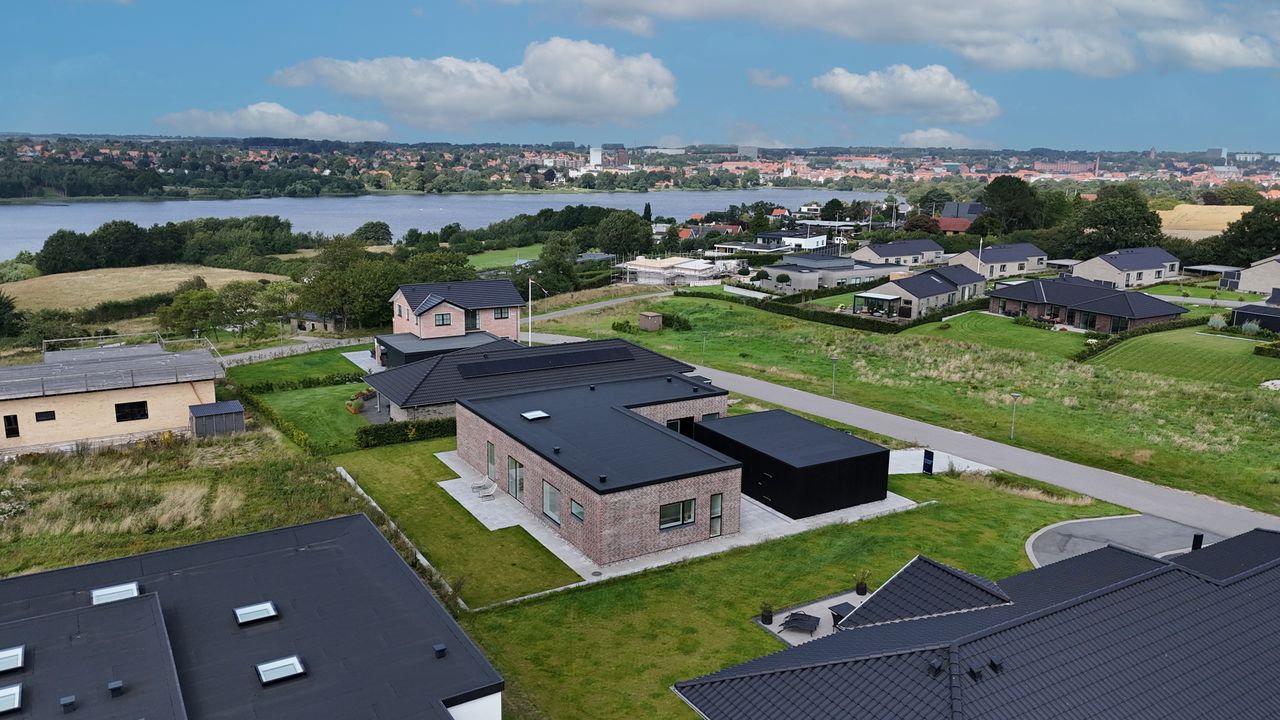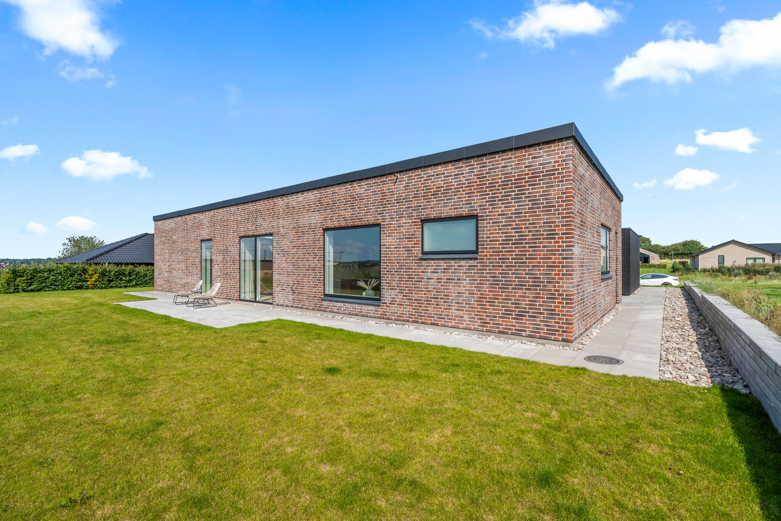 På Erlevhøj 35 finder du et eksklusivt funkishus på 176 m2 i ét plan – skabt til den kvalitetsbevidste familie, der ønsker både stil, funktionalitet og en unik beliggenhed. Her bor du højt med en smuk udsigt over Haderslev Dam, hvor naturen danner en fredfyldt ramme om hverdagen.