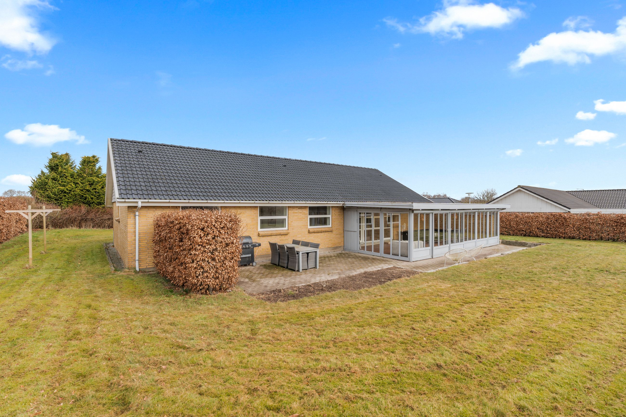 I et af Vojens’ mest eftertragtede kvarterer finder man denne skønne og indflytningsklare villa på 140 kvadratmeter, der byder på en gennemtænkt planløsning og en indbygget udestue på hele 34 kvadratmeter. Boligen er placeret på en 899 kvadratmeter stor, sydvendt grund med en dejlig terrasse, hvor privatlivet er i højsædet. Her kan man nyde solrige dage i helt ugenerede omgivelser i et dejligt, stille og roligt område.