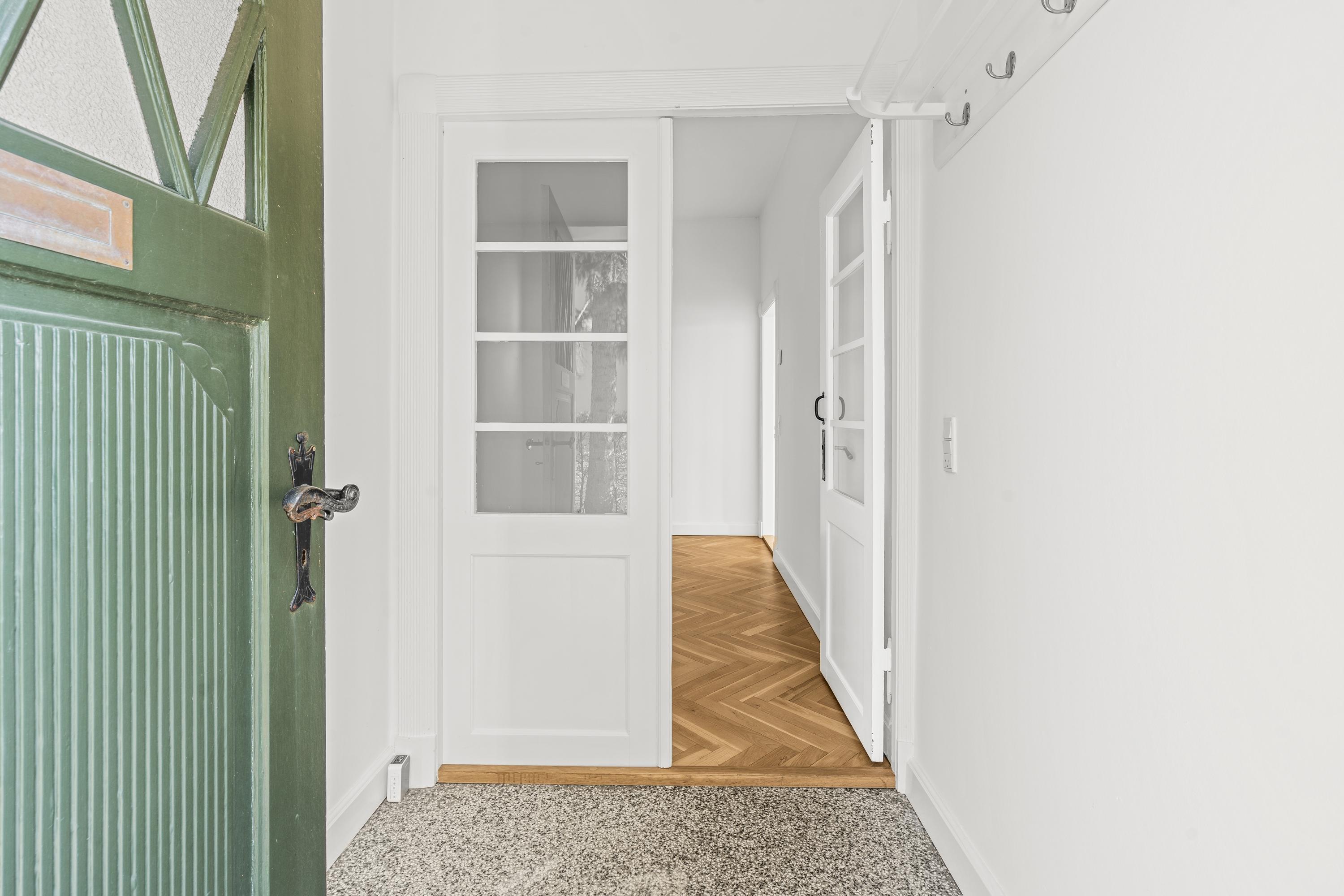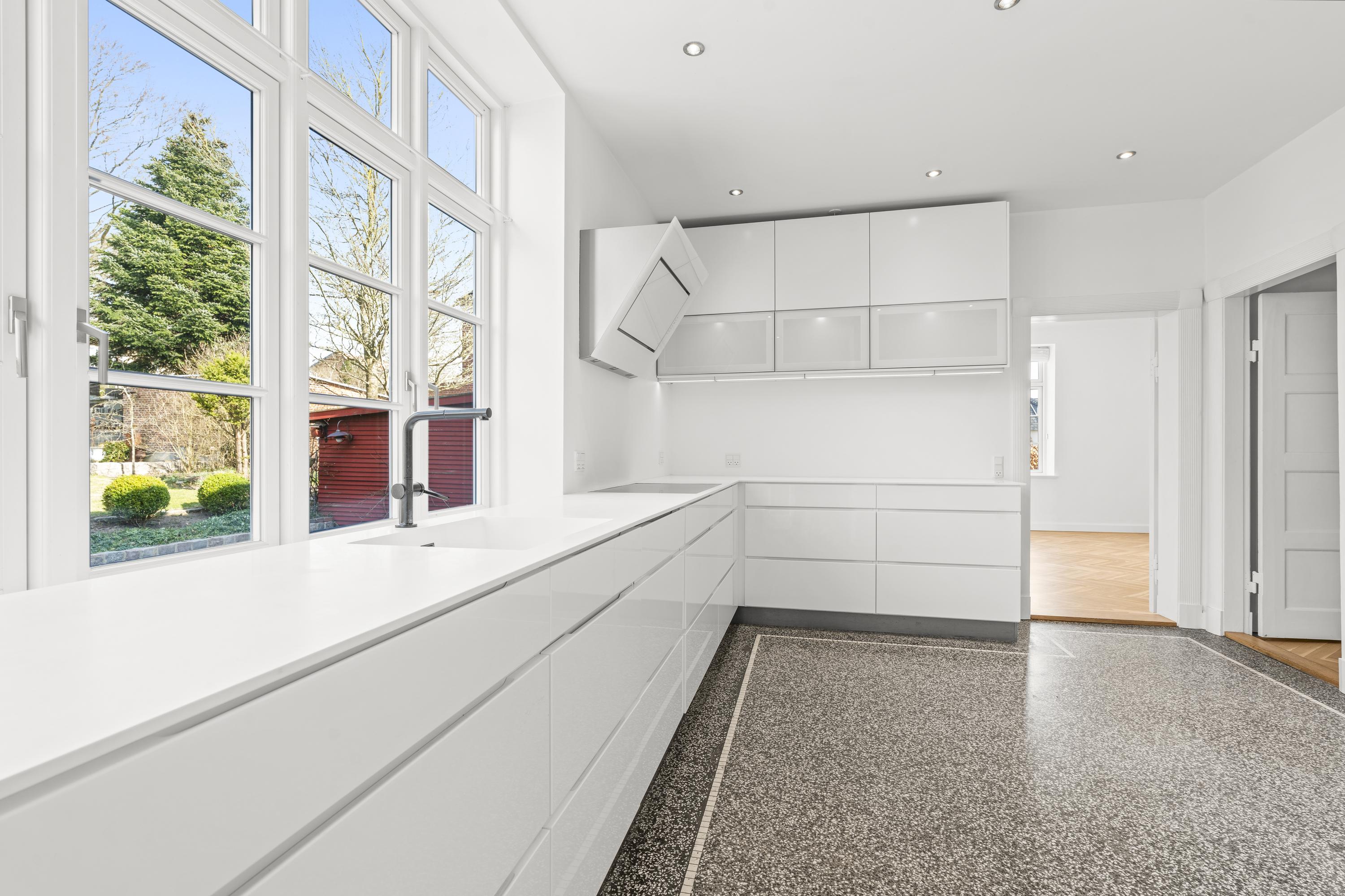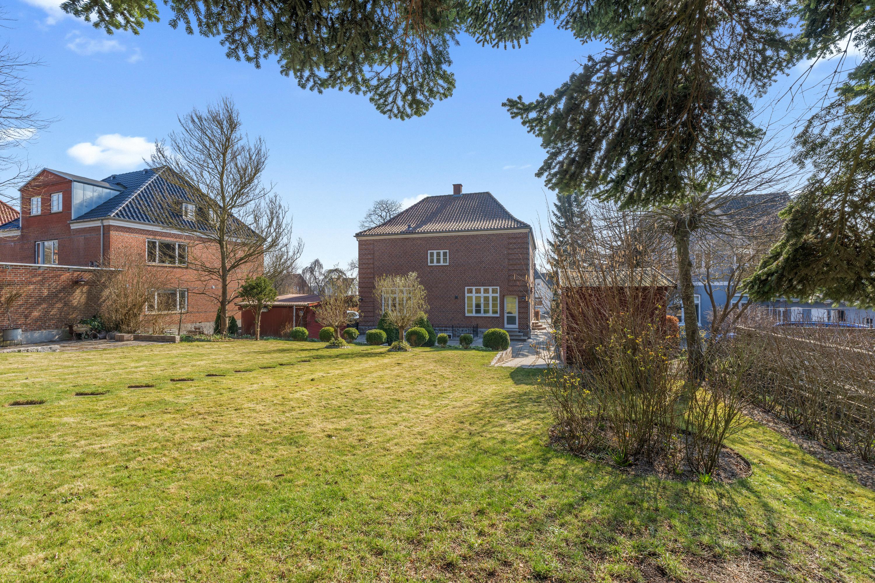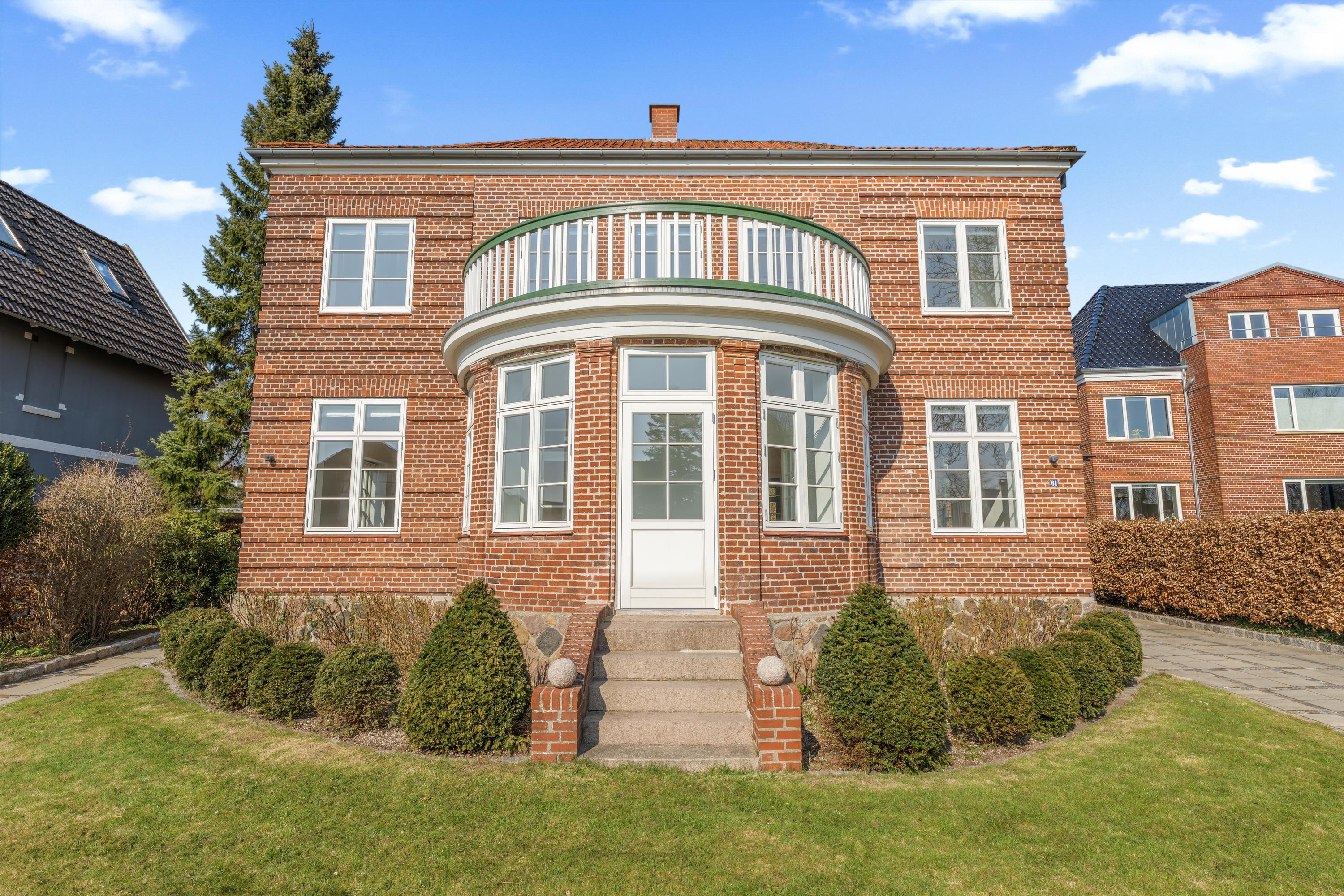 Velkommen til en sjælden perle midt i Haderslev en herskabelig villa tegnet af den anerkendte arkitekt Albin Walther og opført i 1913. Her forenes slesvigsk hjemstavnsstil med palæets majestætiske udtryk i en