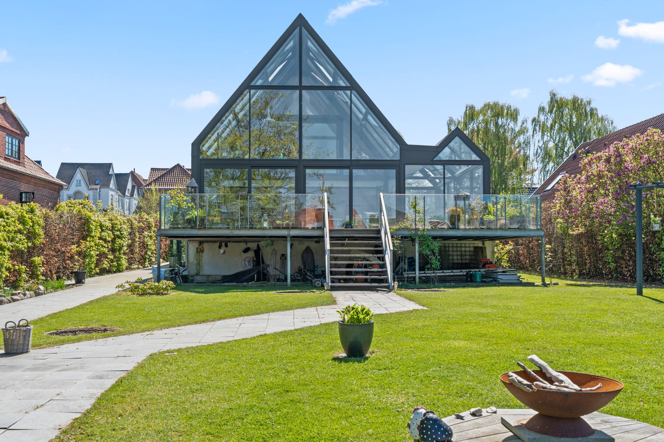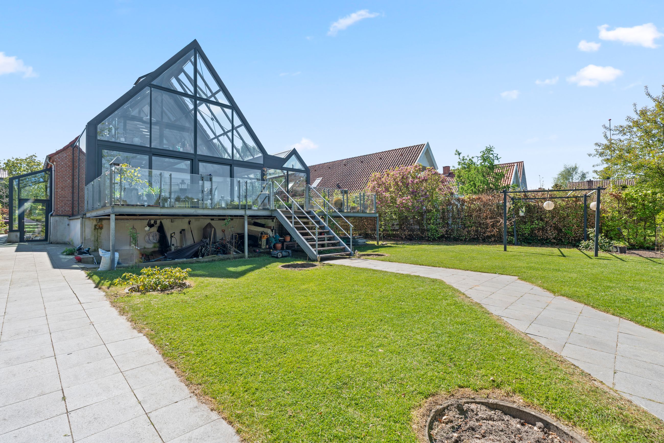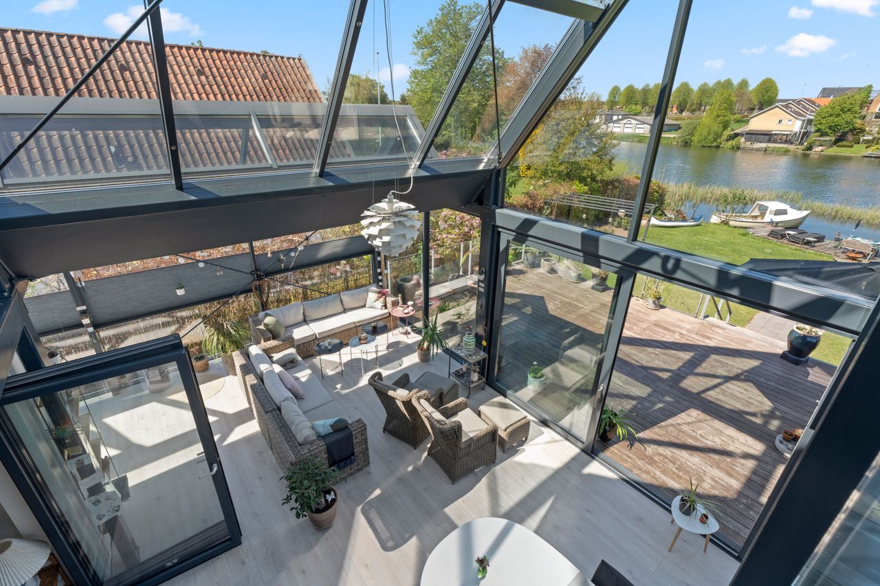 Den oprindelige ejendom fra 1950 er i 2015 blevet udvidet med en imponerende glas-tilbygning på 82 m2, hvilket bringer boligarealet op på hele 211 m2 samt en særdeles anvendelig kælder på 82 m2. Tilbygningen i glas skaber en spektakulær kontrast til den oprindelige byggestil og binder natur og arkitektur sammen på smukkeste vis. Her oplever man en bolig, der i den grad overrasker og imponerer – både inde og ude.