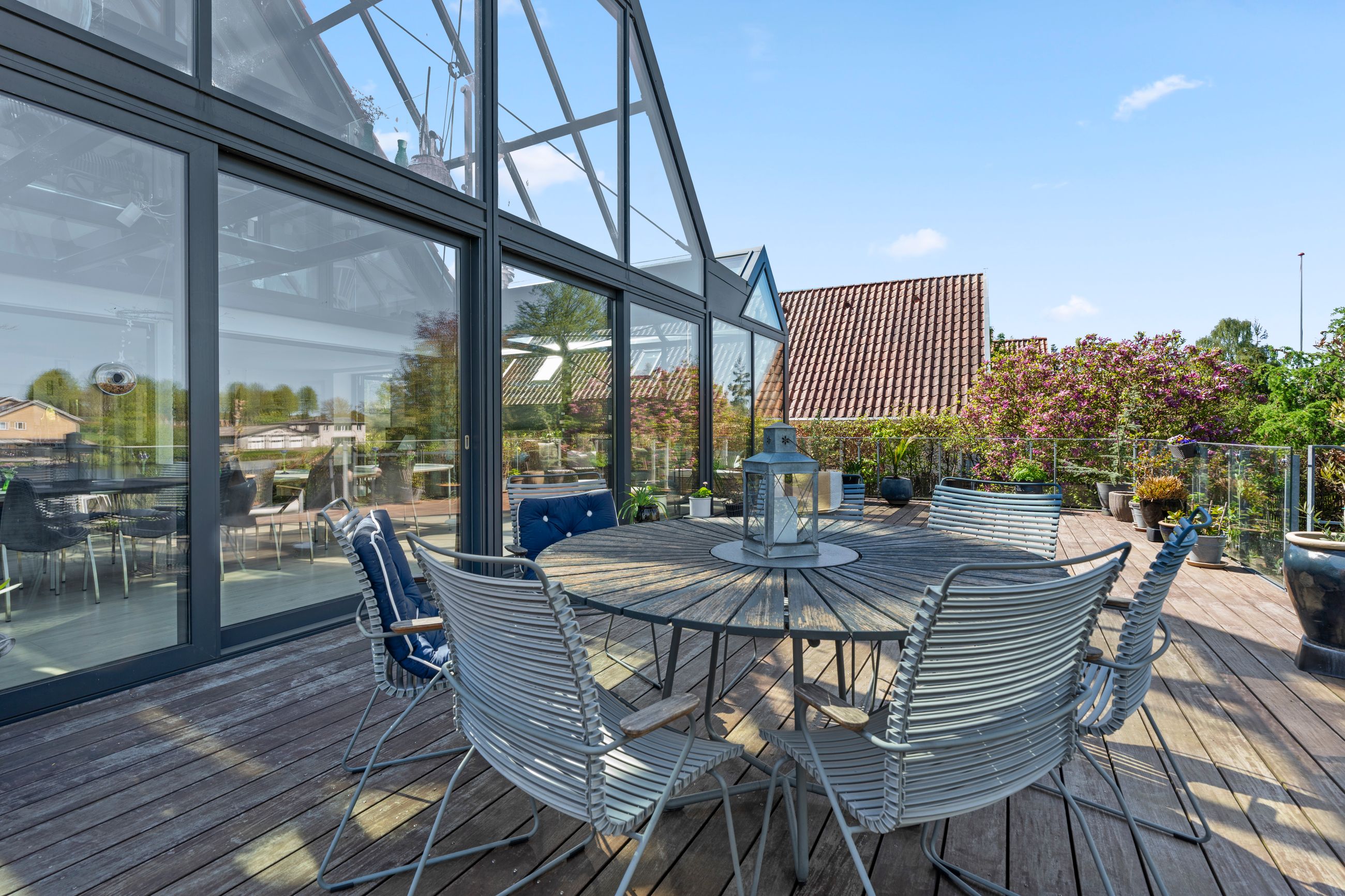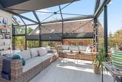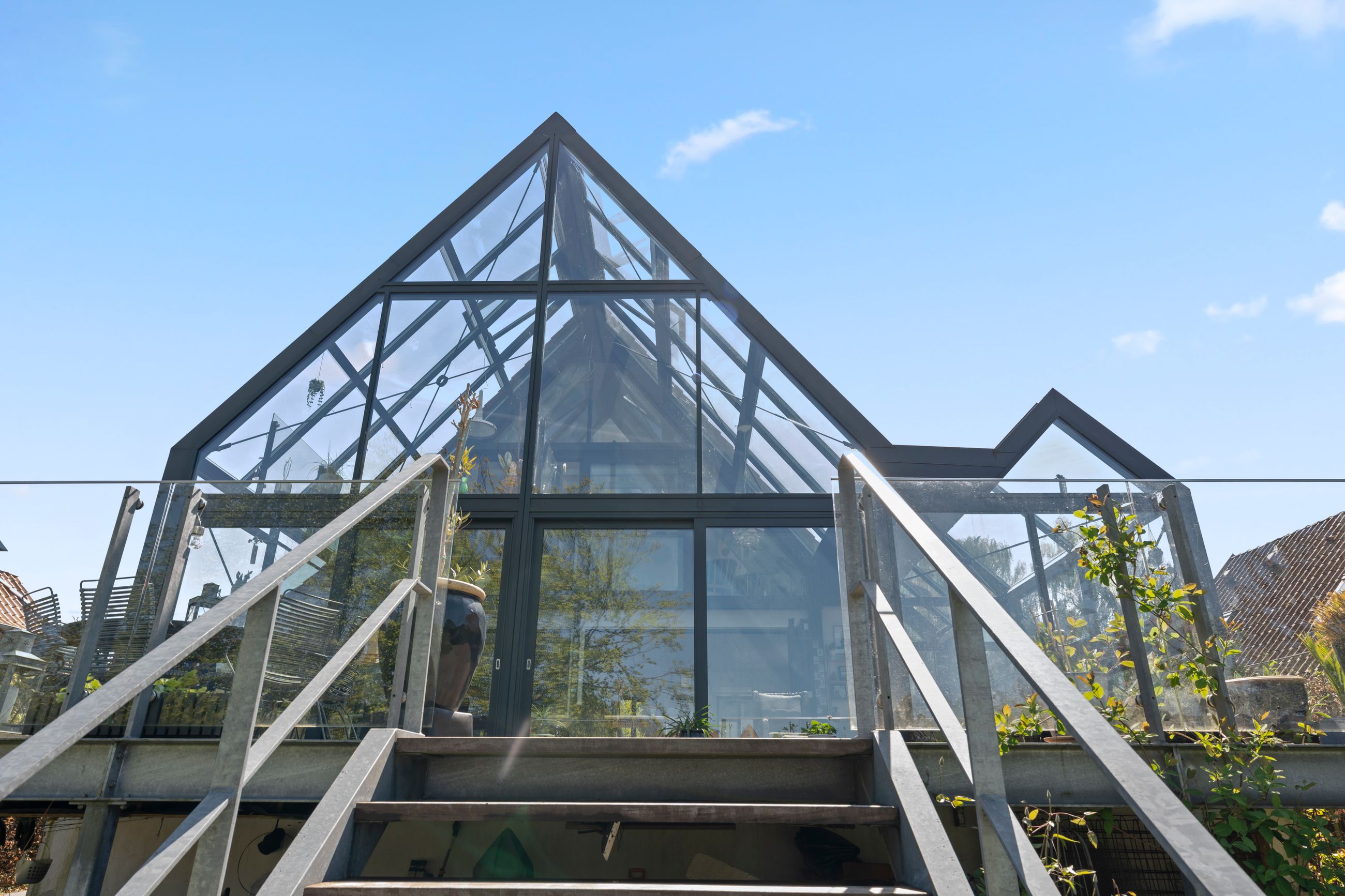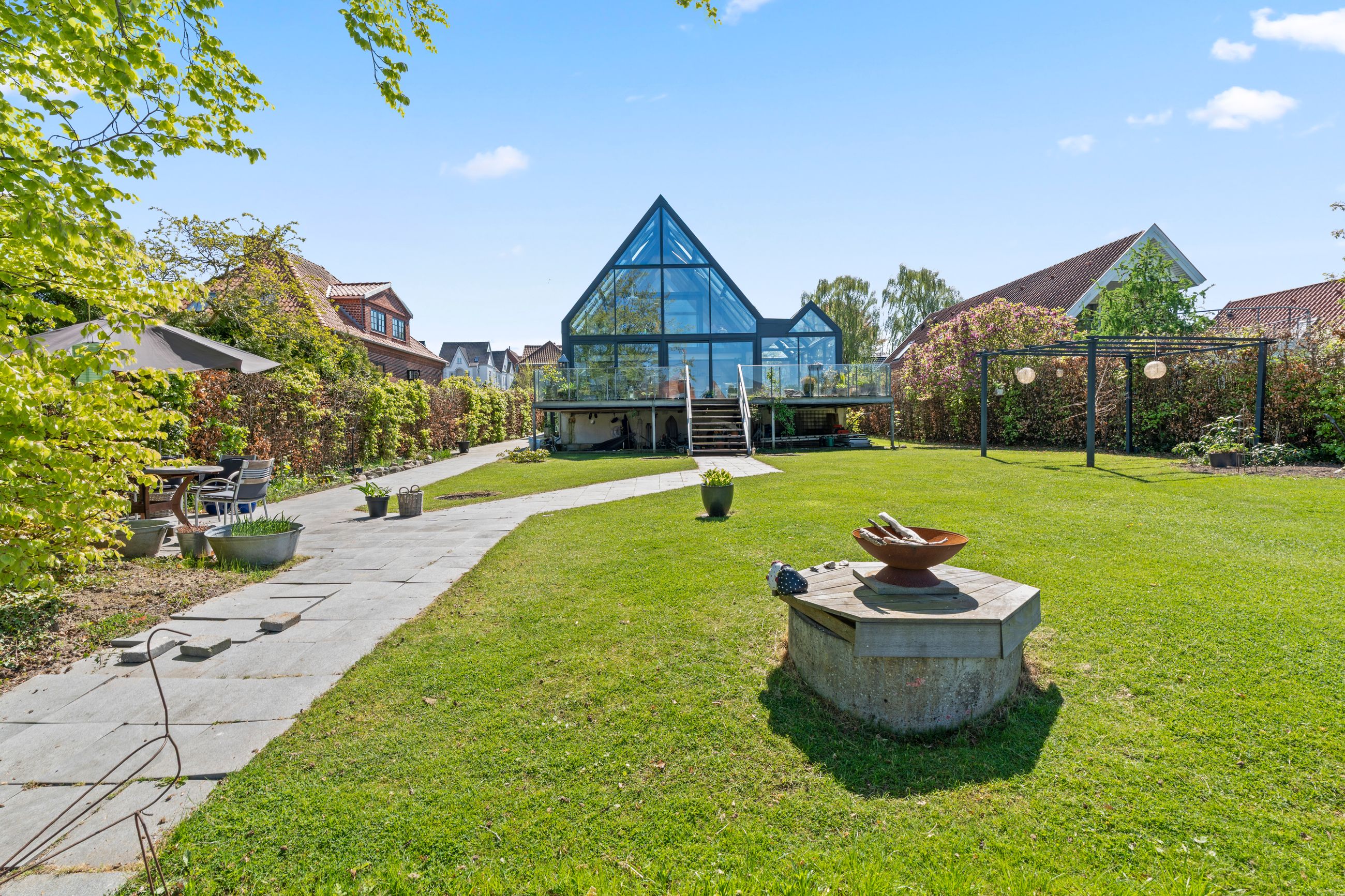 Den oprindelige ejendom fra 1950 er i 2015 blevet udvidet med en imponerende glas-tilbygning på 82 m2, hvilket bringer boligarealet op på hele 211 m2 samt en særdeles anvendelig kælder på 82 m2. Tilbygningen i glas skaber en spektakulær kontrast til den oprindelige byggestil og binder natur og arkitektur sammen på smukkeste vis. Her oplever man en bolig, der i den grad overrasker og imponerer – både inde og ude.
