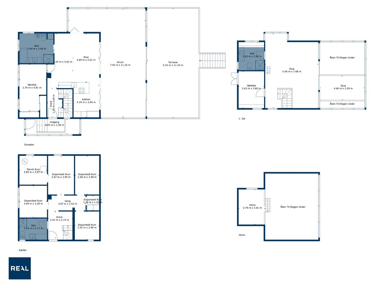 Kælderen er noget helt særligt i sig selv. Den er blevet gravet ud og har derfor en fantastisk loftshøjde, hvilket giver en helt anden oplevelse end traditionelle kældre. Her finder du endnu et badeværelse samt flere disponible rum, der kan bruges til alt fra hjemmebiograf og hobbyrum til fitness eller vinkælder. Alt fremstår i samme høje kvalitet som resten af huset.