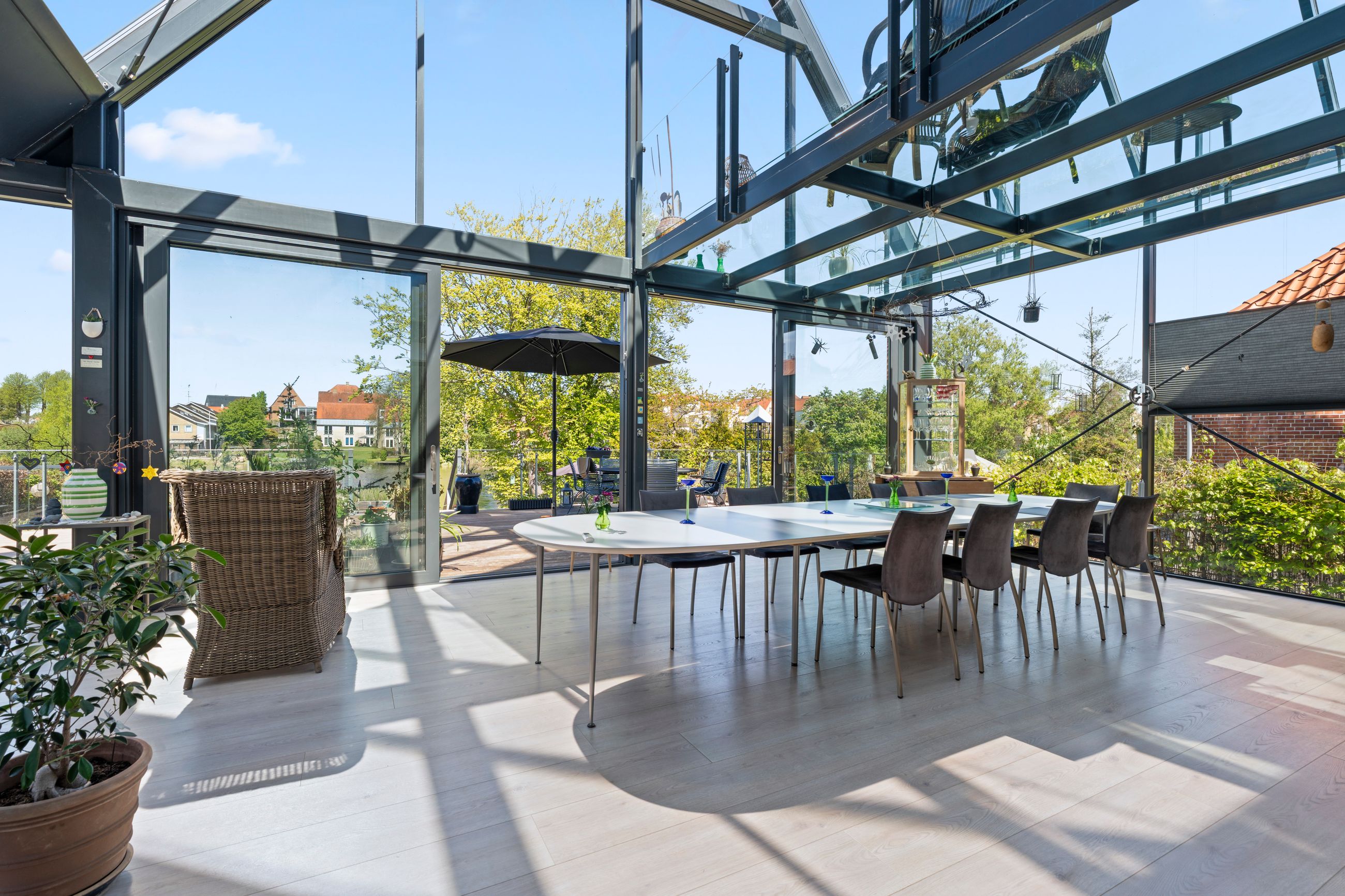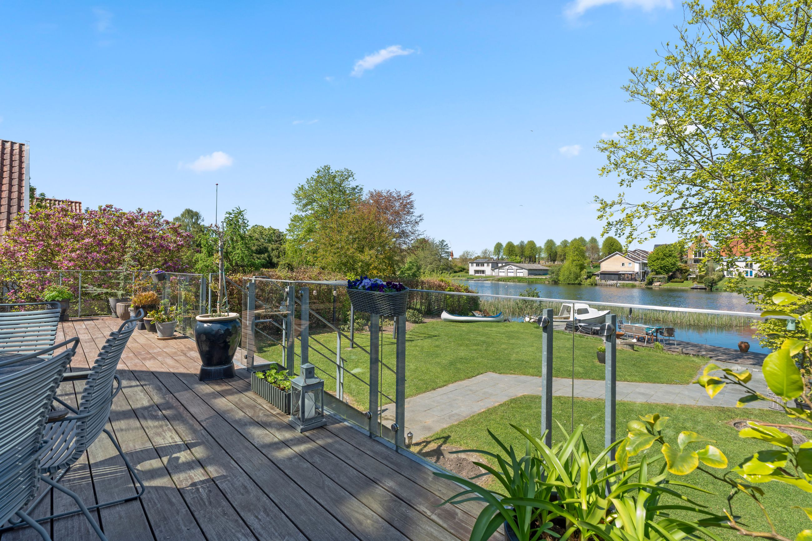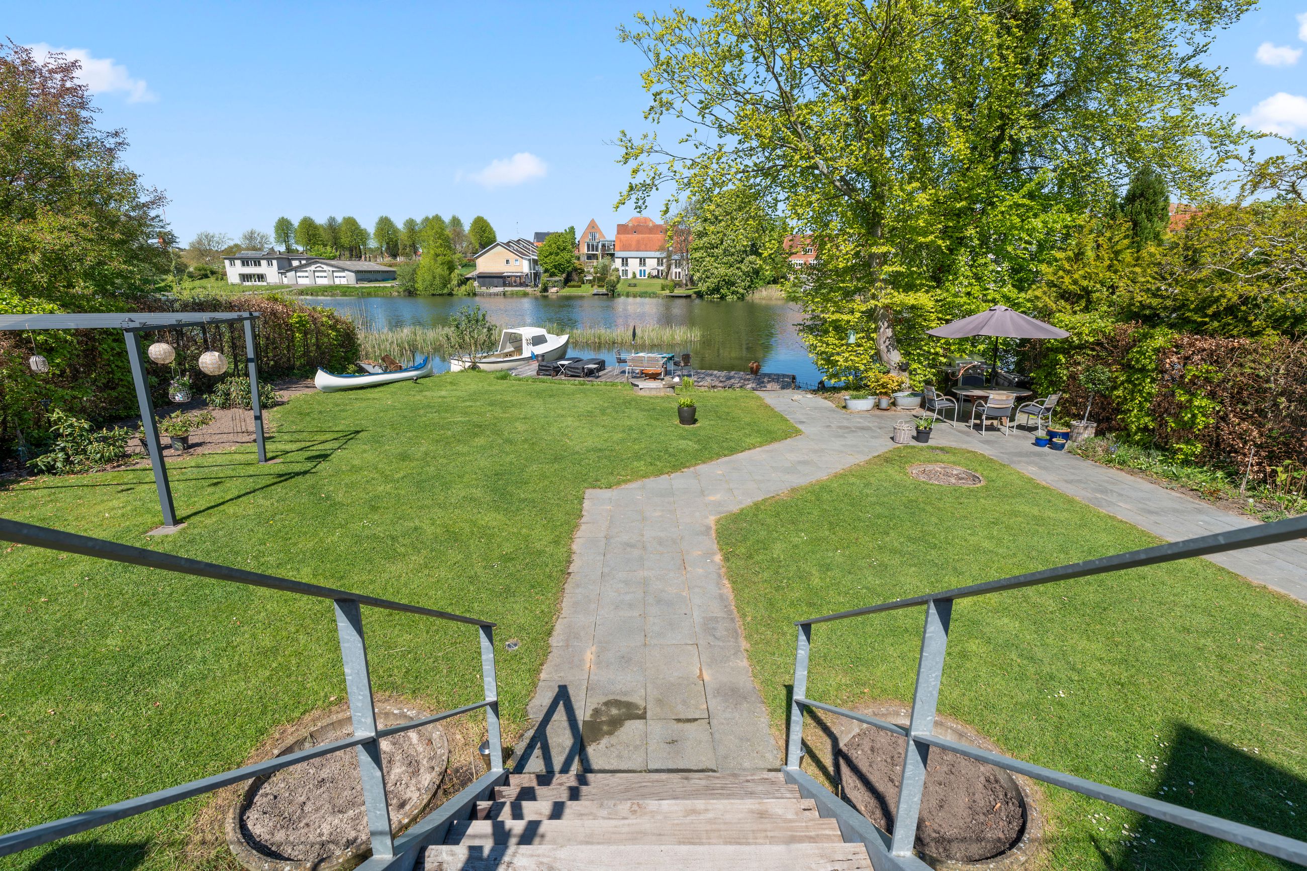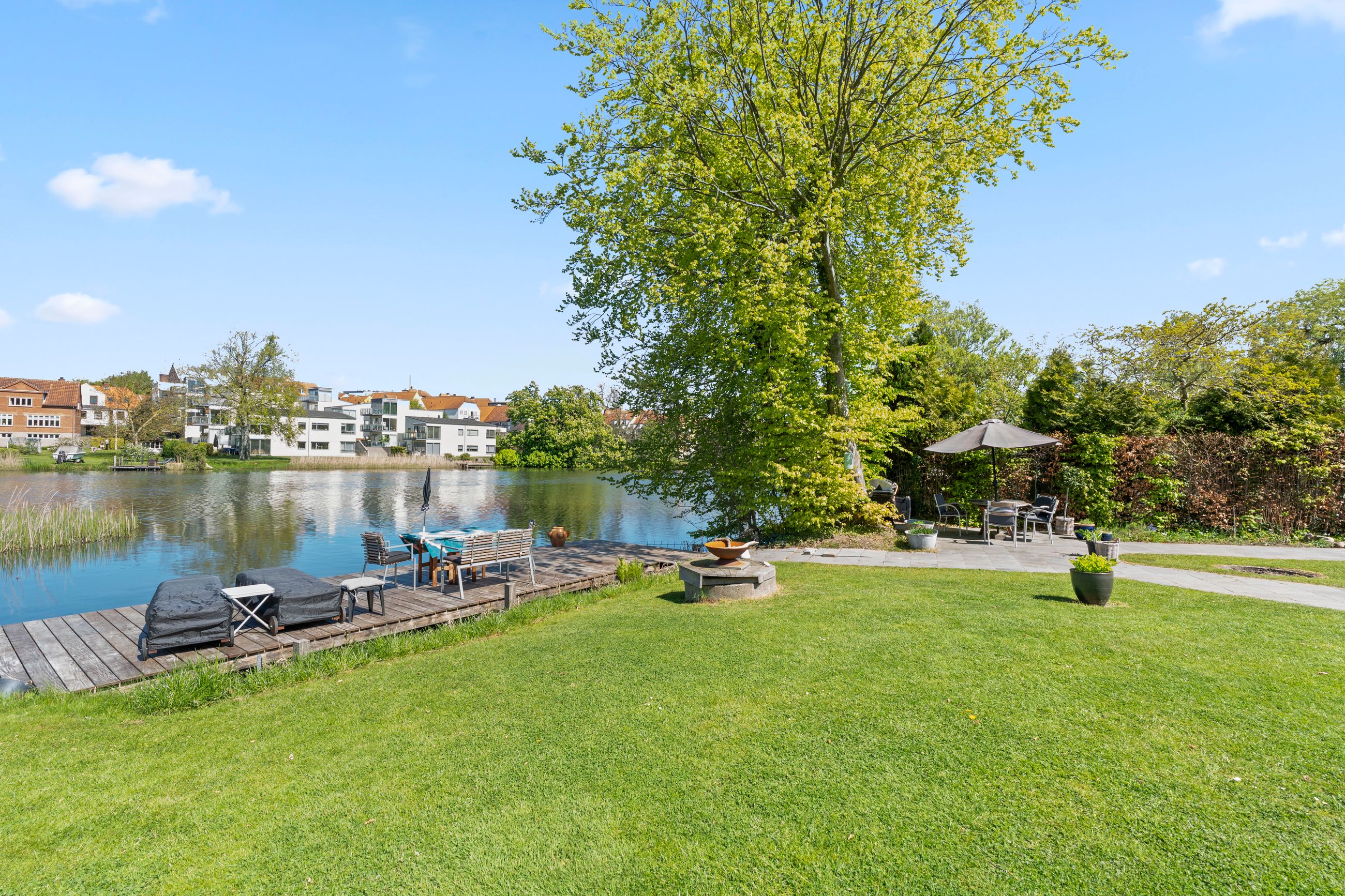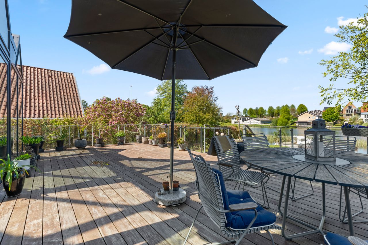Beliggenheden er ganske enkelt sublim. Her bor du i første række til Dammen med en udsigt, de fleste kun kan drømme om. Samtidig er du næsten midt i Haderslev By, hvor alle hverdagens fornødenheder, hyggelige caféer, skoler, indkøb og byliv er inden for gåafstand. Det her er en bolig, der skal opleves – for den skal ikke bare ses med øjnene, men mærkes med hele kroppen. En ejendom i absolut særklasse.