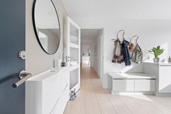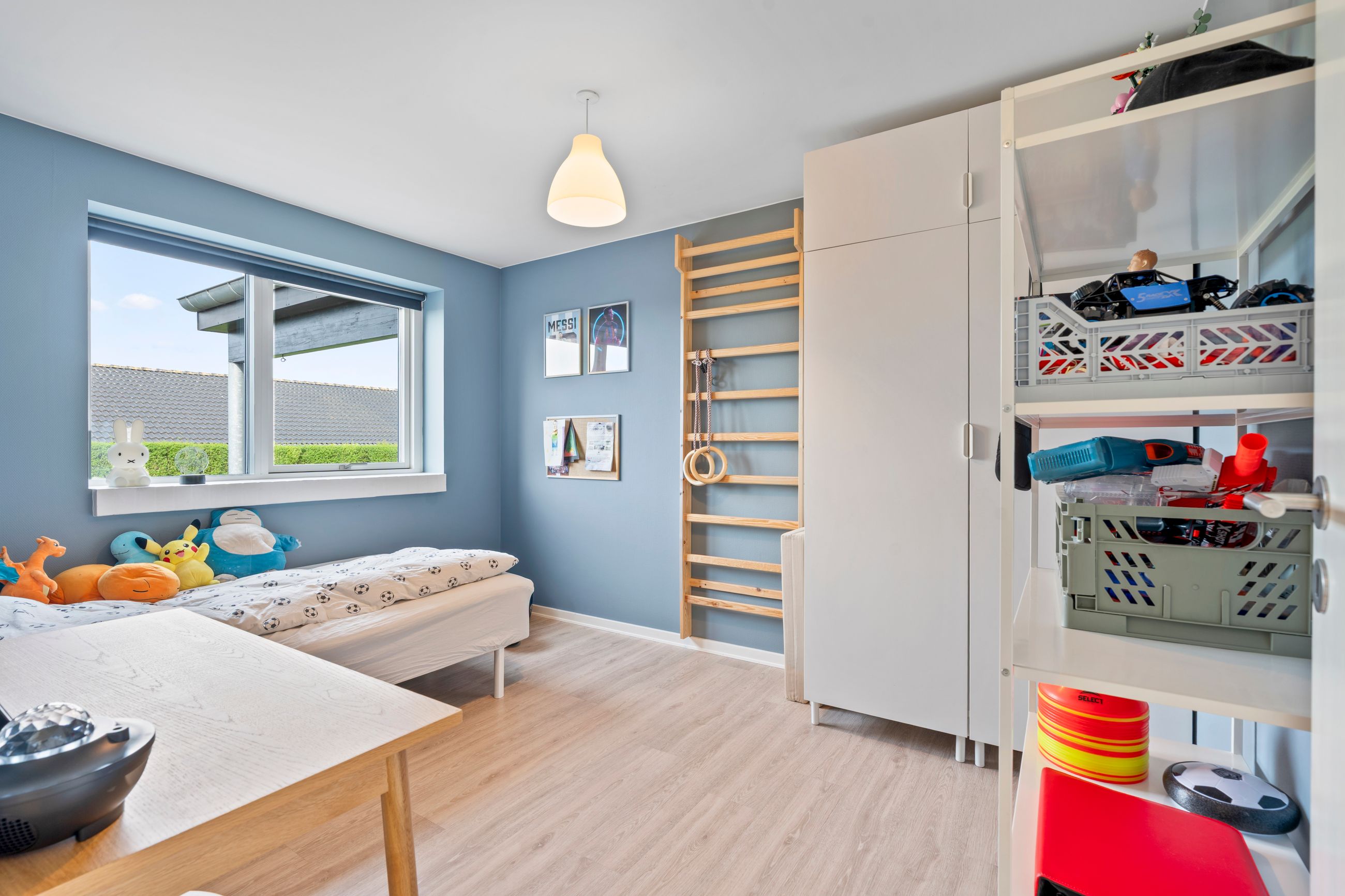 Boligen rummer 158 veldisponerede kvadratmeter med en planløsning, der er skabt til det moderne familieliv. Huset byder på en separat børneafdeling med to identiske værelser samt et ekstra værelse, oplagt som kontor eller legerum – og med eget tilhørende badeværelse. Forældreafdelingen er lige så gennemført med eget badeværelse.
