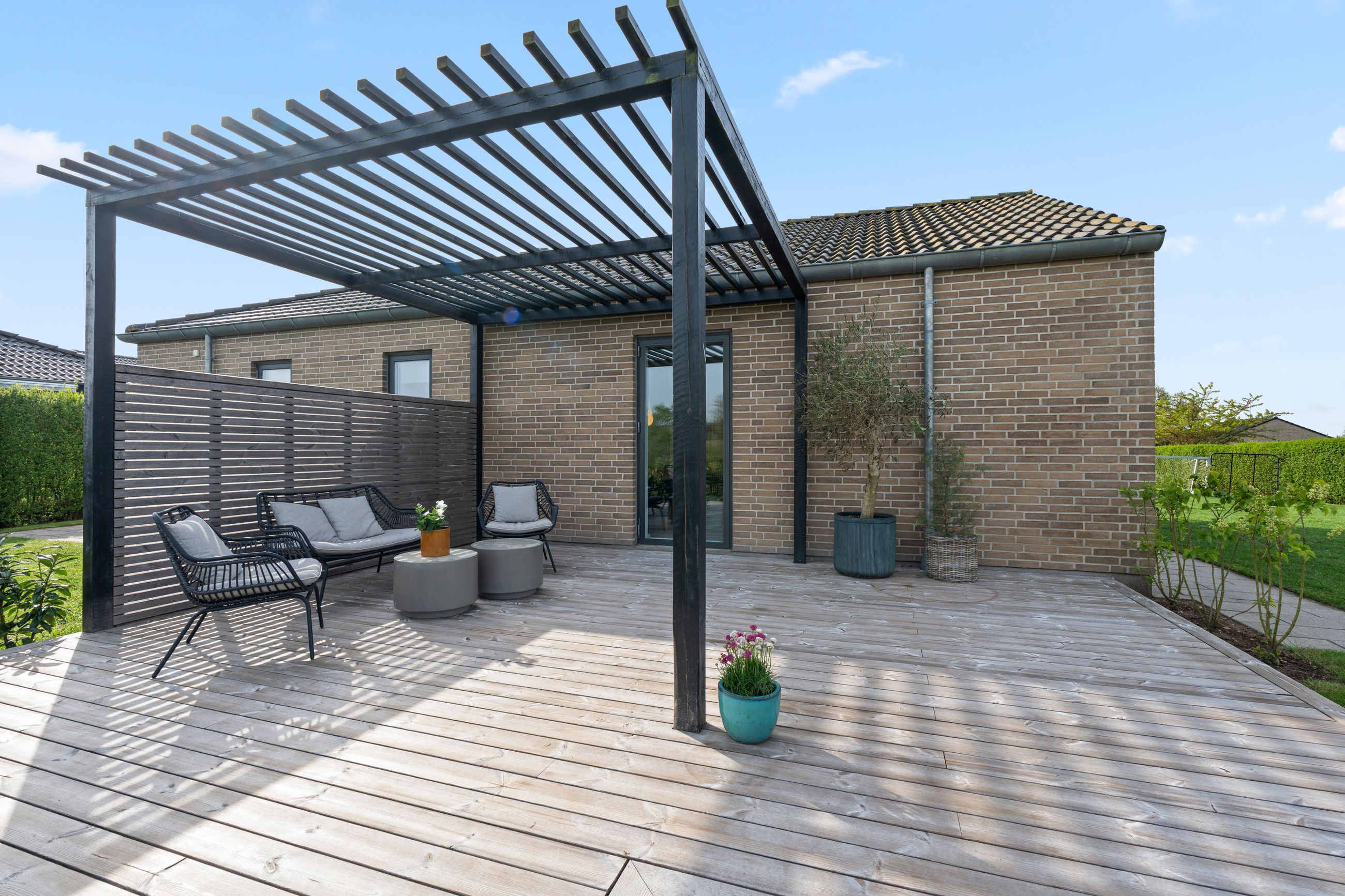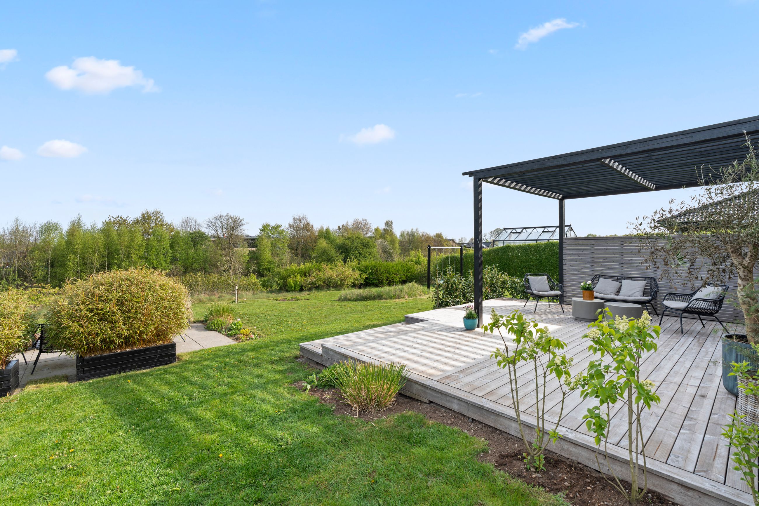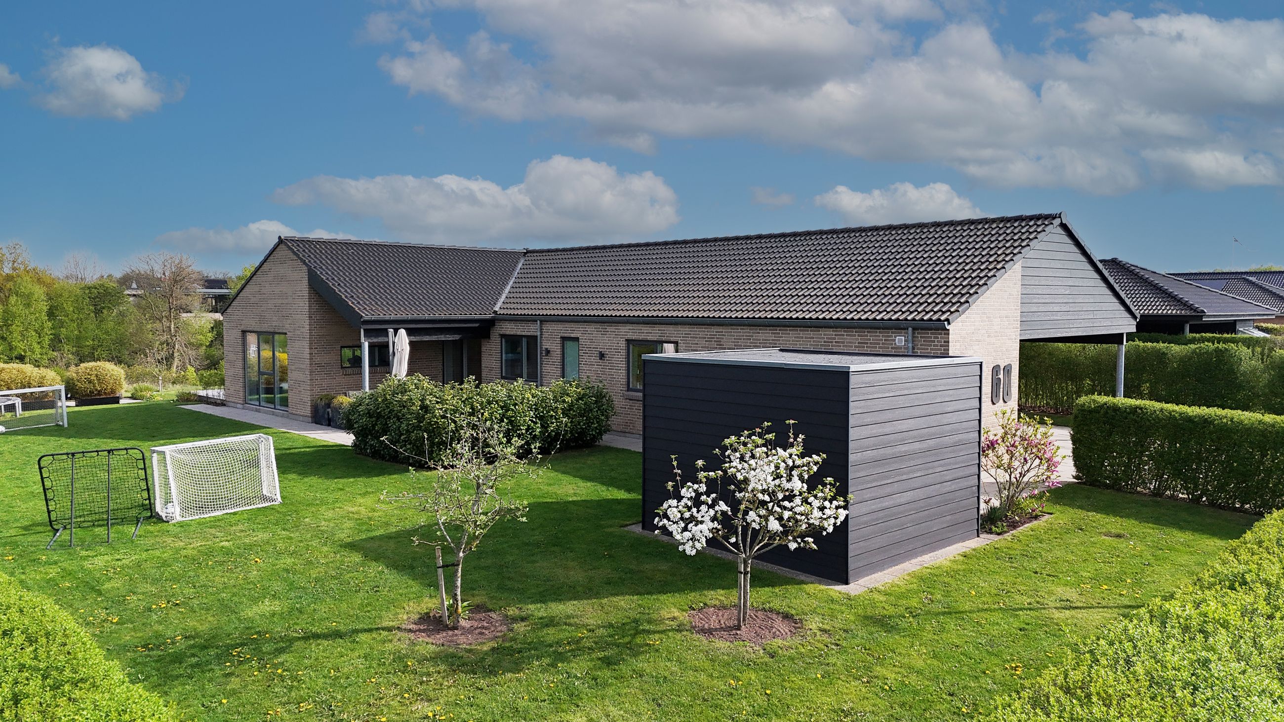 Udearealerne er lige så gennemtænkte som resten af ejendommen. Den 952 m2 store grund byder på en flot og velholdt have, en skøn og solrig terrasse med plads til både loungemøbler og spisebord samt flere hyggelige kroge til afslapning. Hertil kommer en carport på 29 m2 med plads til to biler og et praktisk udhus på 13 m2.